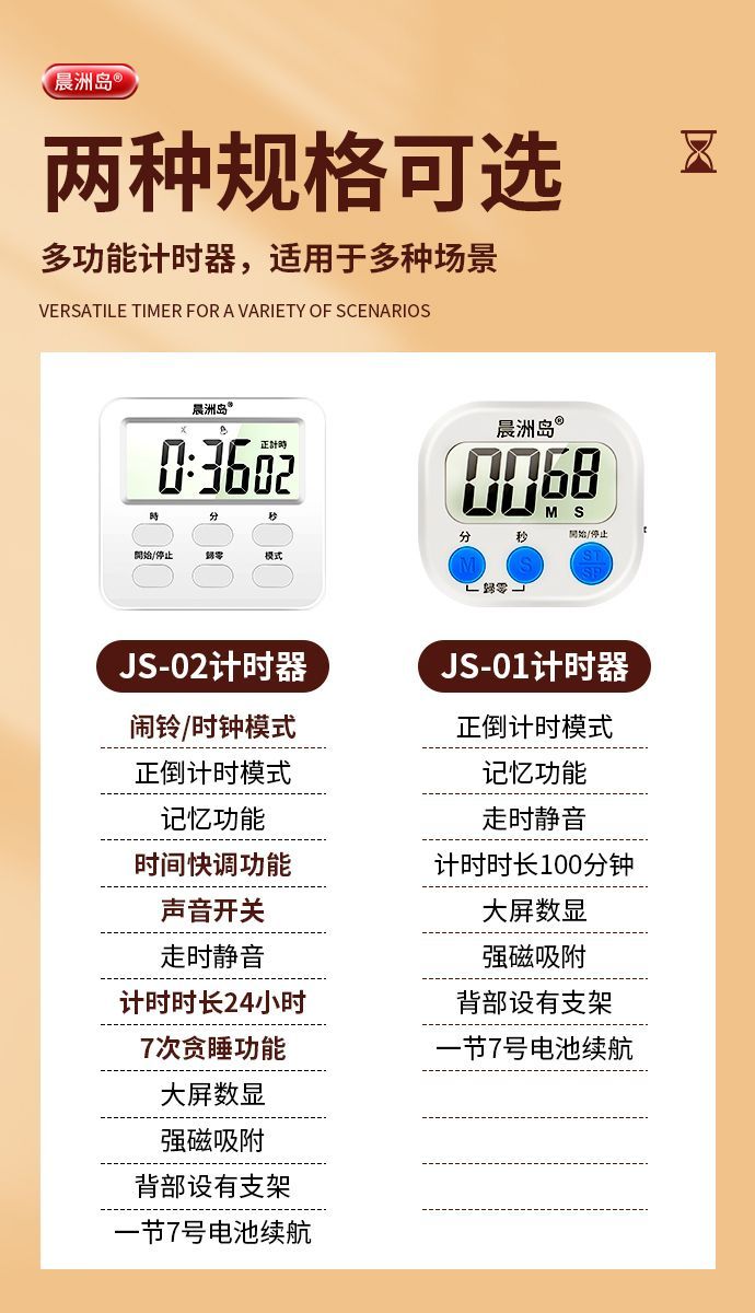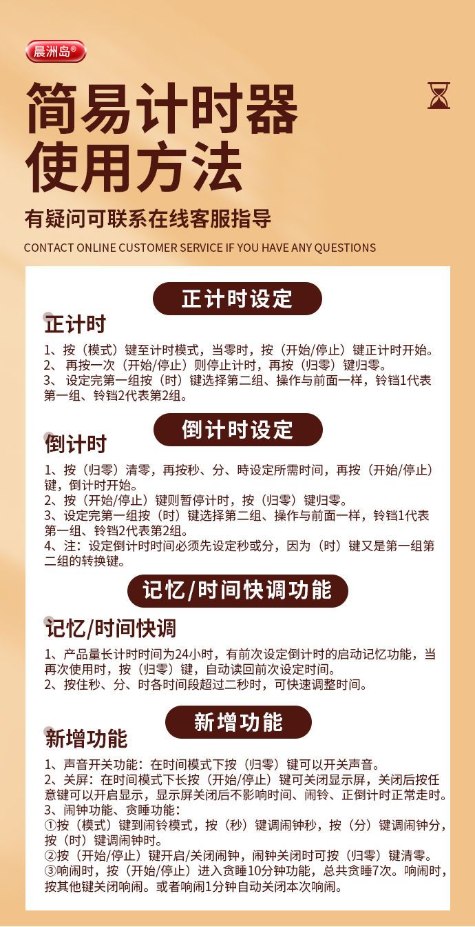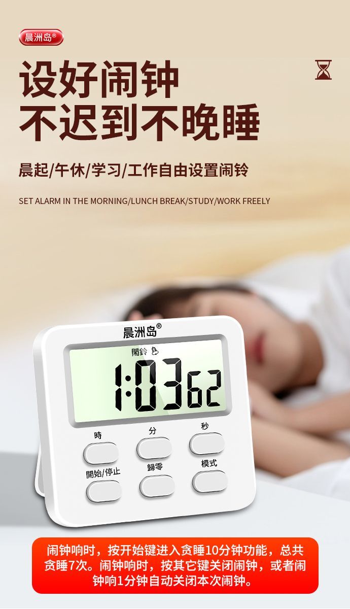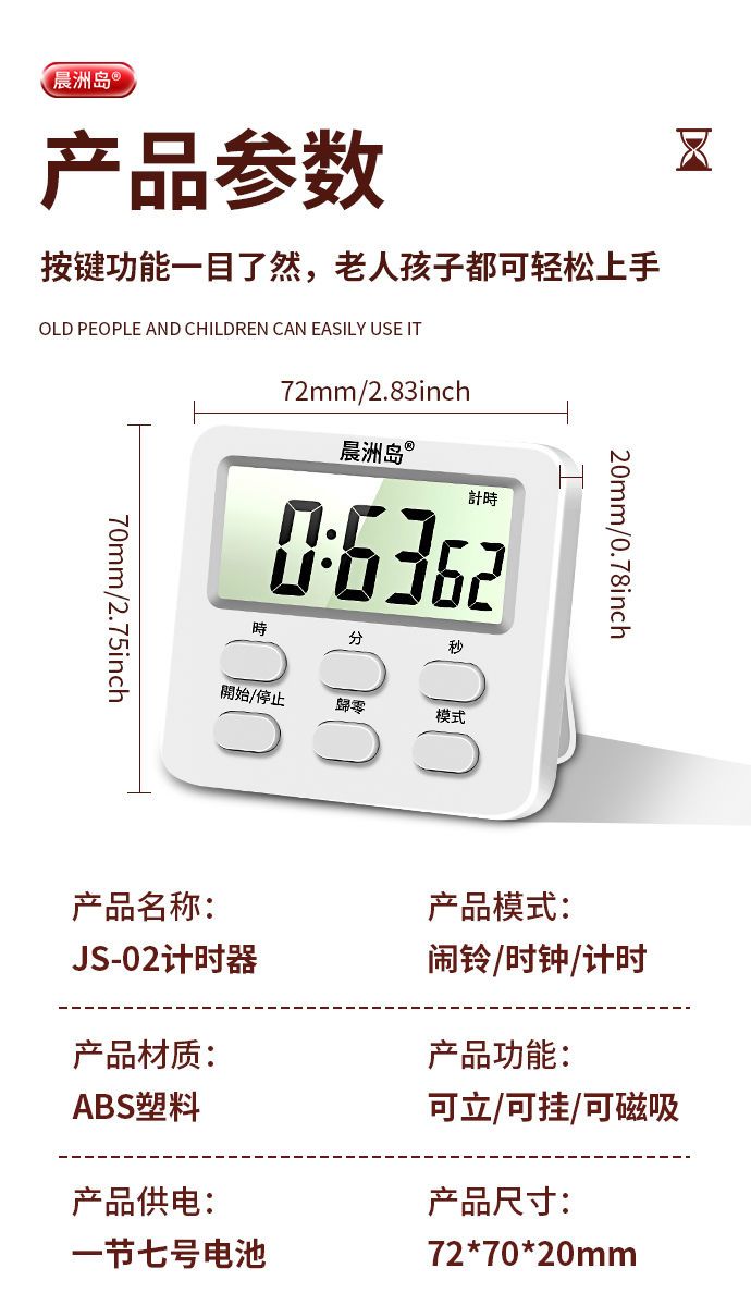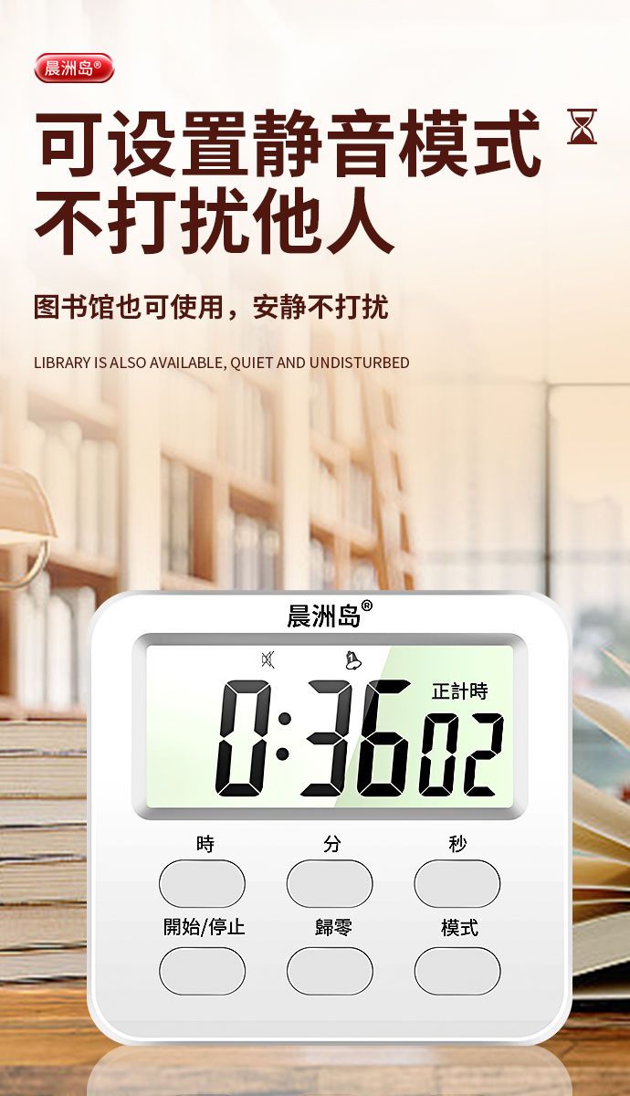 晨洲岛正品计时器厨房烹饪提醒器学生闹钟作业考研自律定时器园艺