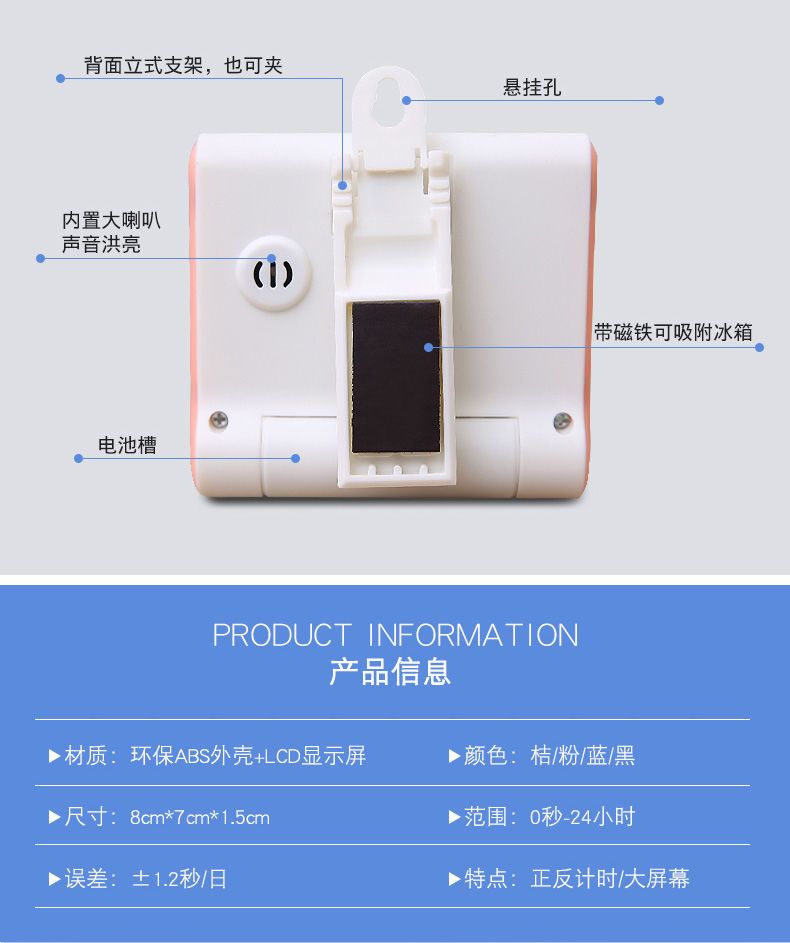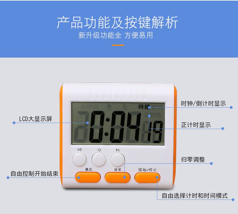 厨房定时器倒计时器提醒器烹饪厨房学生作业学习倒计时电子闹钟表