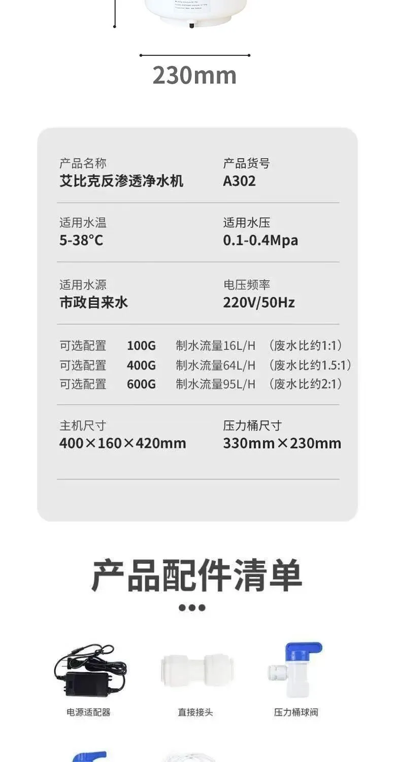 艾比克RO反渗透家用净水器厨下自来水过滤器净水机除垢直饮纯水机