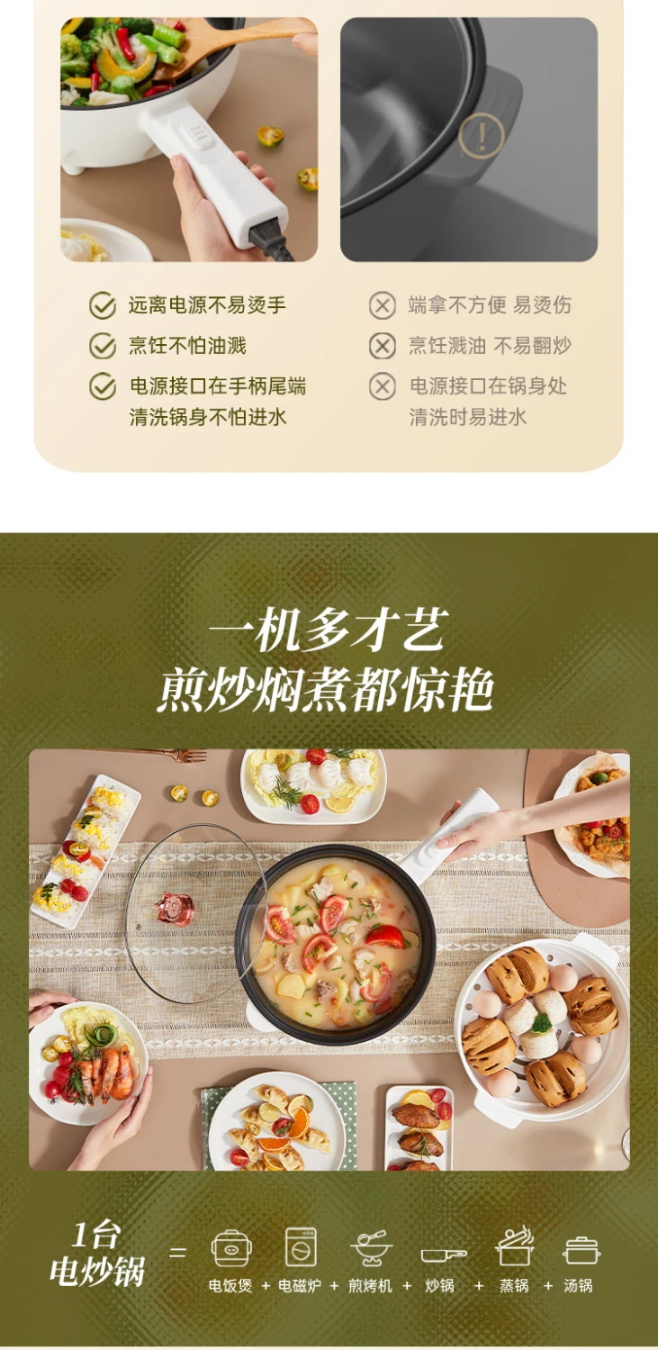 出口德国电炒锅一体式炒菜锅电煮锅多功能家用电火锅蒸煮煎炒锅