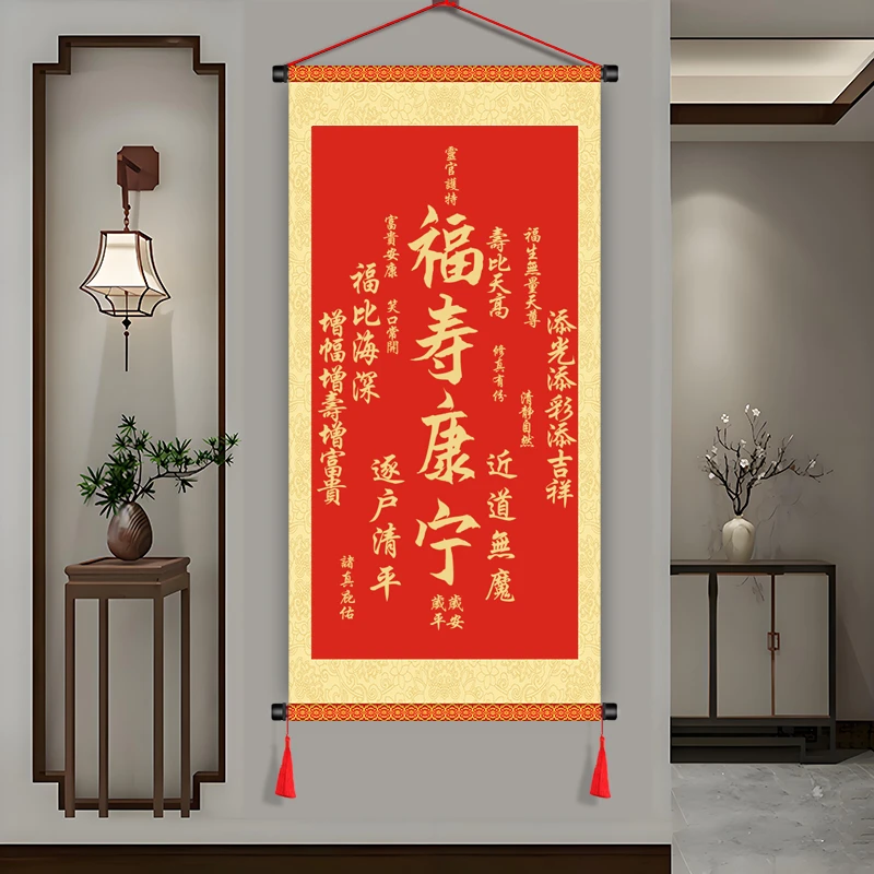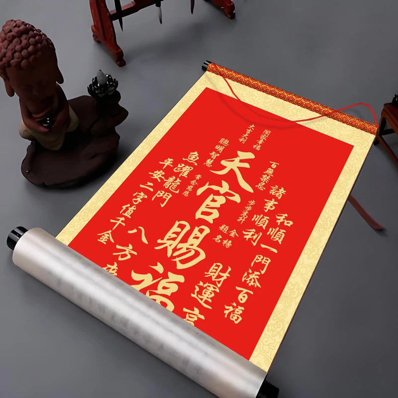 正品天官赐福卷轴福寿康宁字画玄关客厅书房装饰画丝绢布
