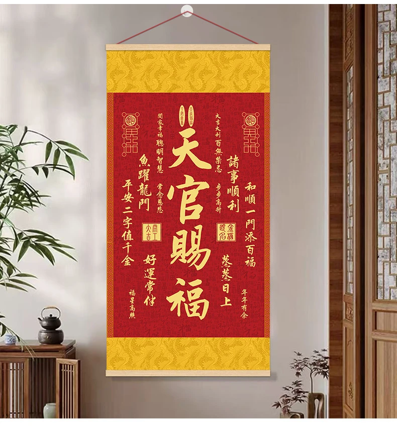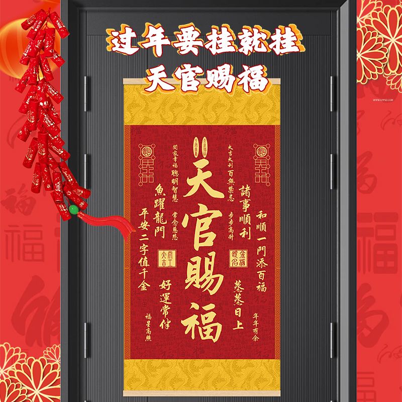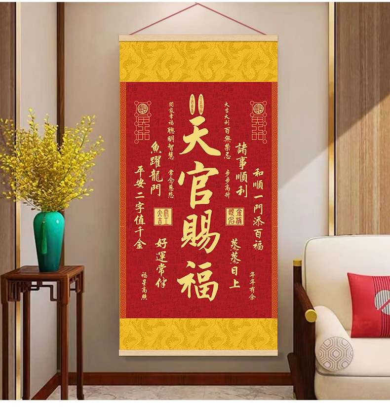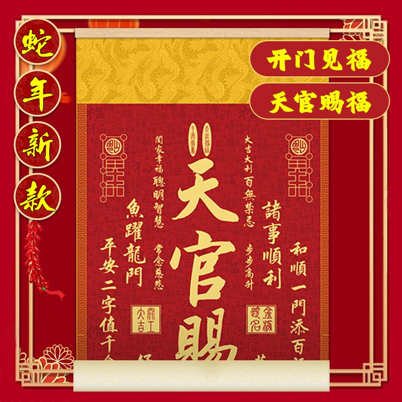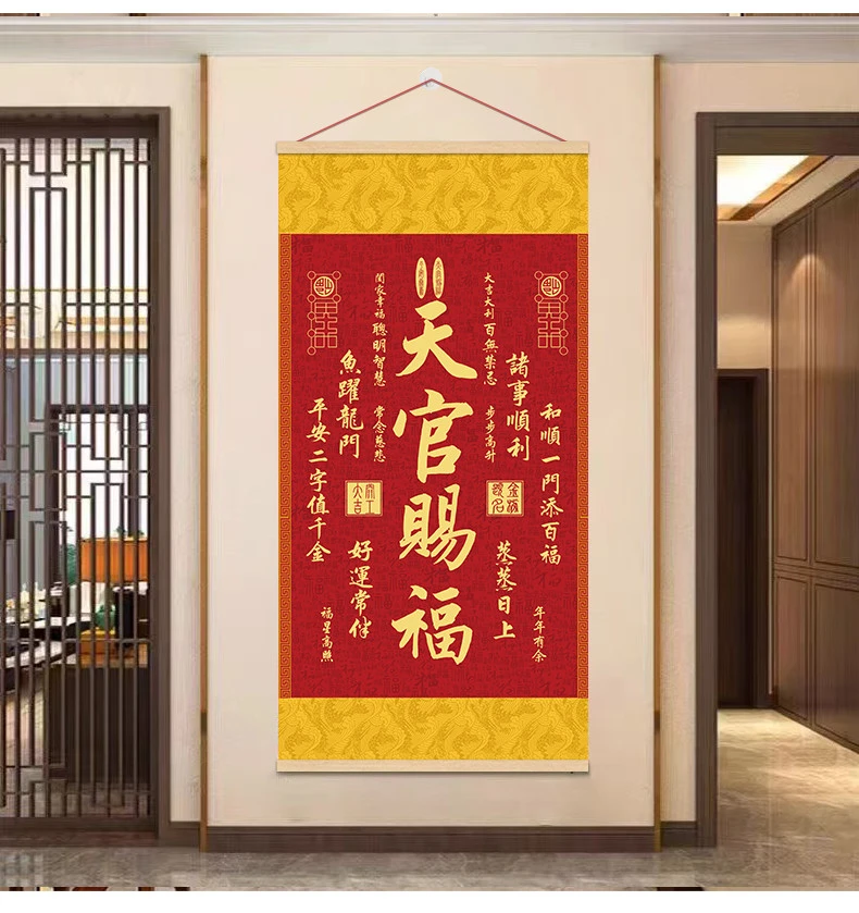 老师正品天官赐福挂画秦东魁竖版玄关春节过年开业搬家茶室丝绸绢