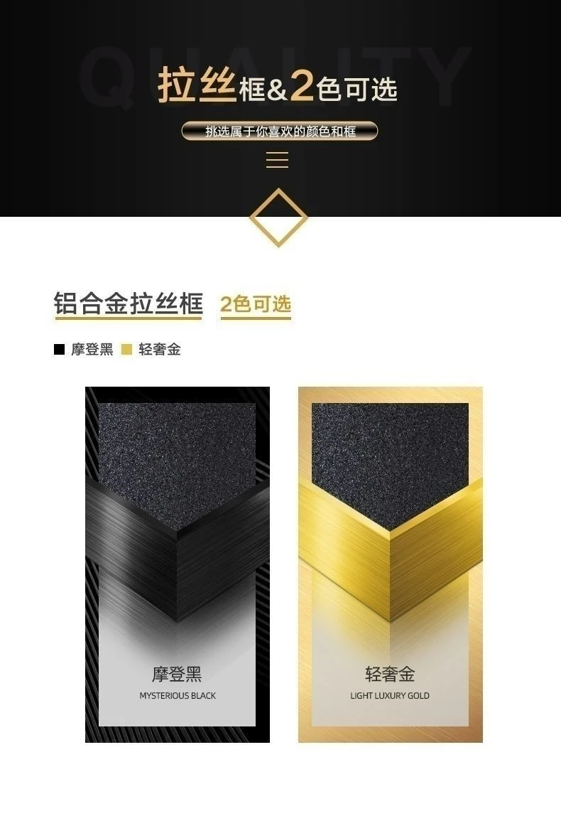 | 40 * 60cm tempered film + aluminum alloy light luxury gold frame(40*60cm钢化膜+铝合金轻奢金框) | USD $12.46 | 999999 piece available |