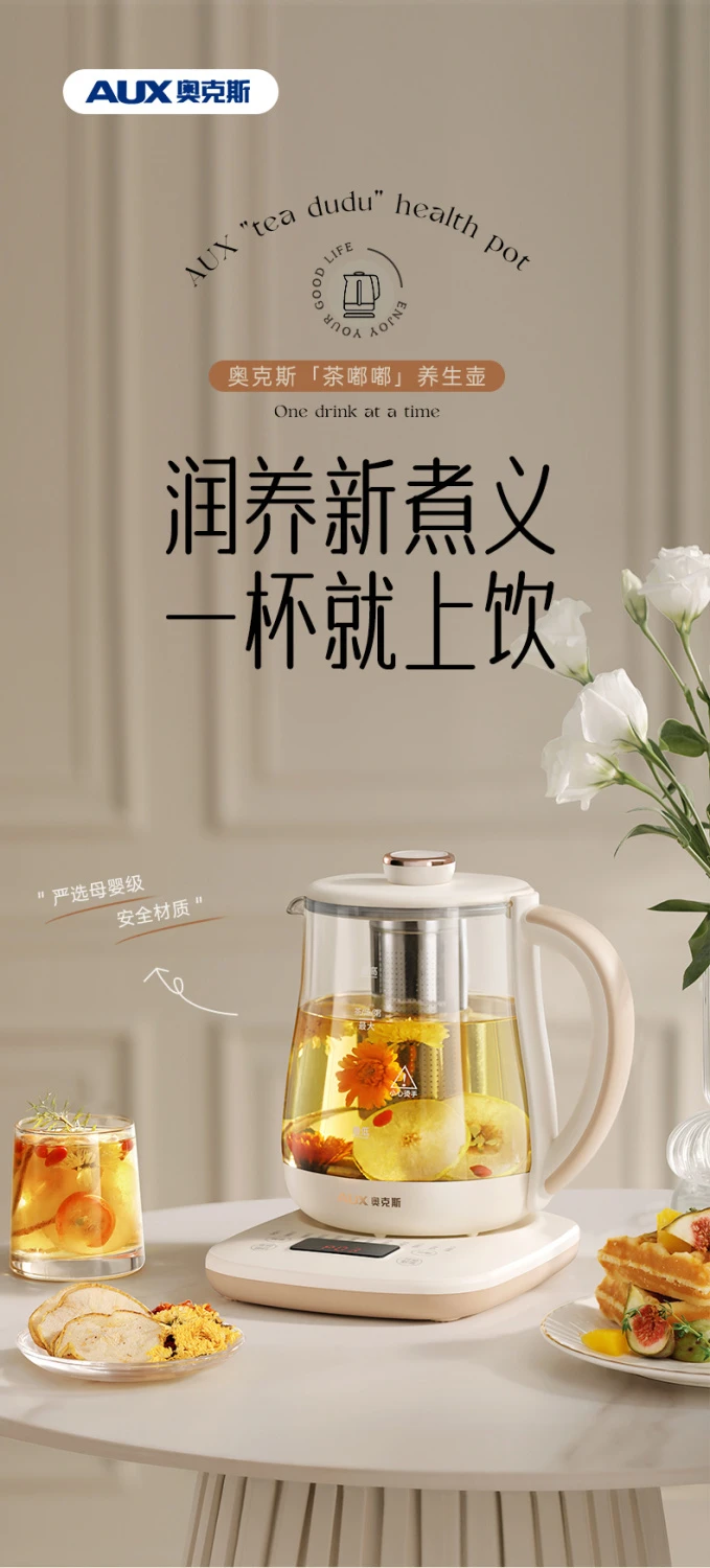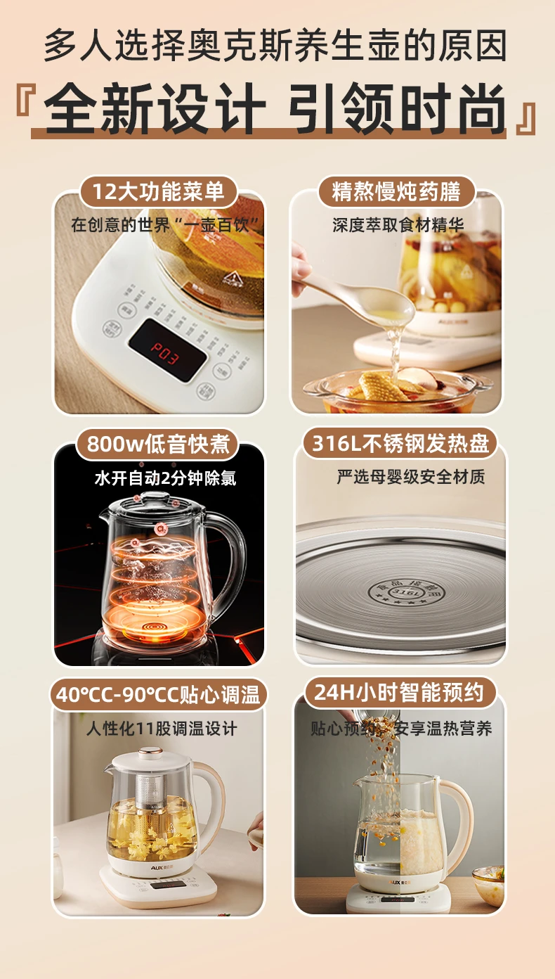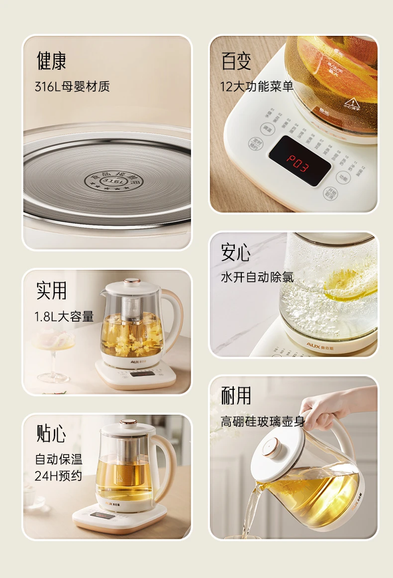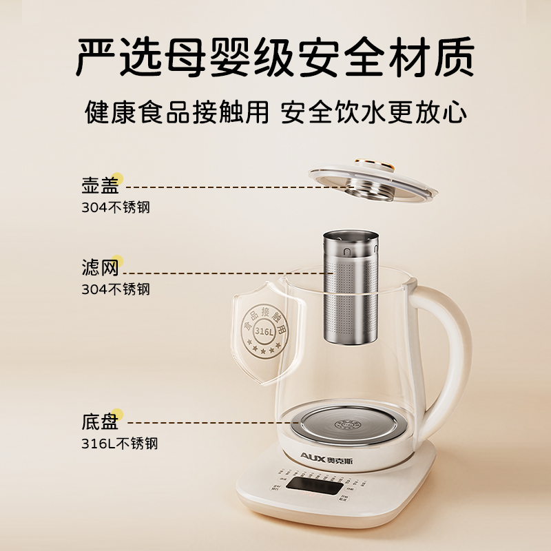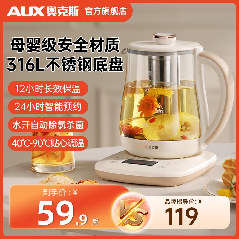 奥克斯养生壶多功能家用全自动煮茶壶小型办公室烧水壶煮花茶器