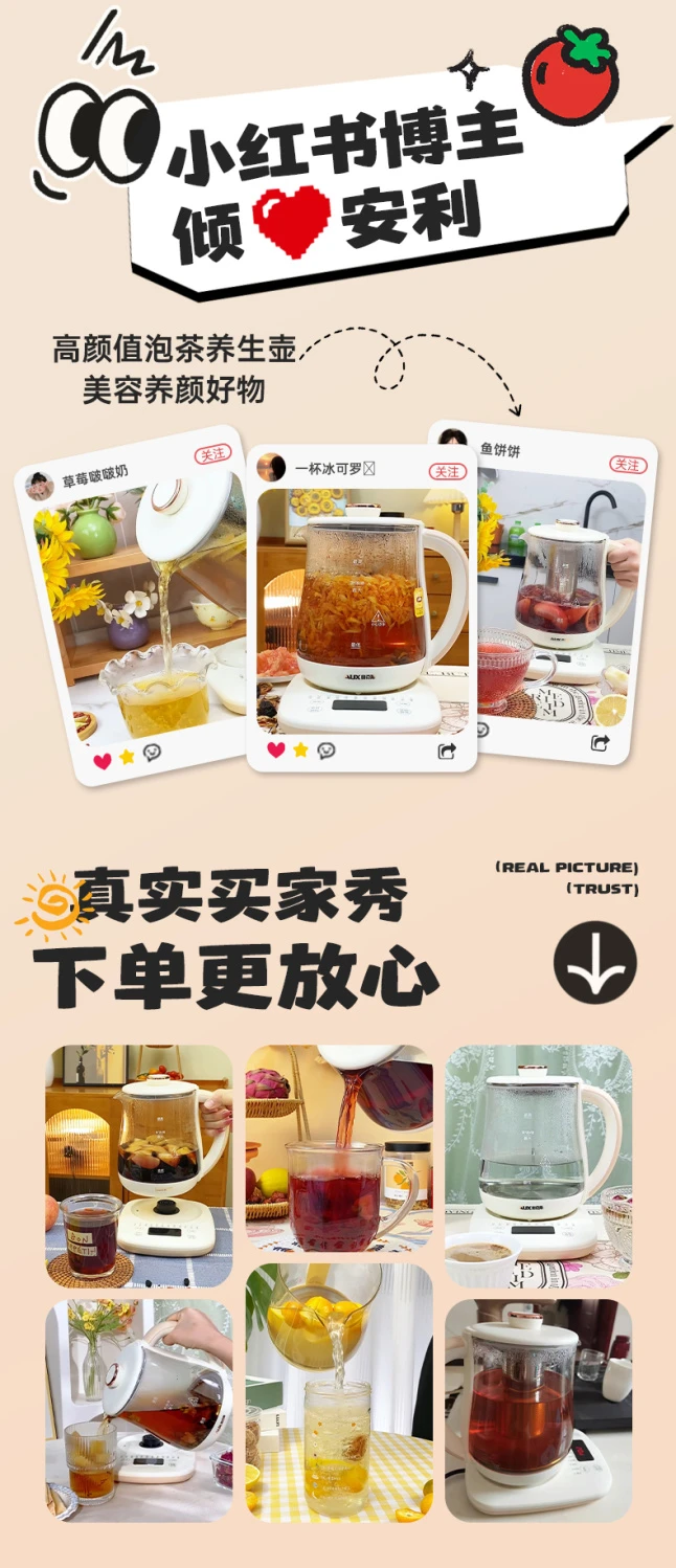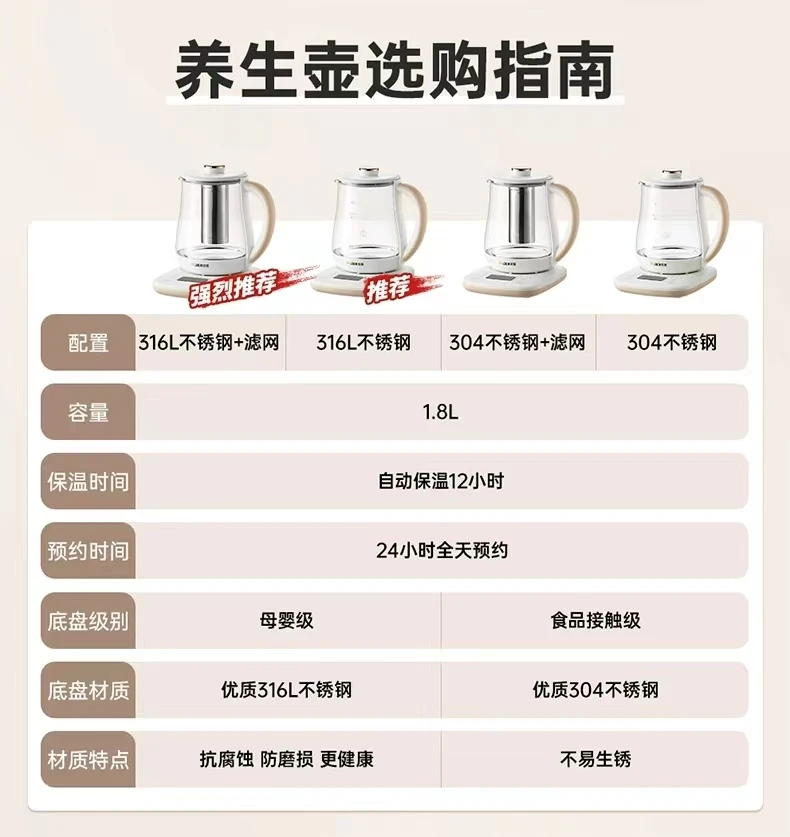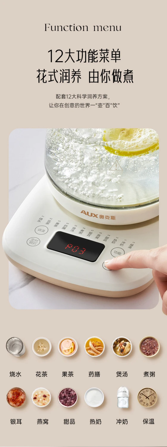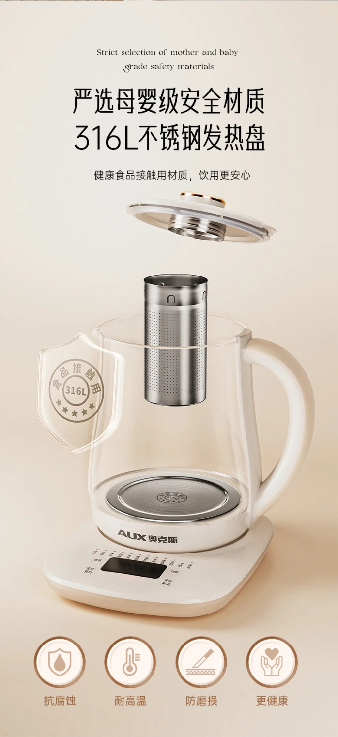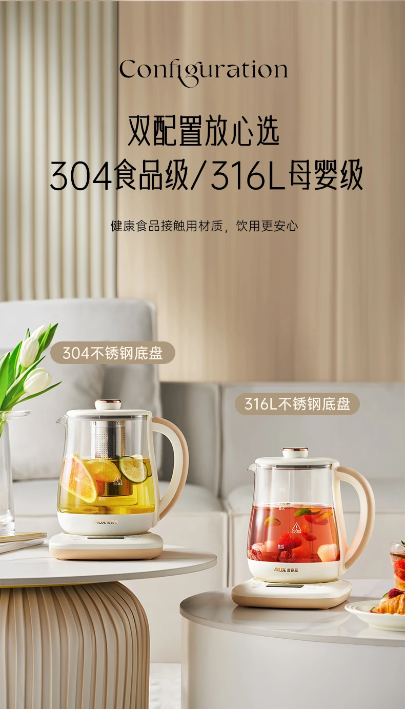 奥克斯养生壶多功能家用全自动煮茶壶小型办公室烧水壶煮花茶器