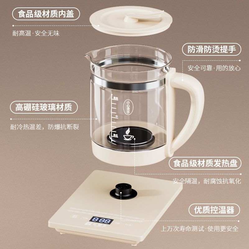 贝婴乐恒温养生壶家用多功能电热水壶烧水花茶保温玻璃煮茶器小型