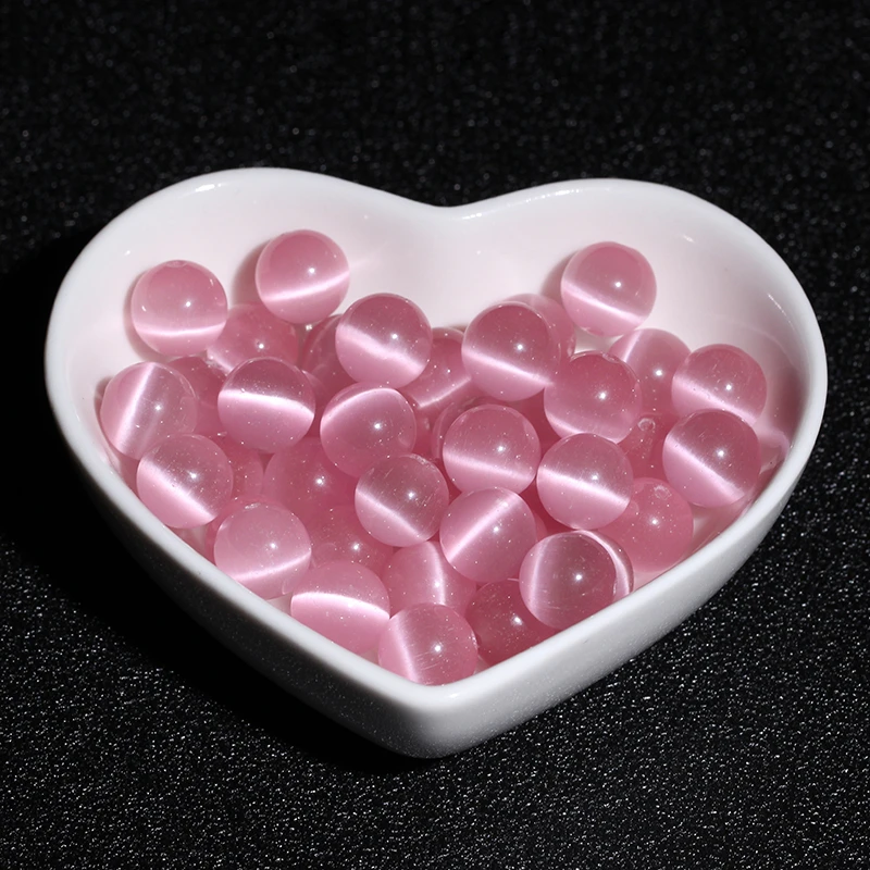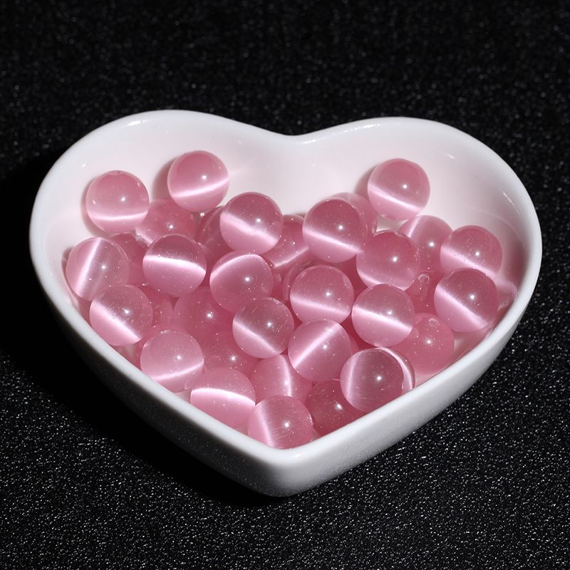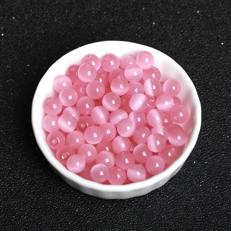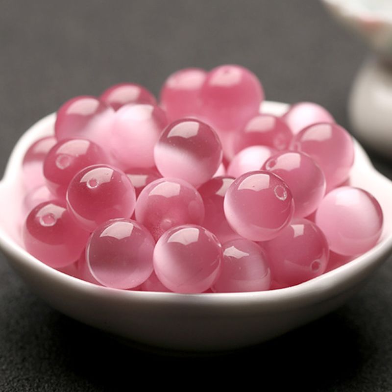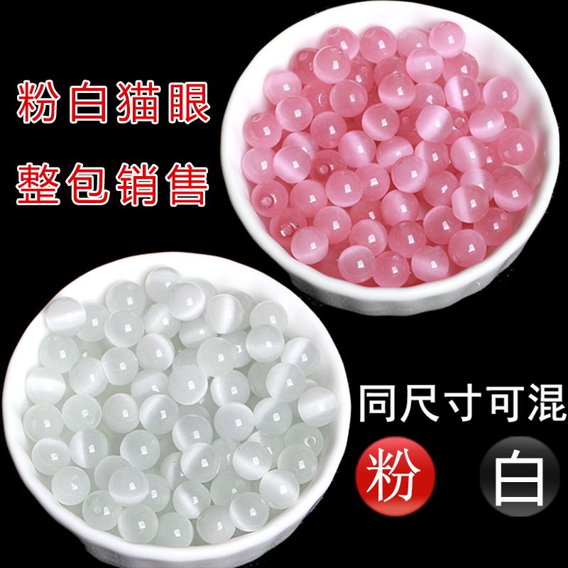 DIY手工饰品散珠配件粉红仿猫眼石半成品圆珠水晶散珠女手链项链
