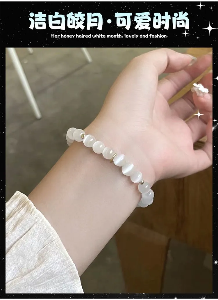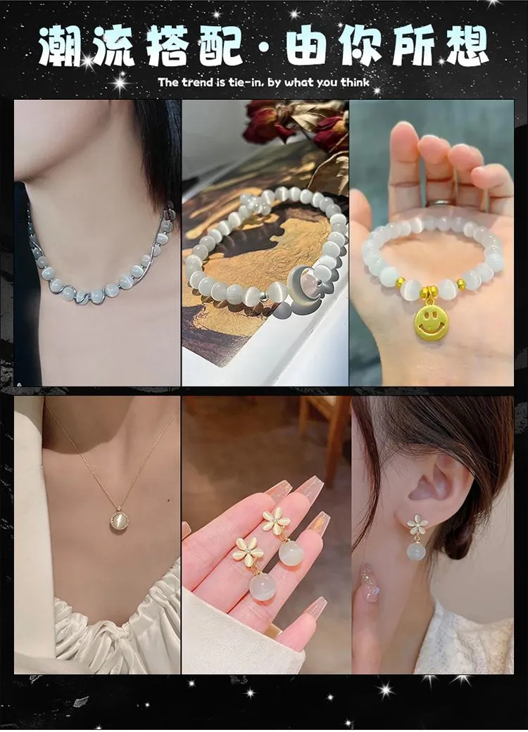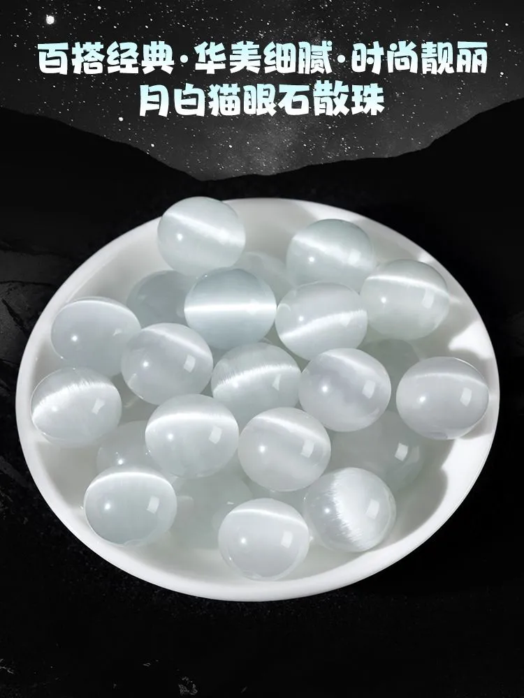 白色猫眼石散珠串珠手工diy材料半成品水晶手链手串珠子配件材料
