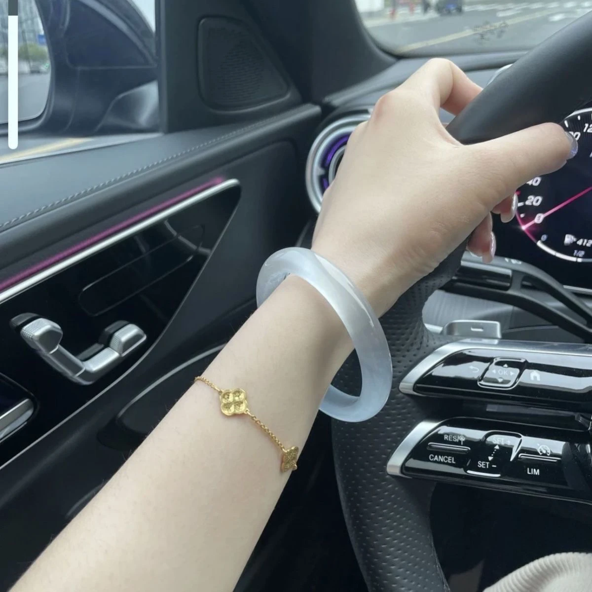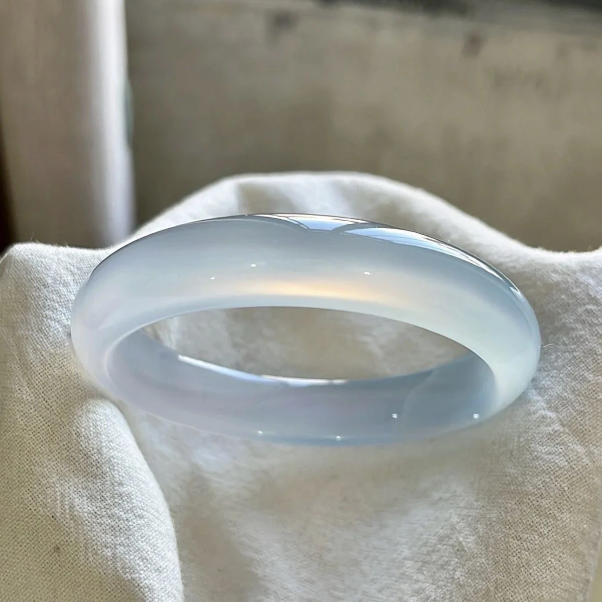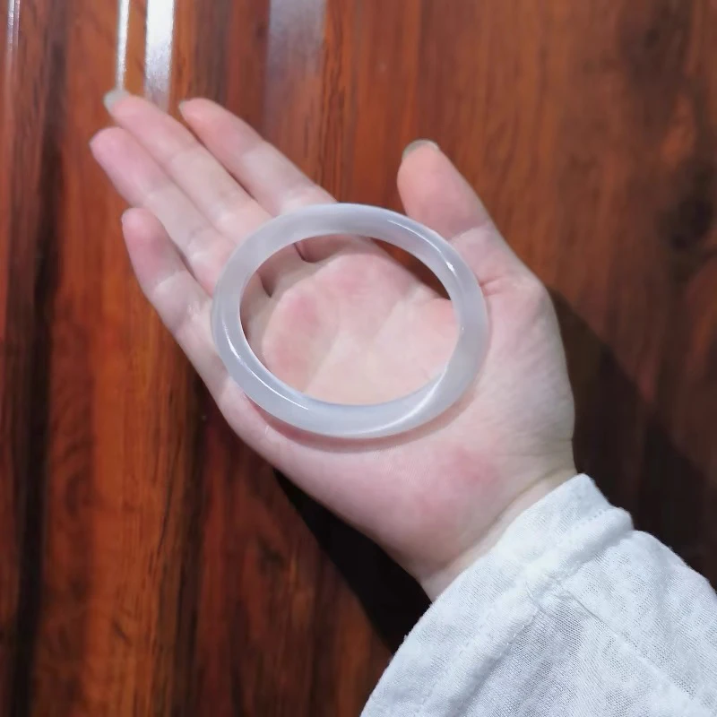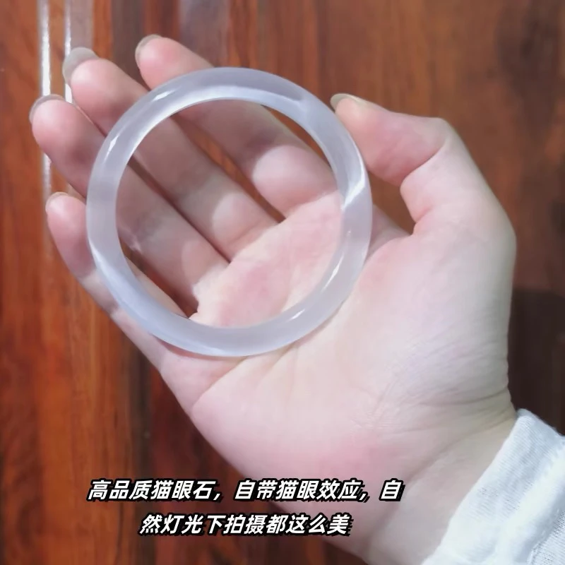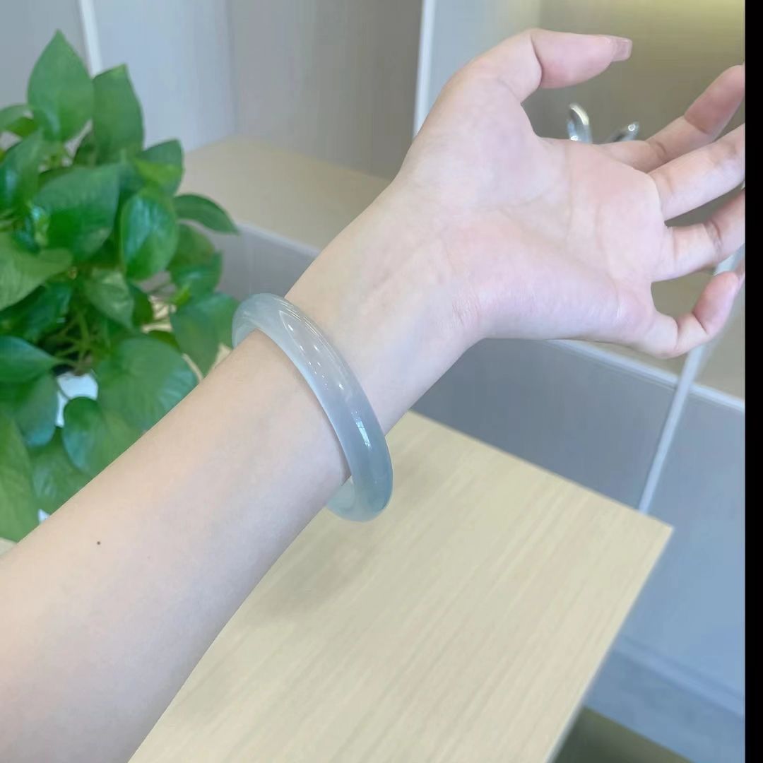 蓝月光冰冰蓝手镯冰种女款荔枝冰透玉镯子马料玉髓猫眼石