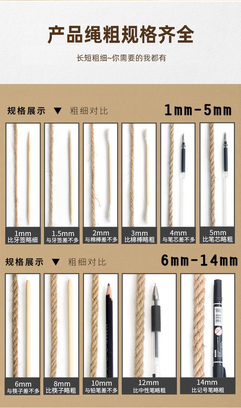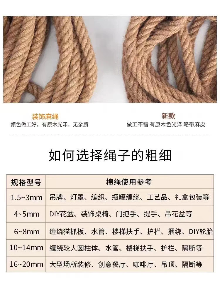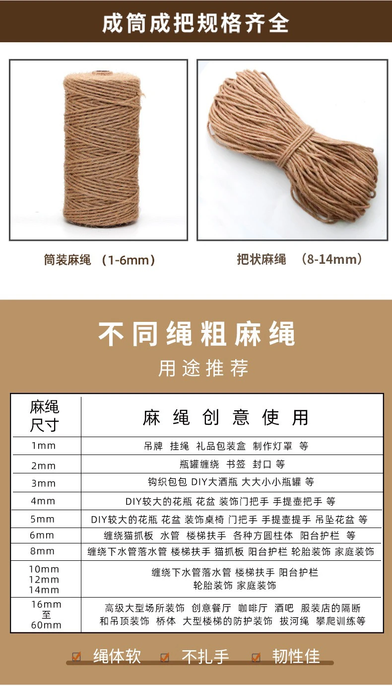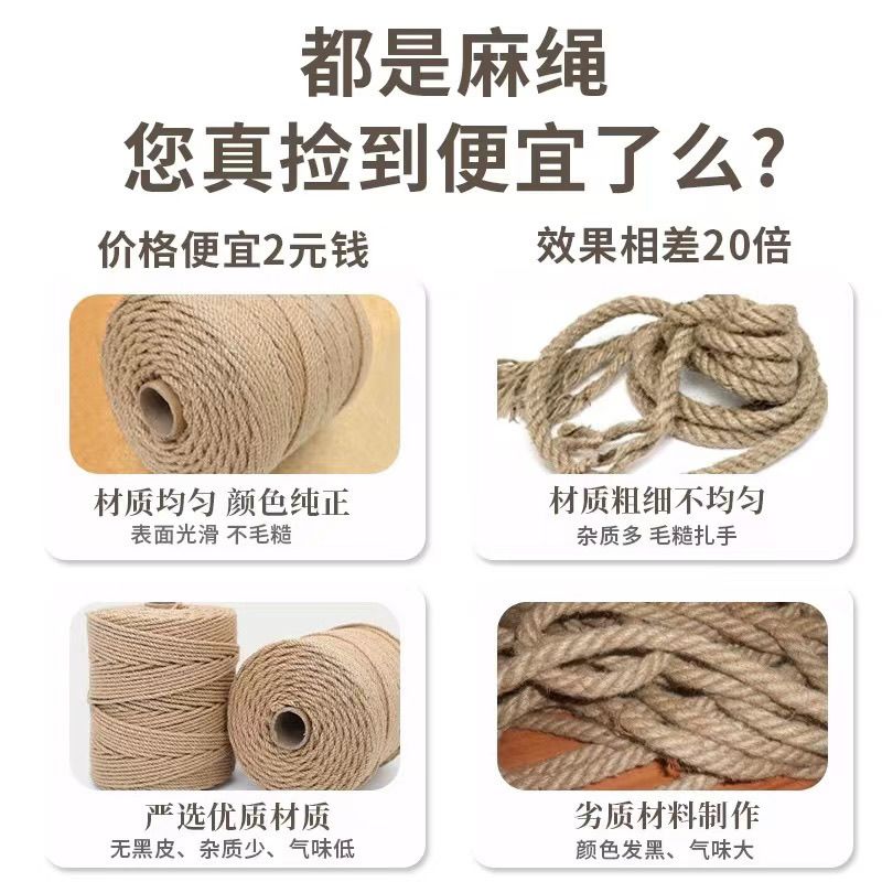 优质绳子麻绳手工diy猫爬架装饰粗细围栏耐磨捆绑绳茶几照片墙绳