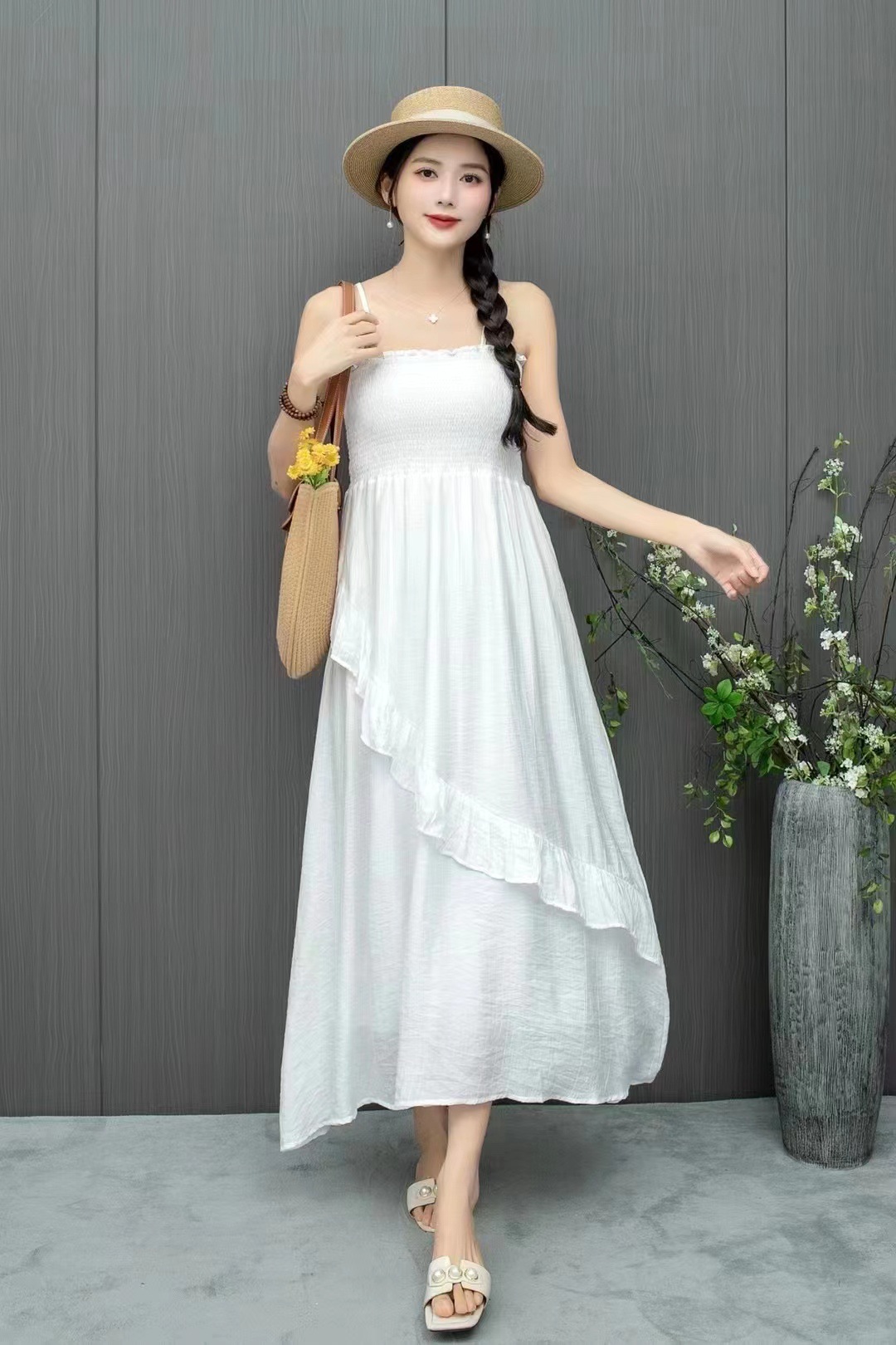 民族风可扎染白胚吊带连衣裙女装中长吊带连衣裙批发