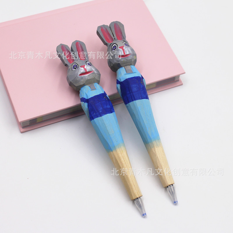 青木凡 创意木雕动物笔工艺礼品笔中性笔 木质雕刻笔广告礼品赠送