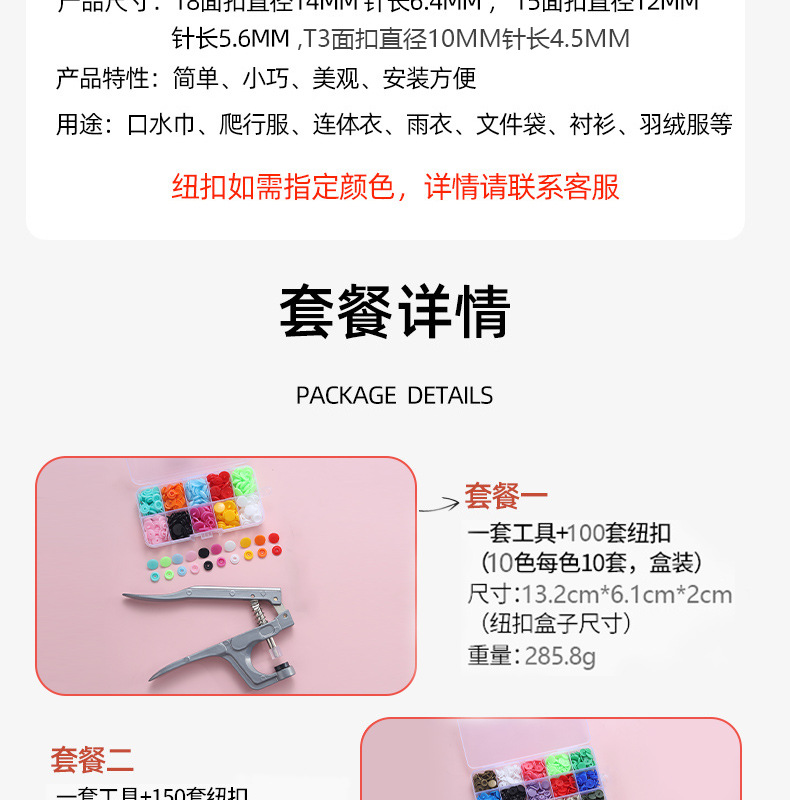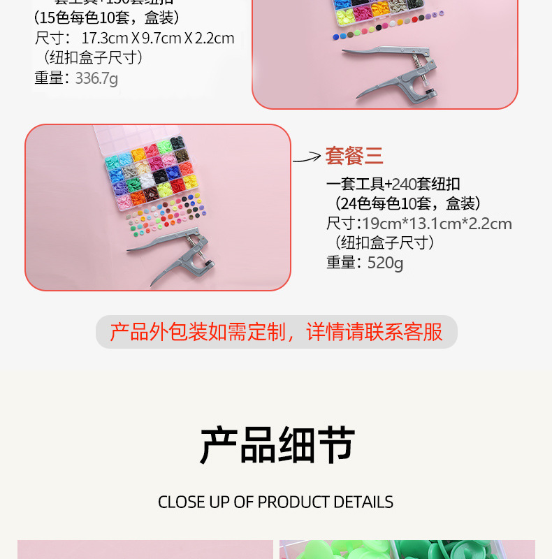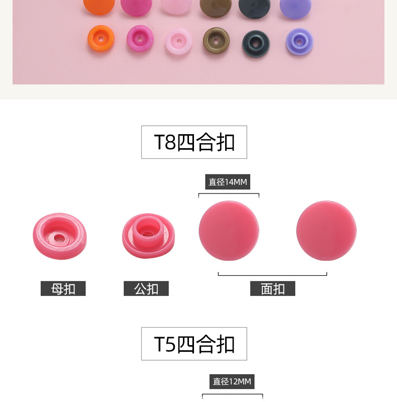 隐形子母摁扣糖果色树脂纽扣套装婴儿按扣免钉免缝宝宝衣服四合扣