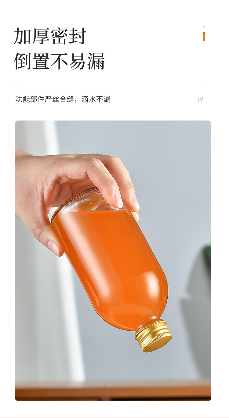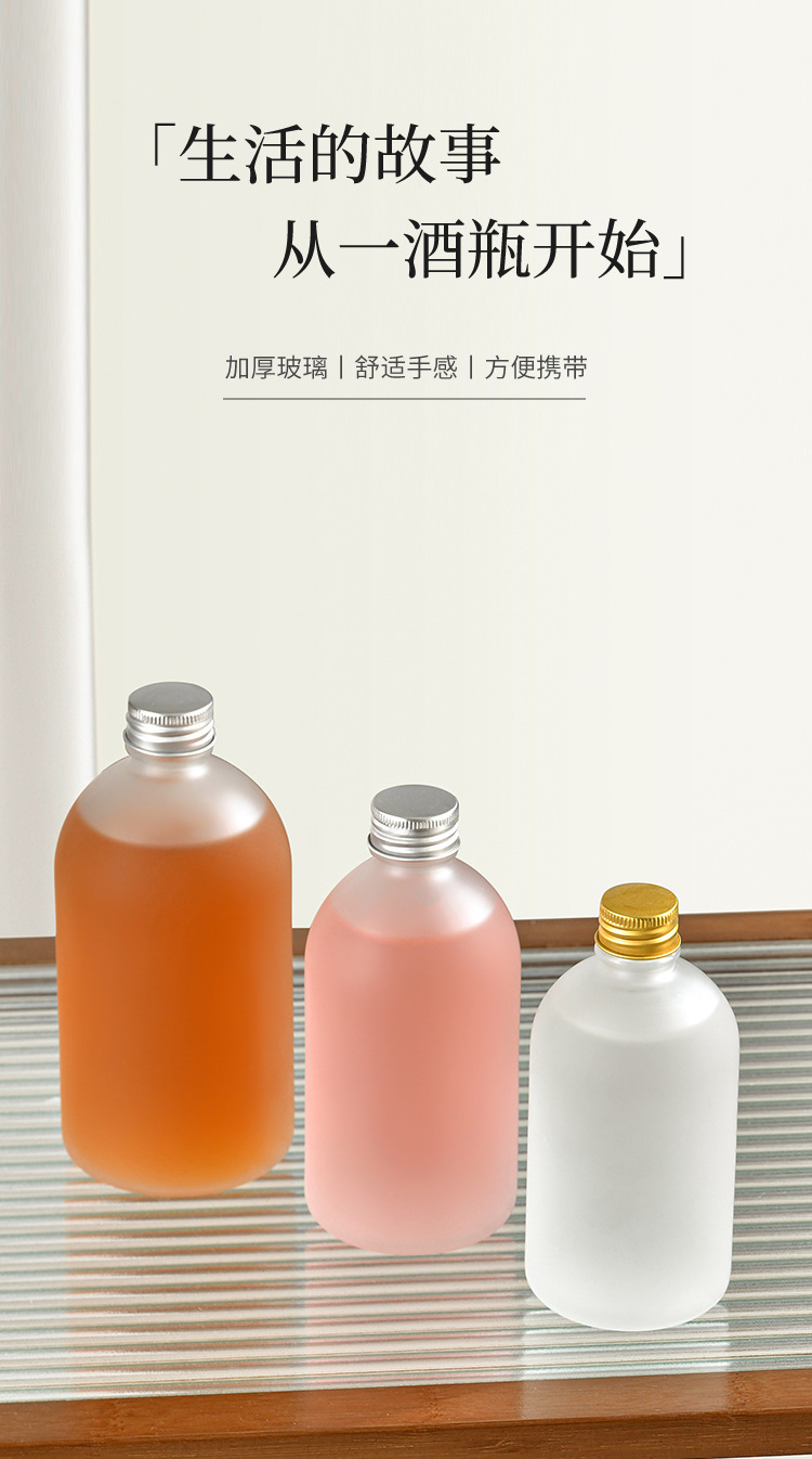 铝盖圆形饮料瓶小口奶茶果汁玻璃瓶100ml波士顿瓶500毫升果酒瓶