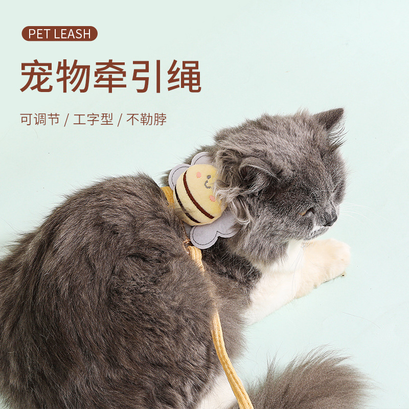 猫咪蜜蜂牵引绳可爱溜猫绳胸背带背心式牵引绳遛狗绳狗狗绳子