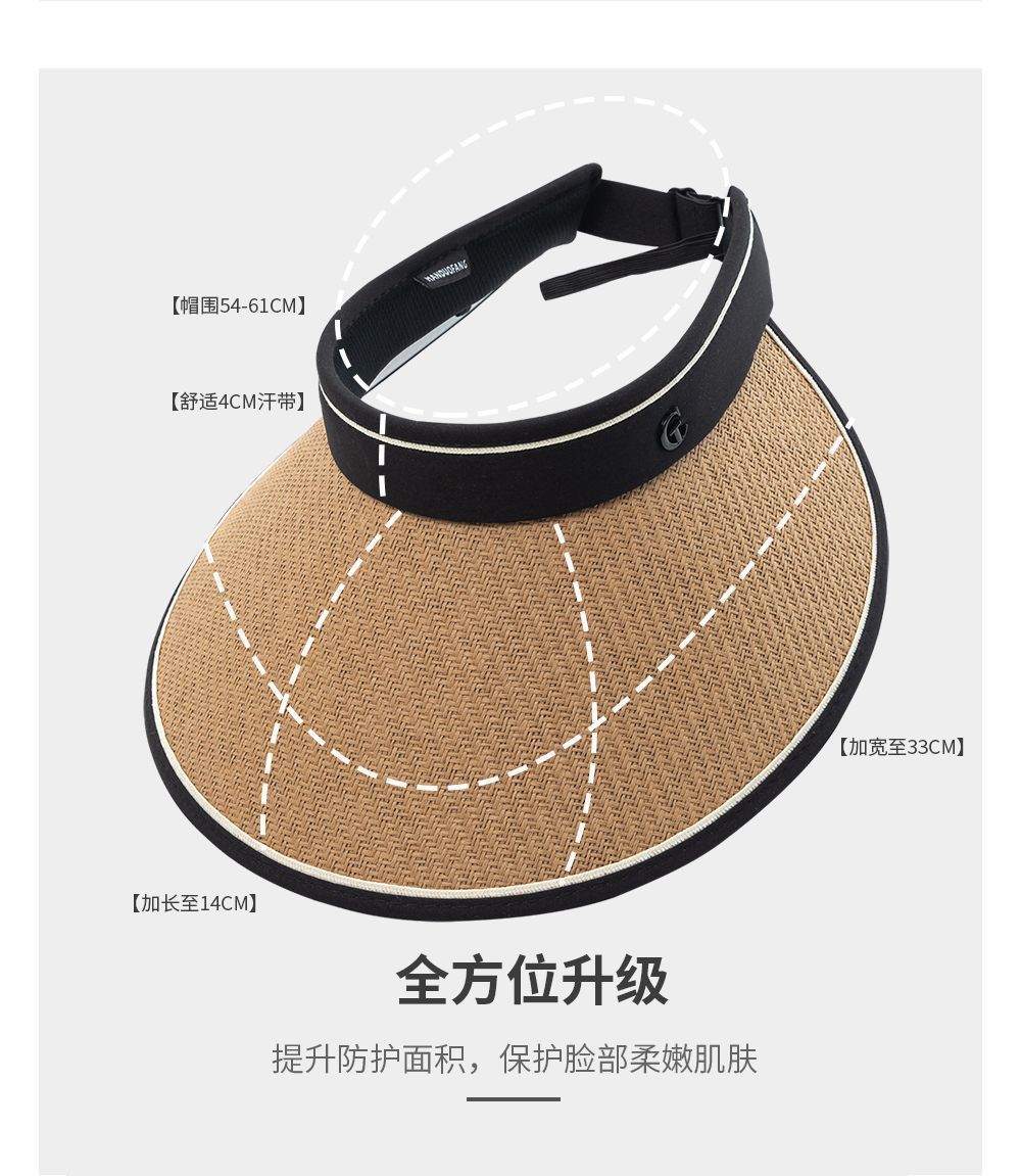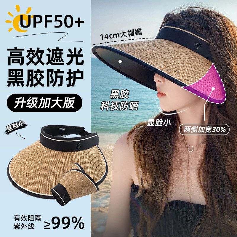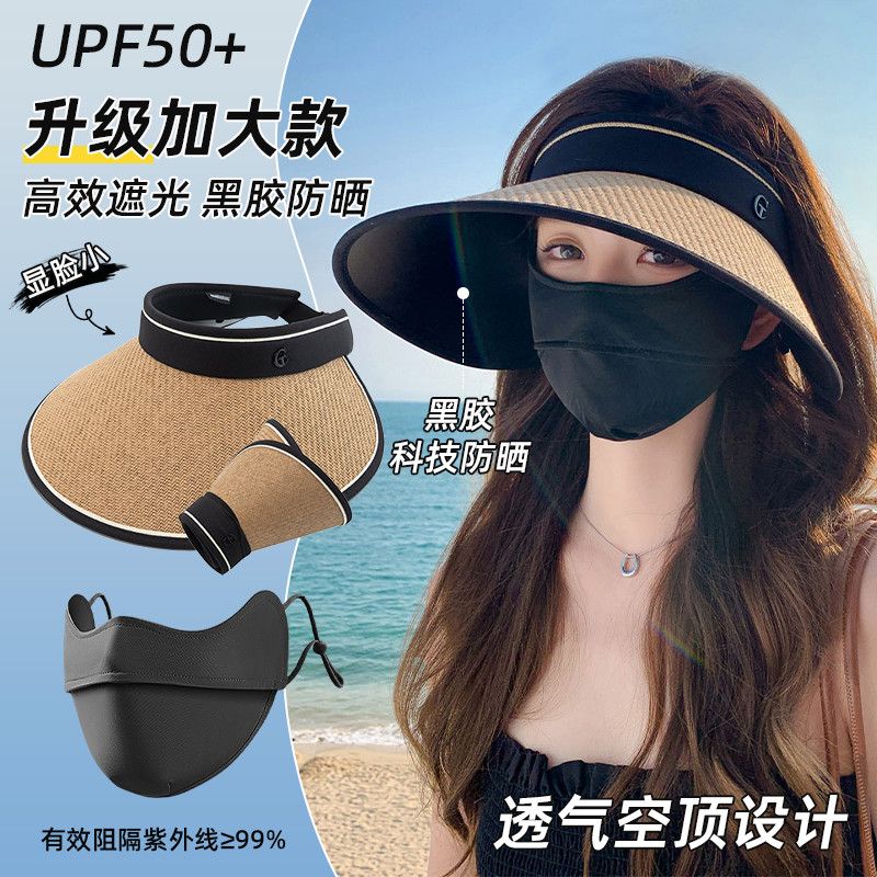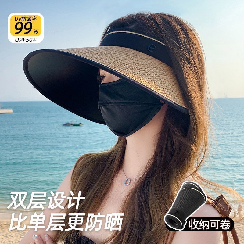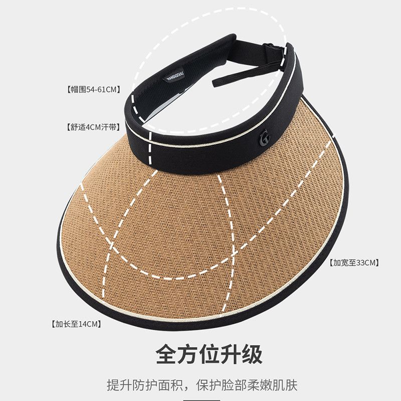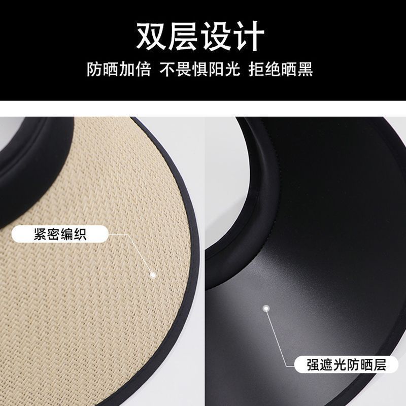 草编新款帽子空顶防晒骑车紫外线帽檐遮阳帽遮脸太阳帽草帽
