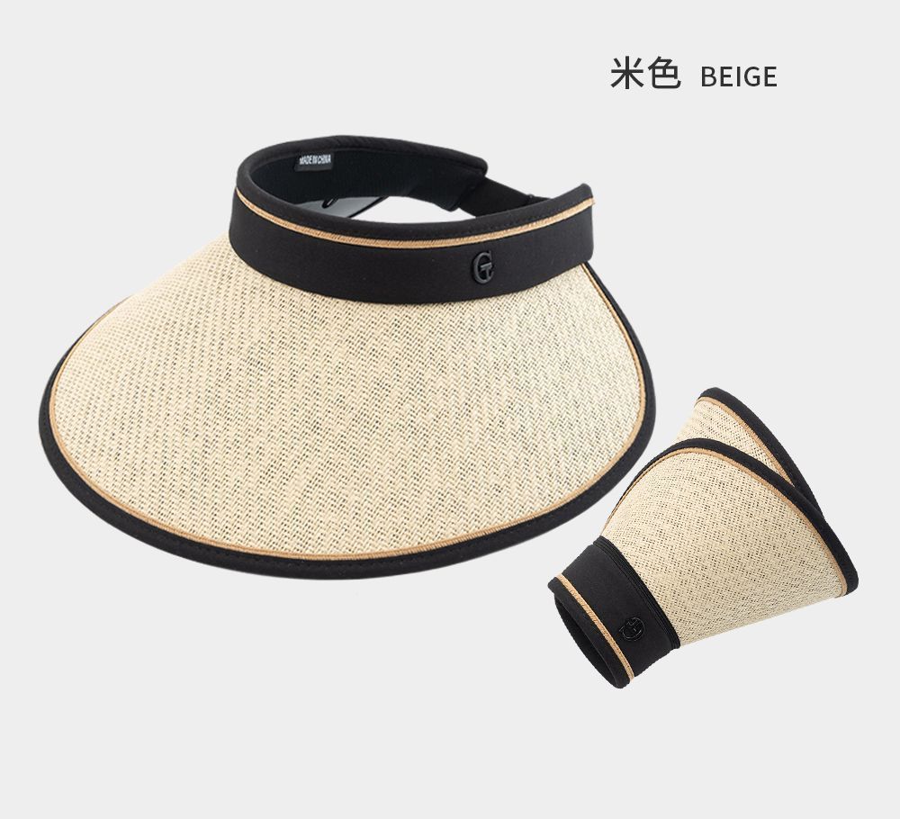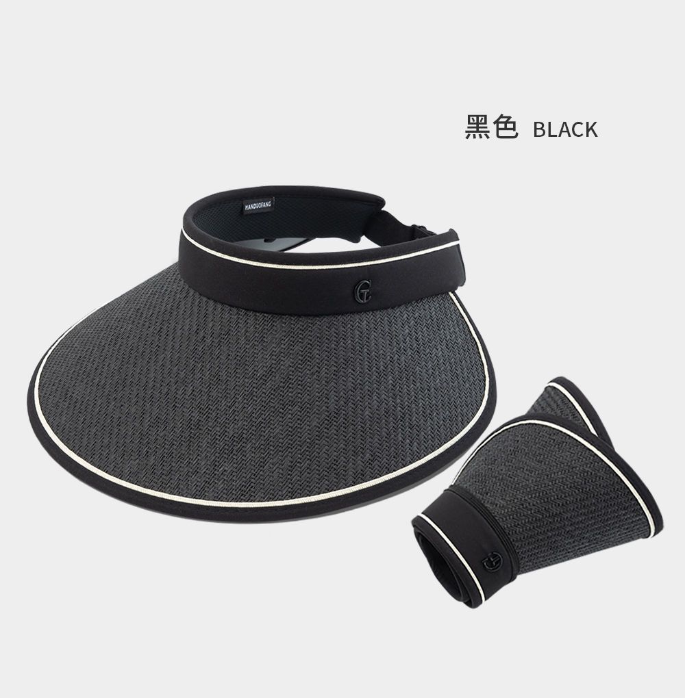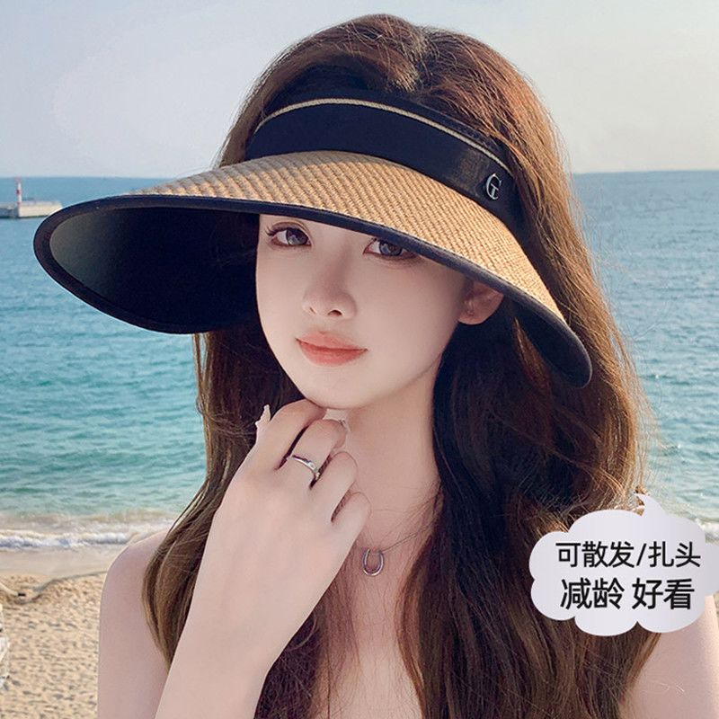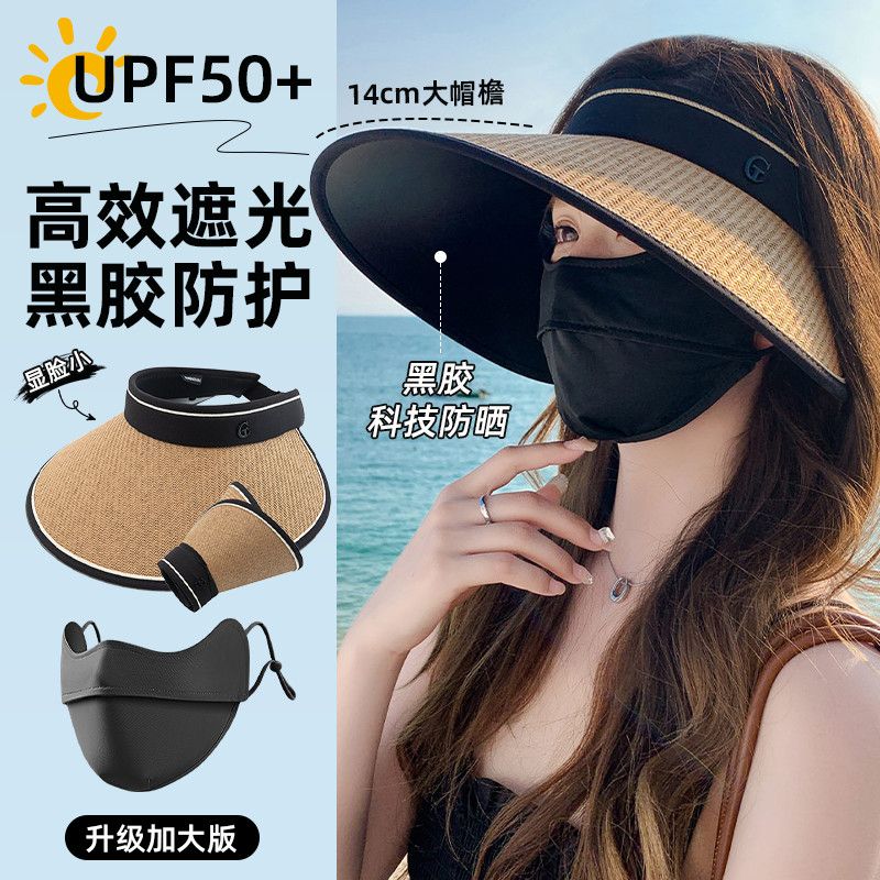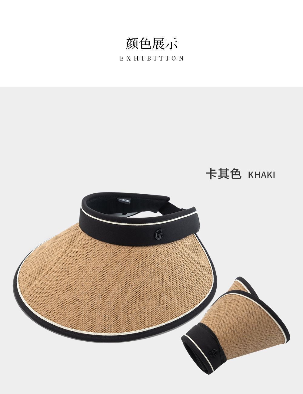 草编新款帽子空顶防晒骑车紫外线帽檐遮阳帽遮脸太阳帽草帽