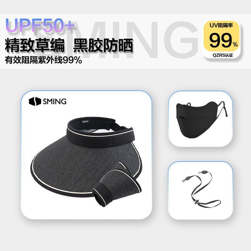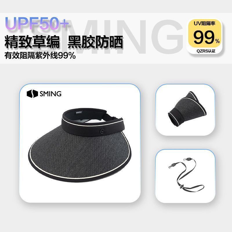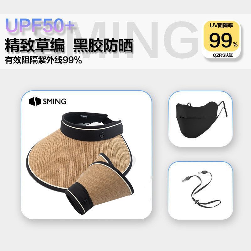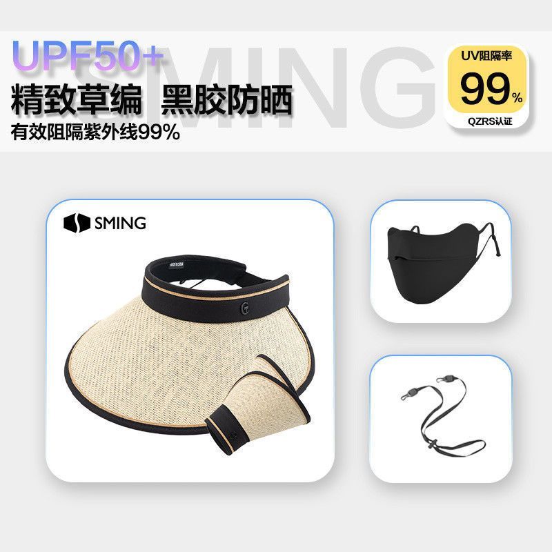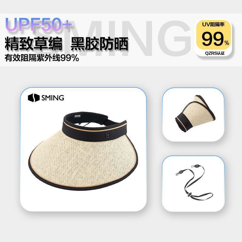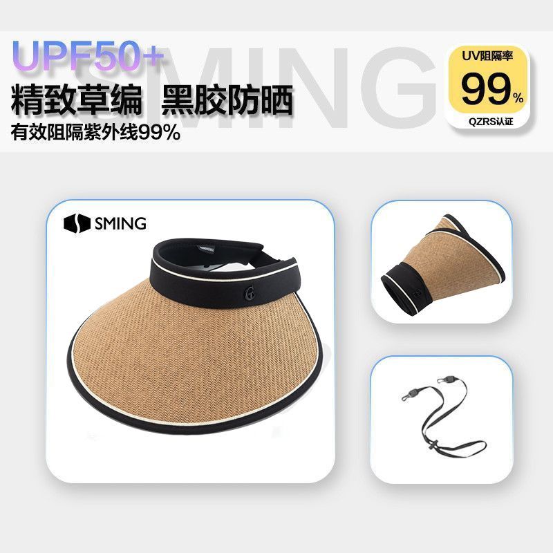 草编新款帽子空顶防晒骑车紫外线帽檐遮阳帽遮脸太阳帽草帽