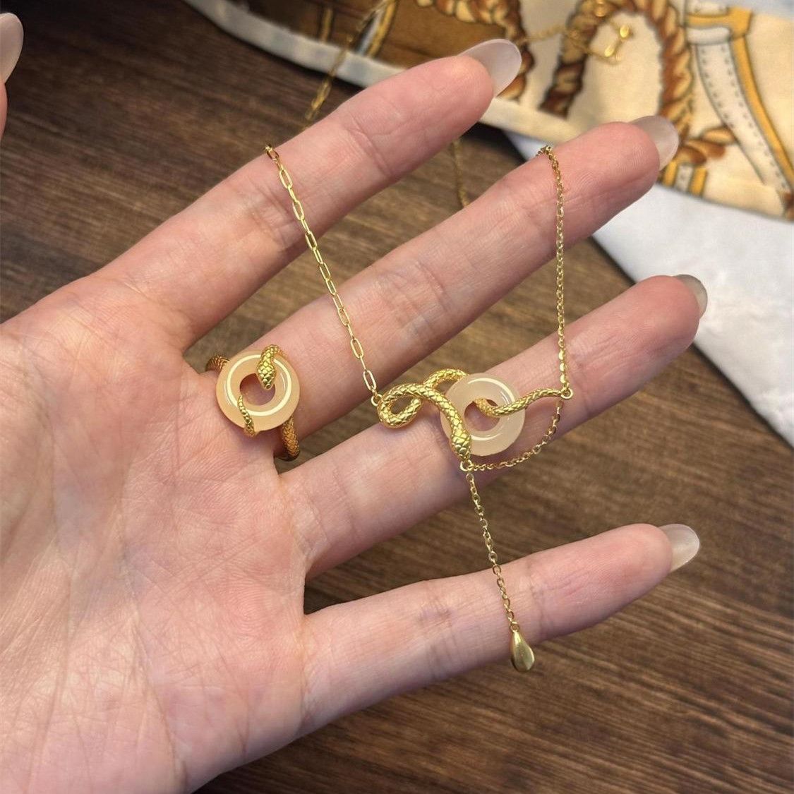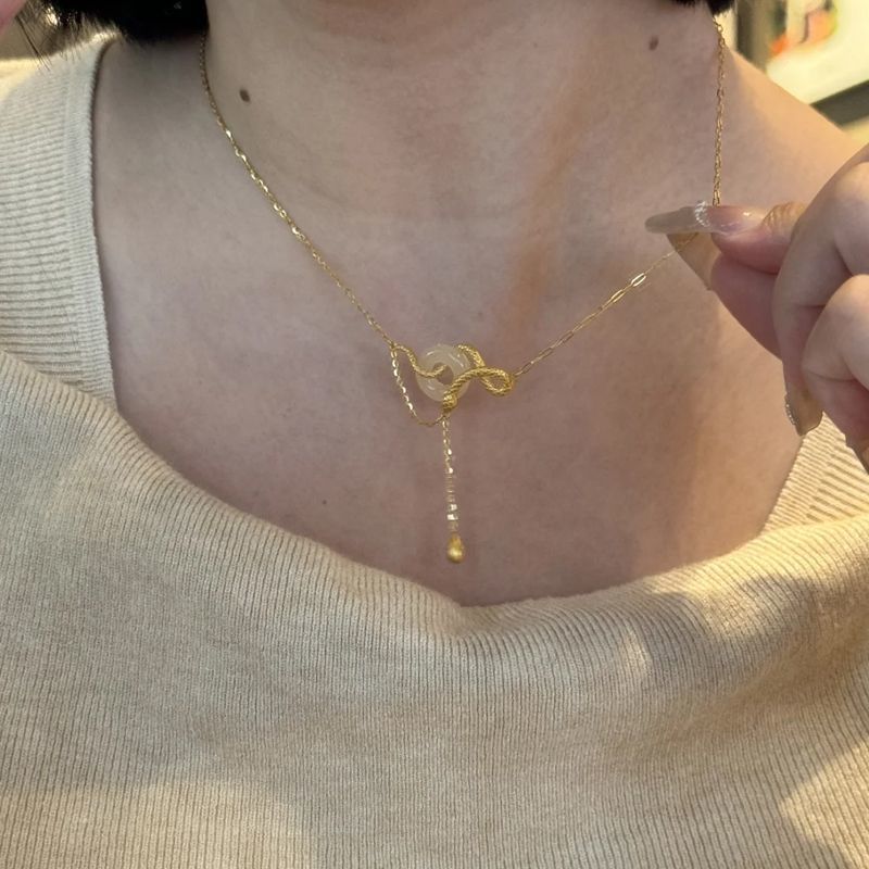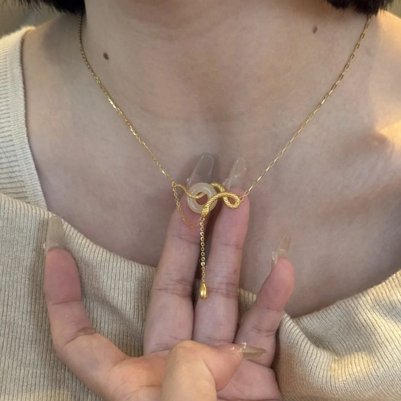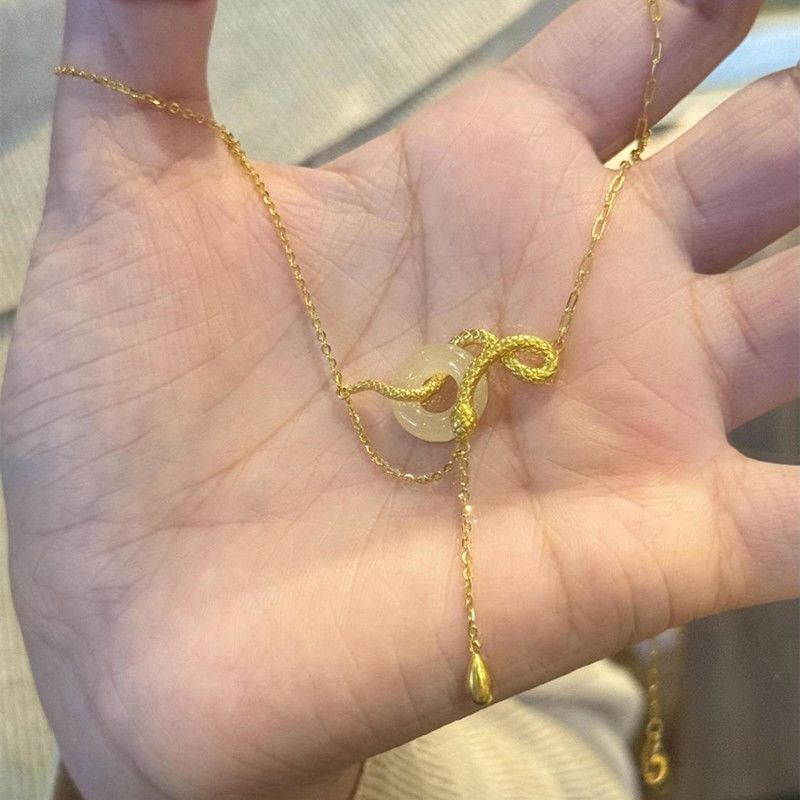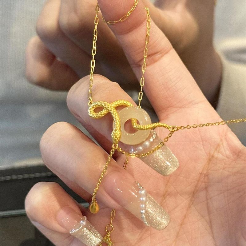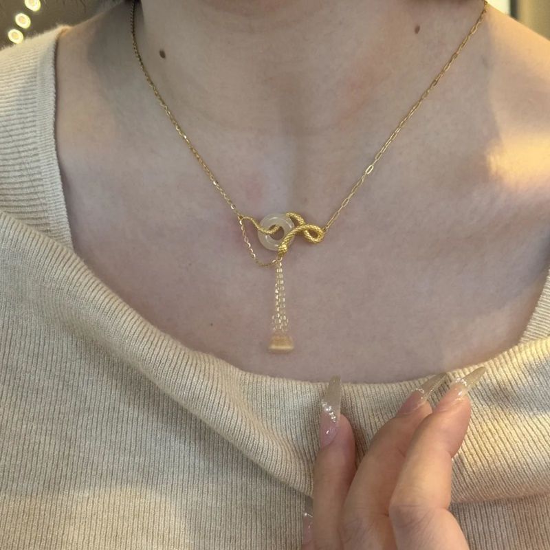 s925纯银玉髓平安扣灵蛇项链女新中式本命蛇年锁骨链闺蜜生日礼物