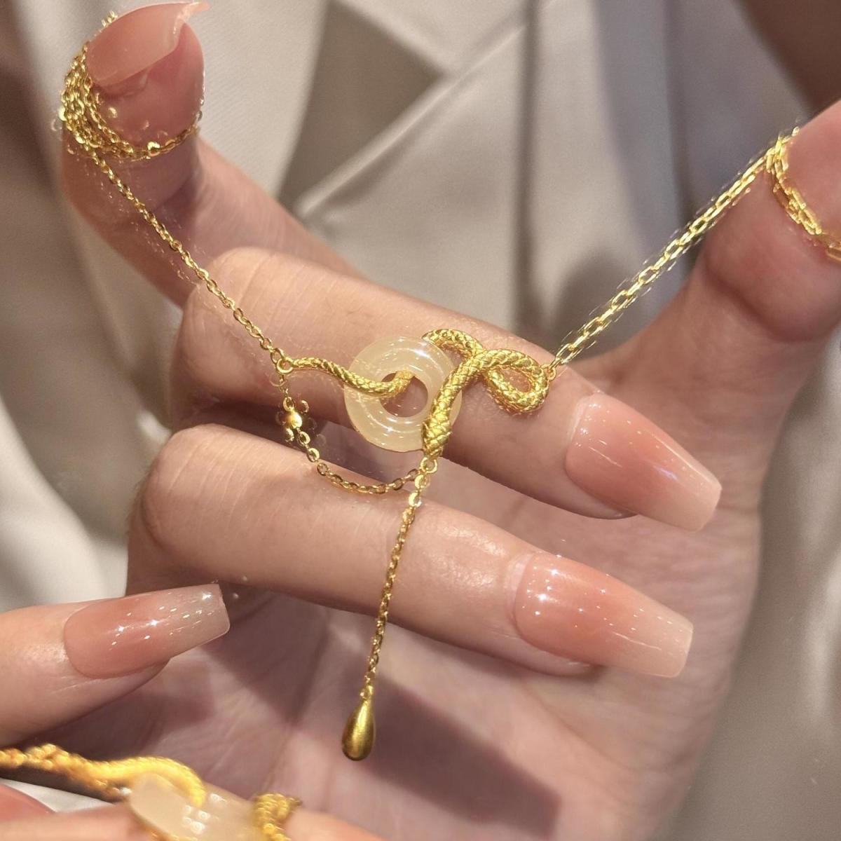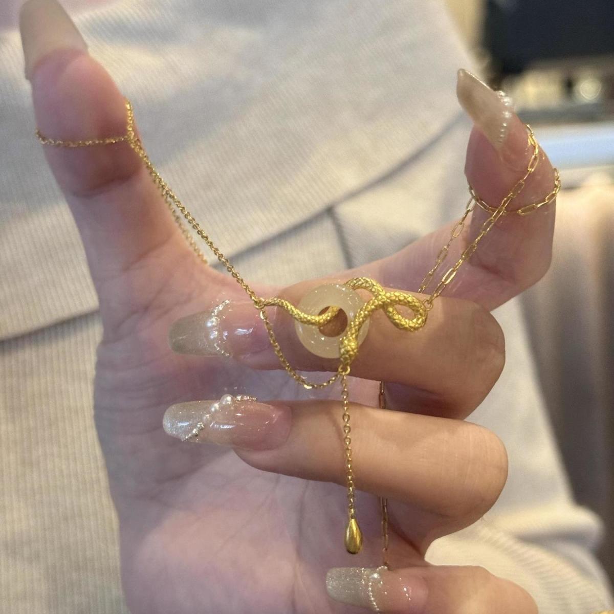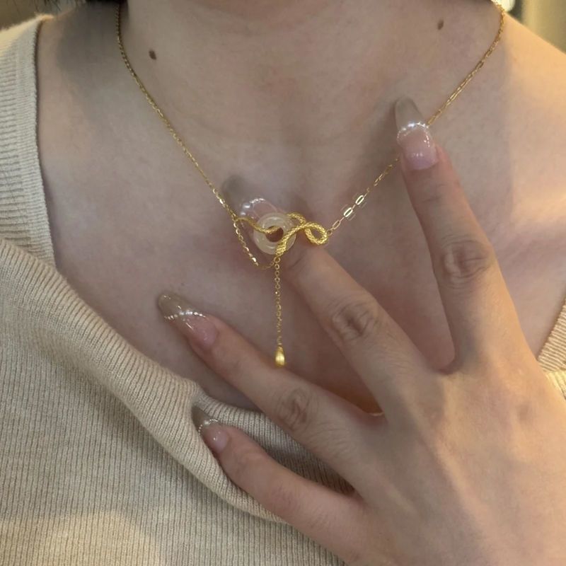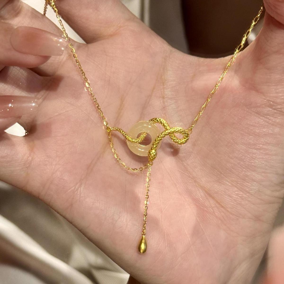 s925纯银玉髓平安扣灵蛇项链女新中式本命蛇年锁骨链闺蜜生日礼物
