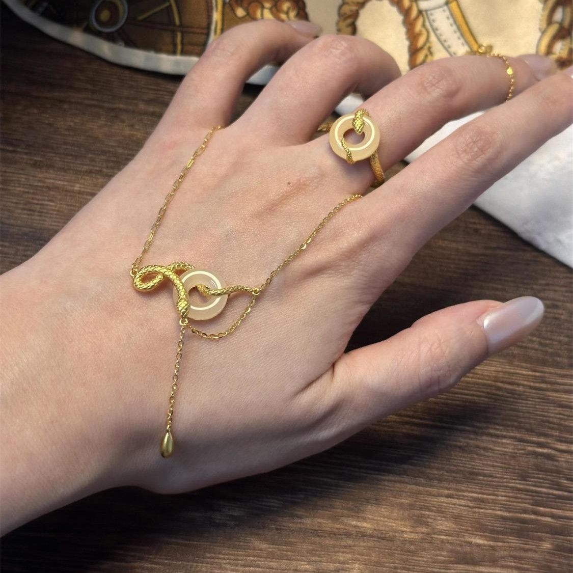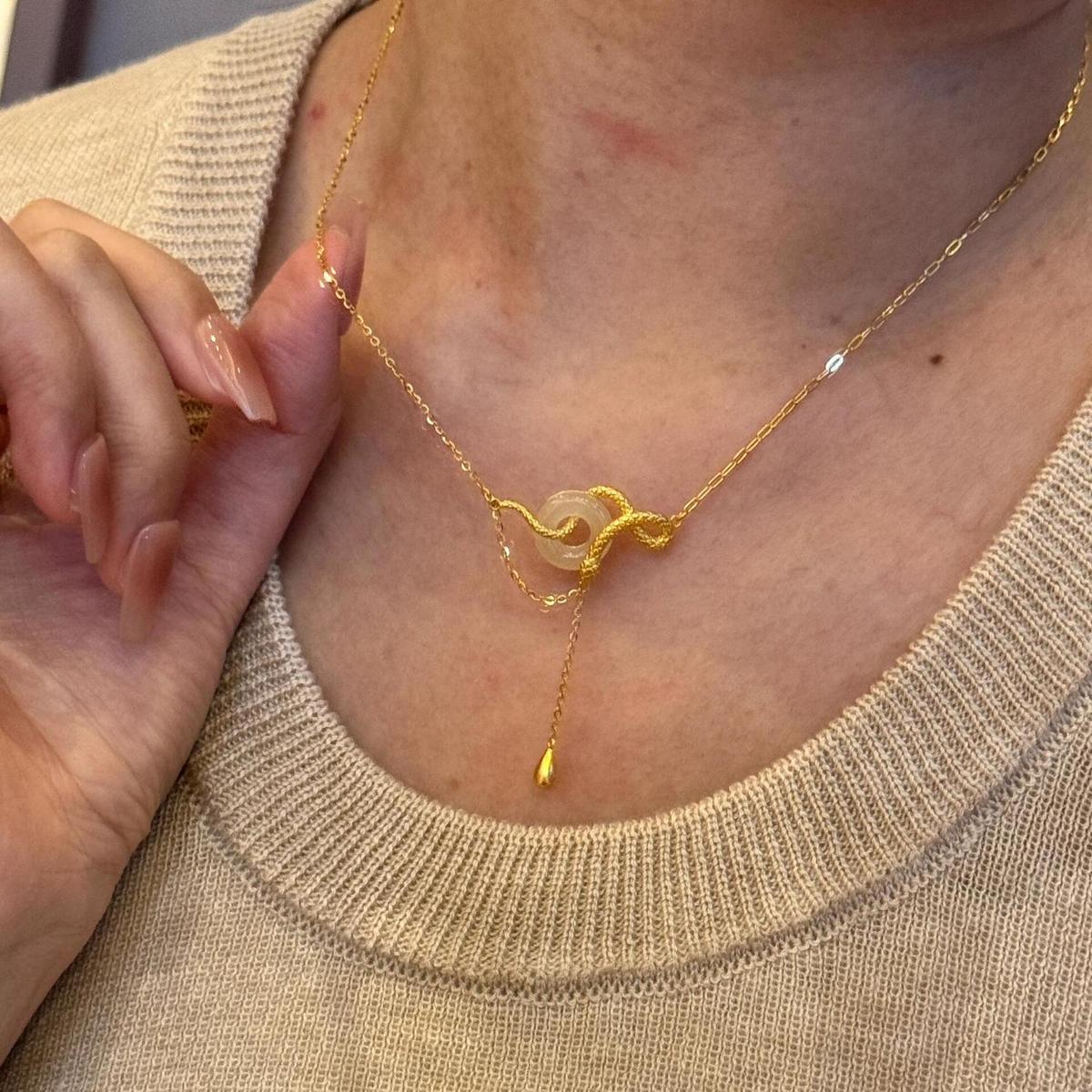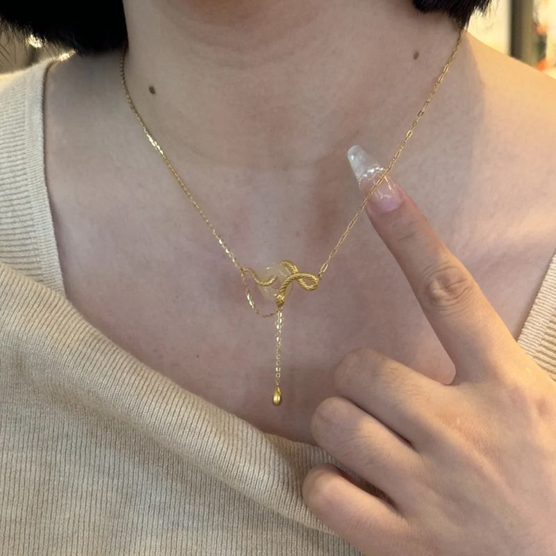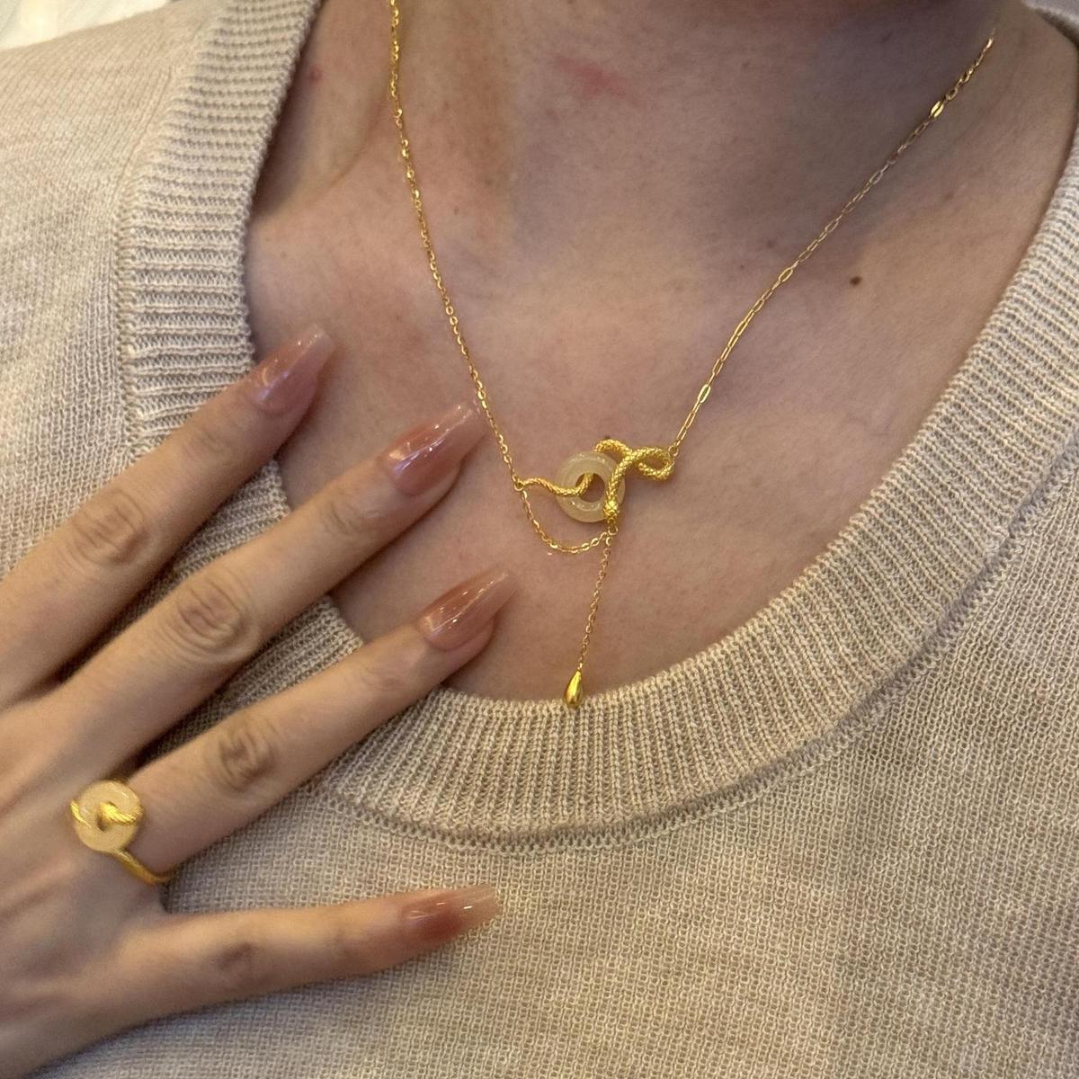 s925纯银玉髓平安扣灵蛇项链女新中式本命蛇年锁骨链闺蜜生日礼物