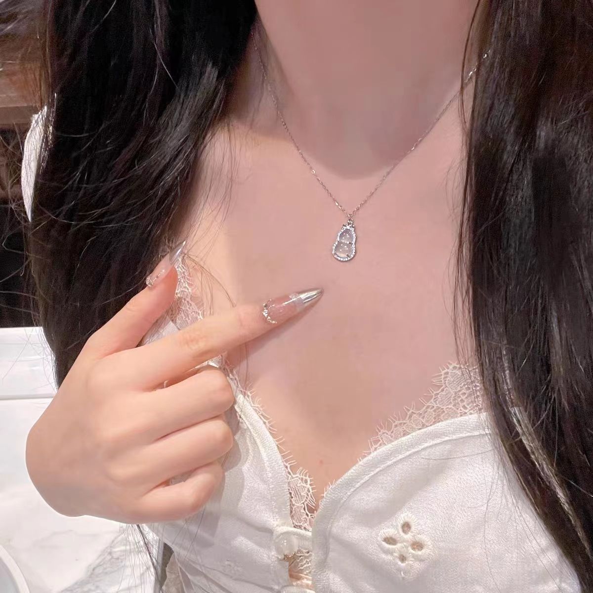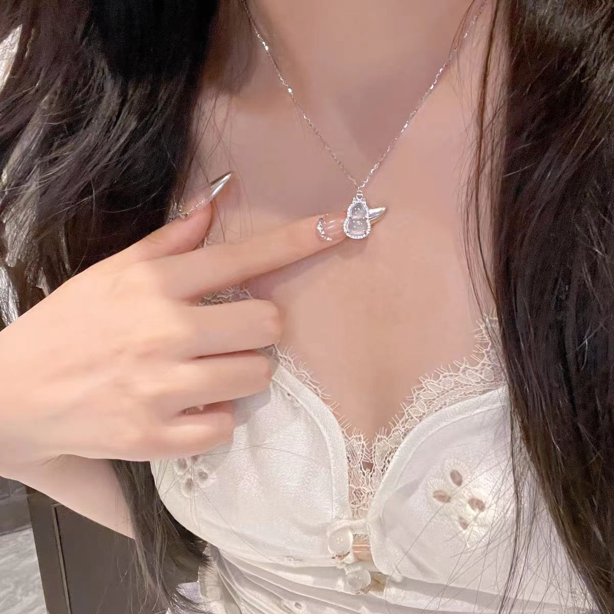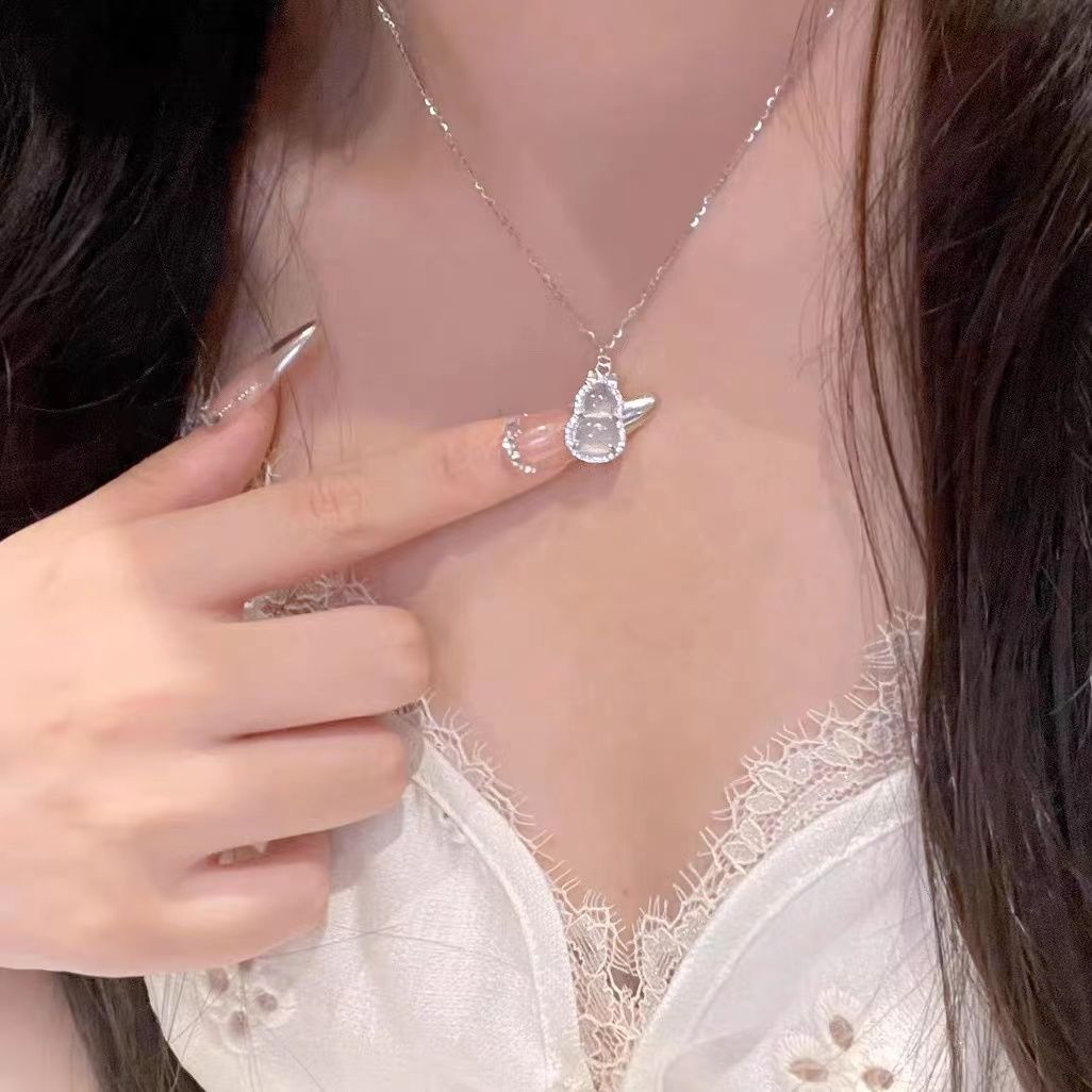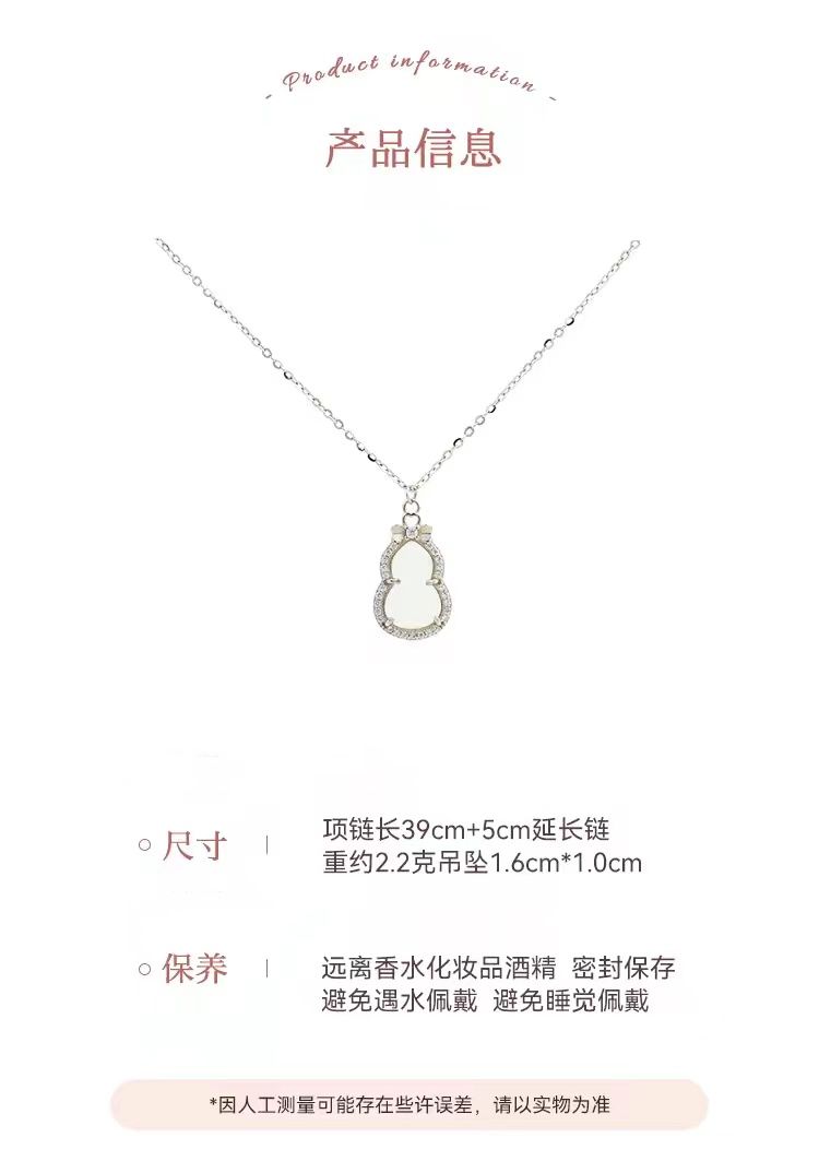「岁岁福禄」s925银清冷感仿白玉髓葫芦项链女新中式高级感锁骨链