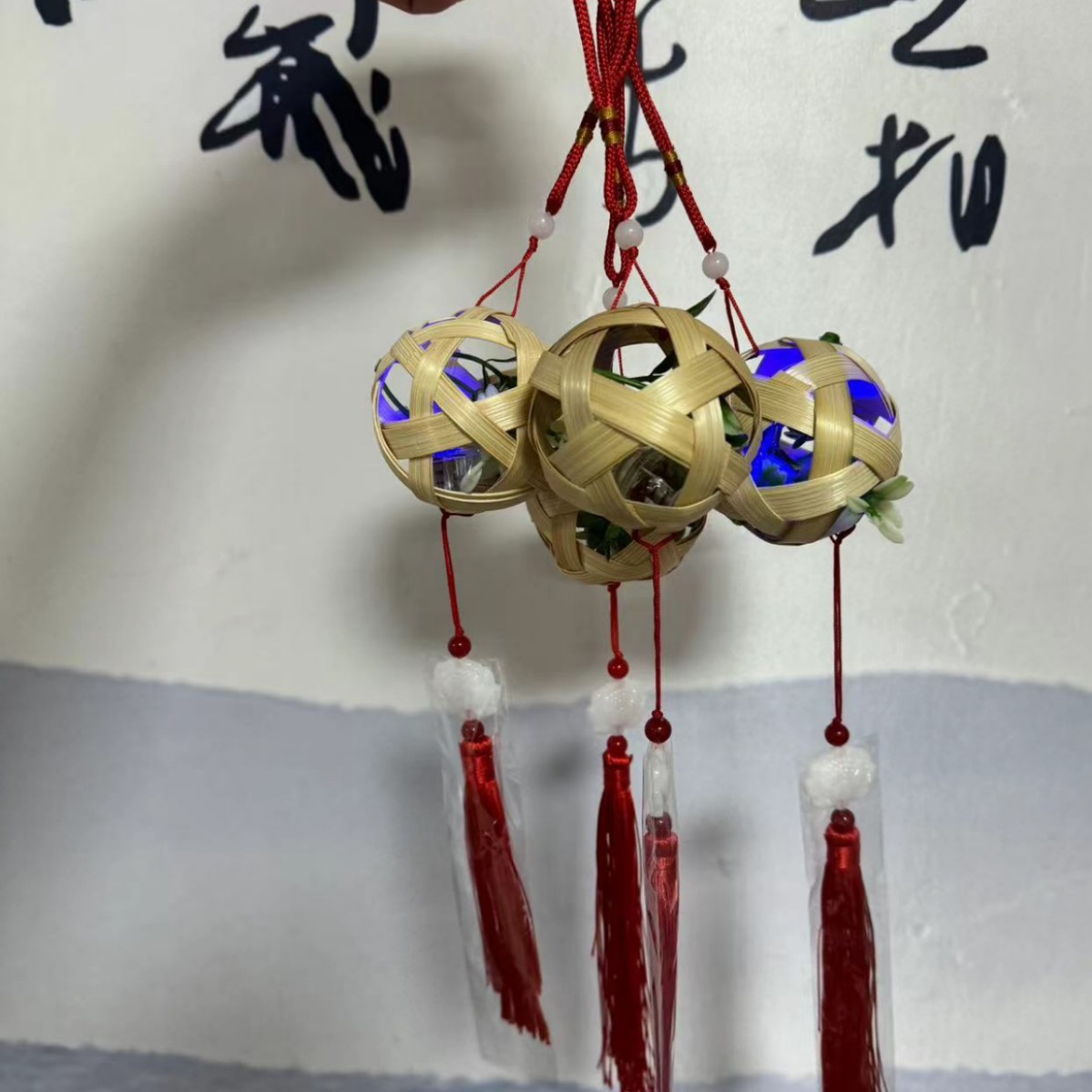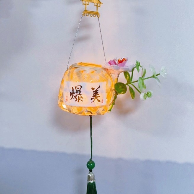 DIY复古风竹编小灯笼儿童手提发光花灯户外竹编迷你中秋元宵灯笼