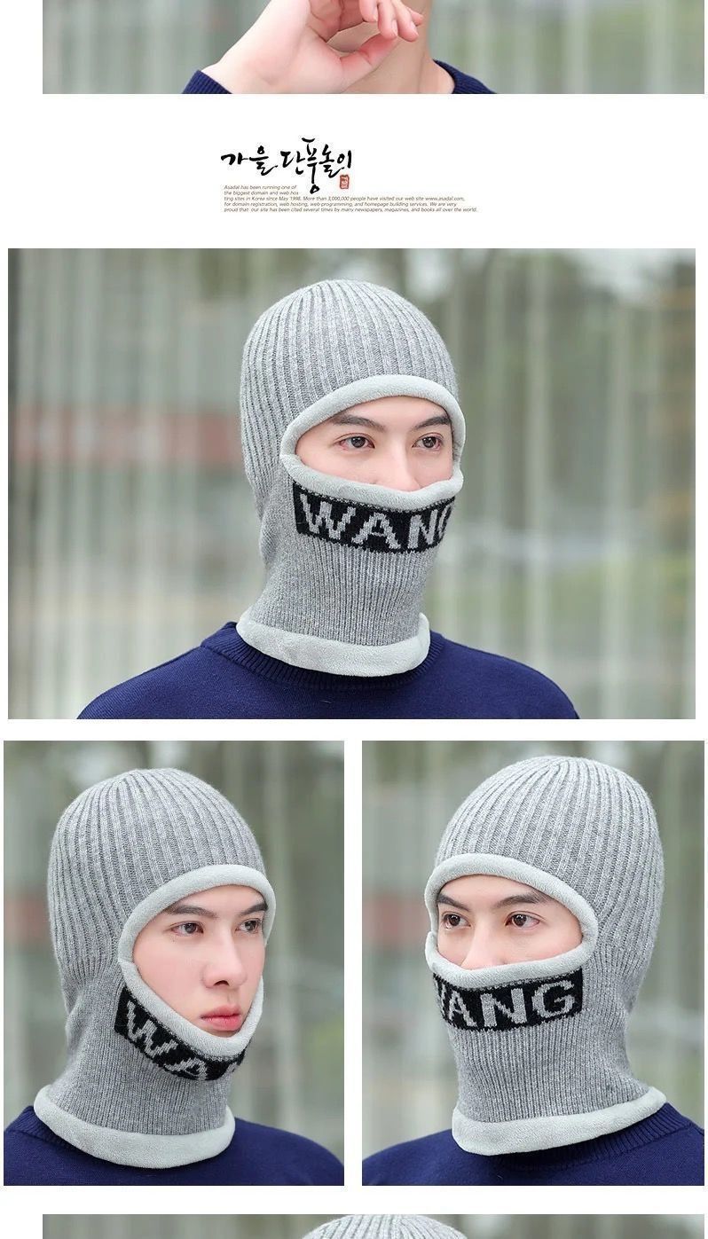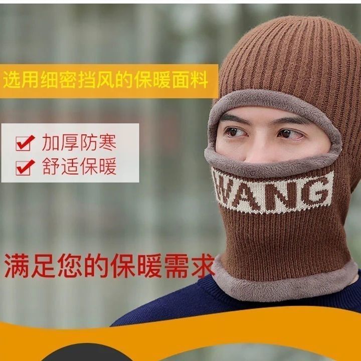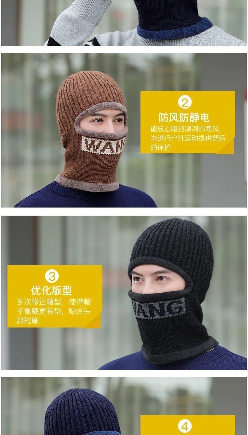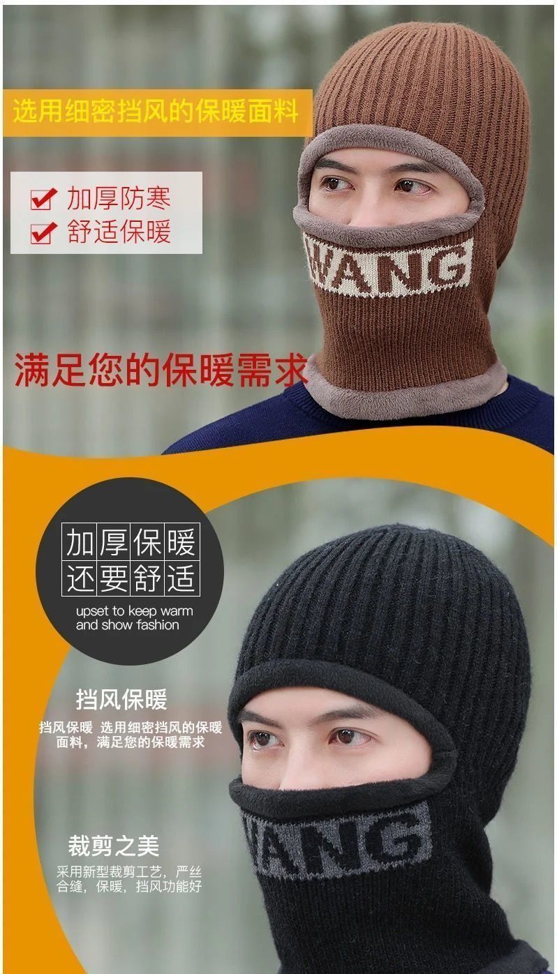 冬季男帽子一体毛线帽加绒加厚保暖套头骑车护耳防风针织帽