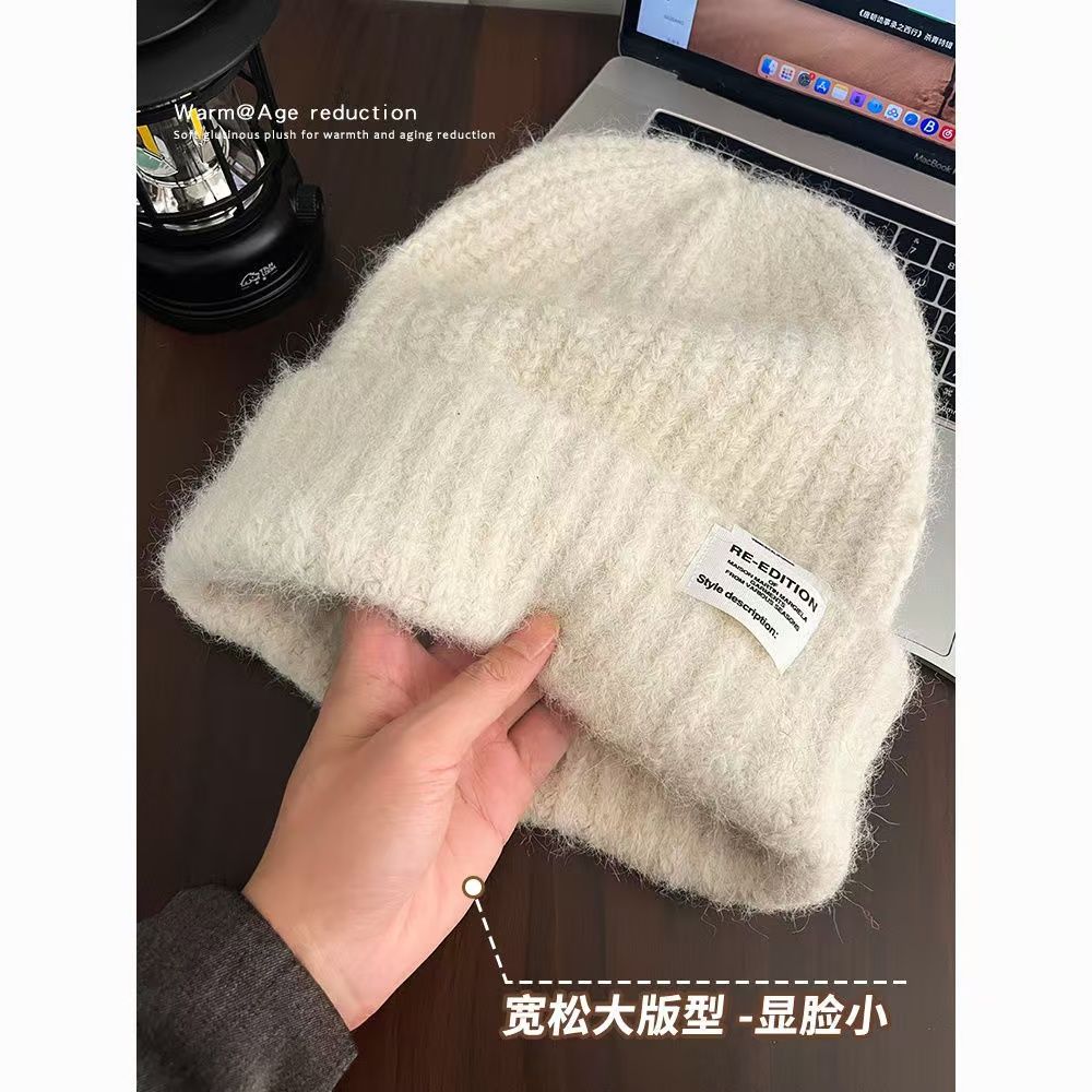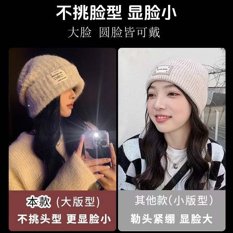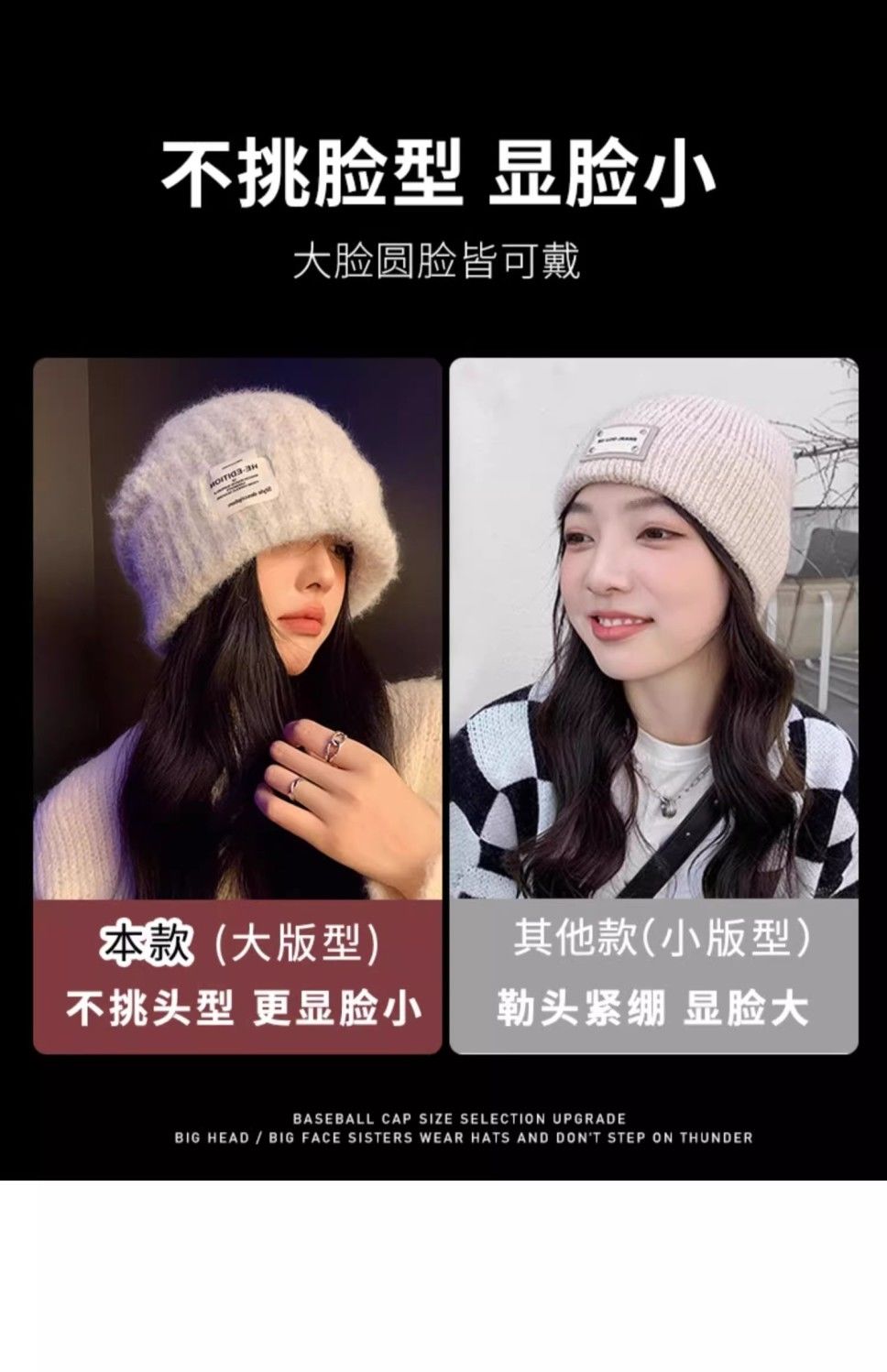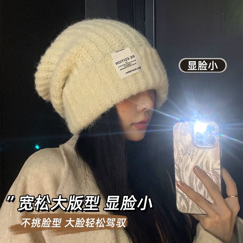 大头围帽子女冬季2024新款毛线帽显脸小保暖宽松护耳包头针织帽潮