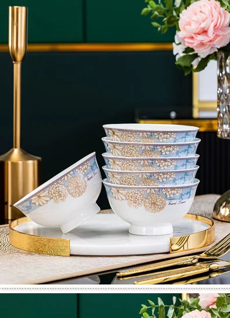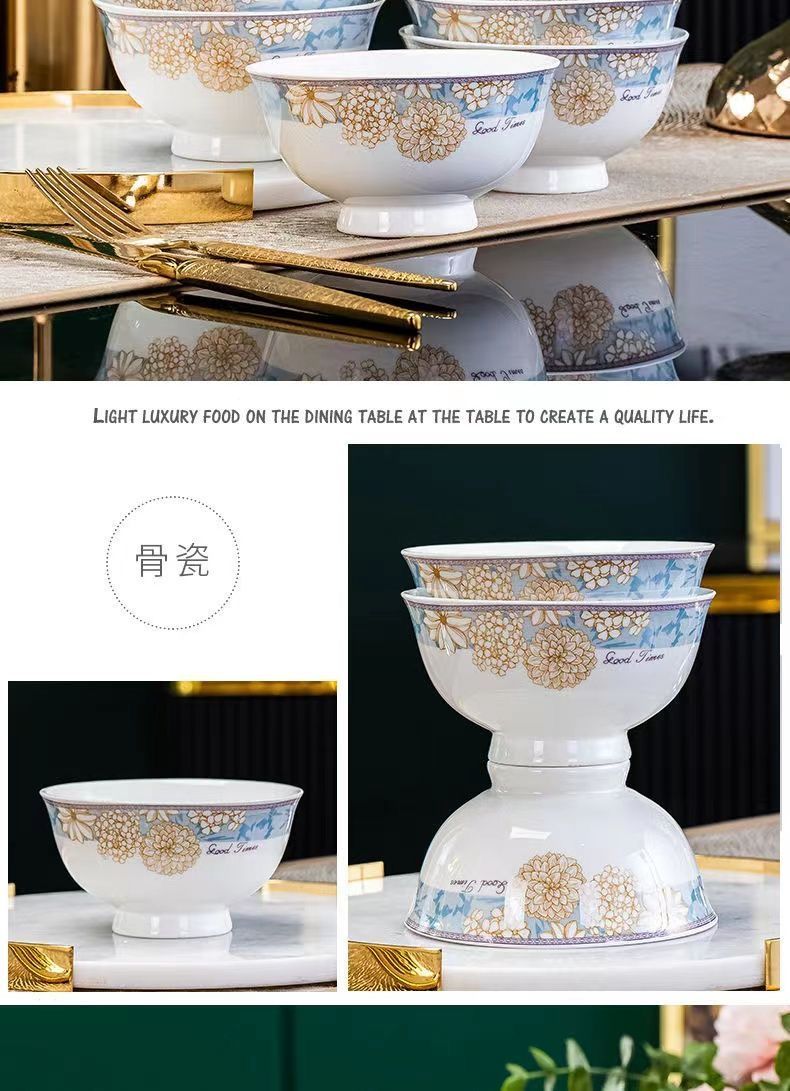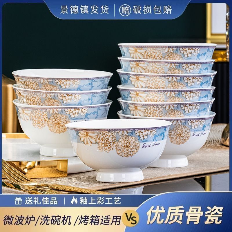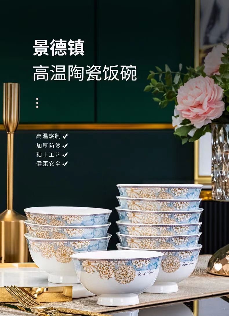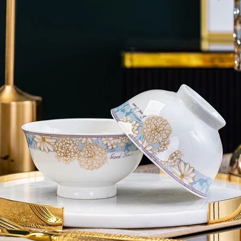 厂家直销景德镇陶瓷碗家用吃饭碗4.5英寸时光漫步新款骨瓷餐具套