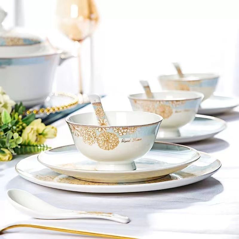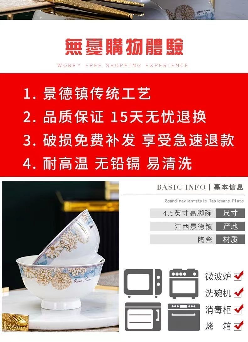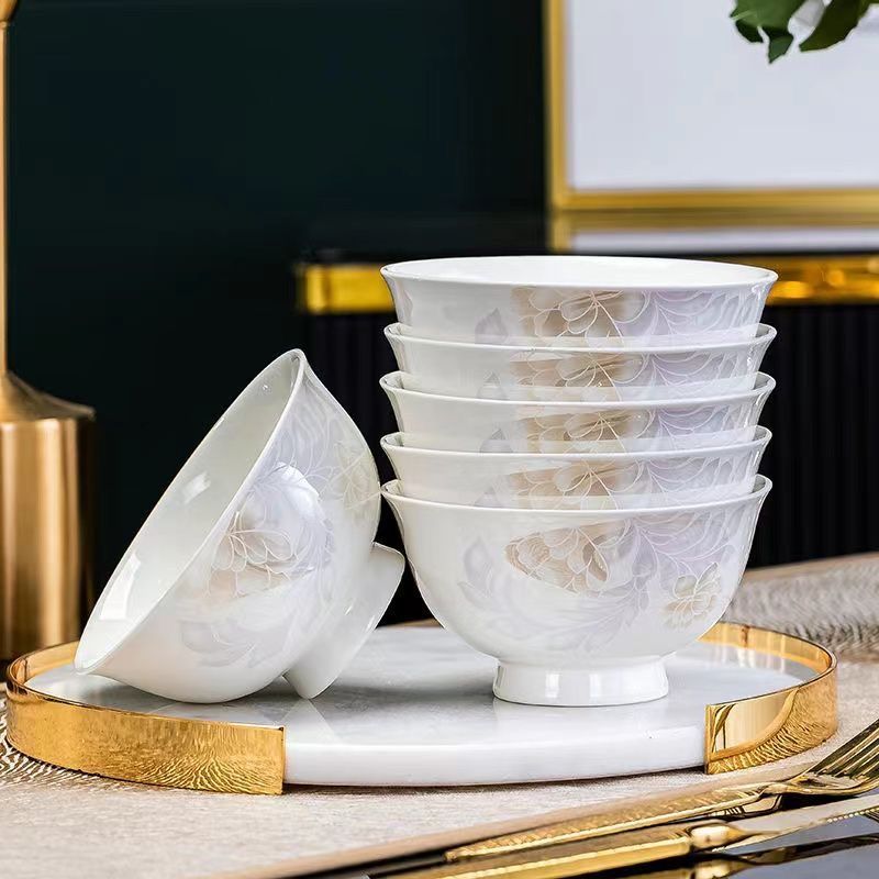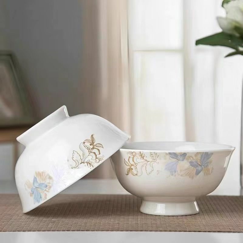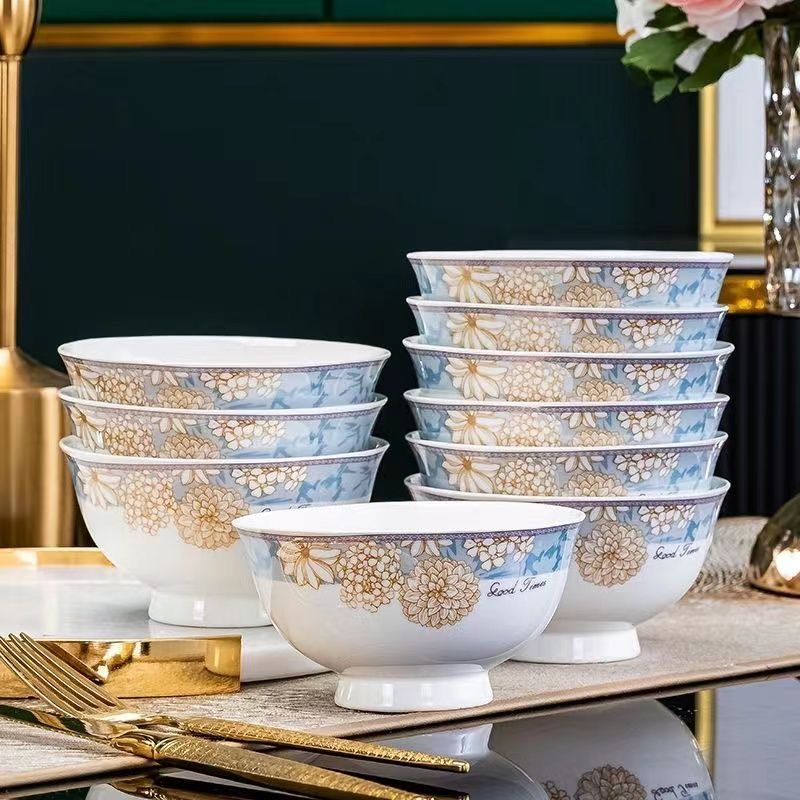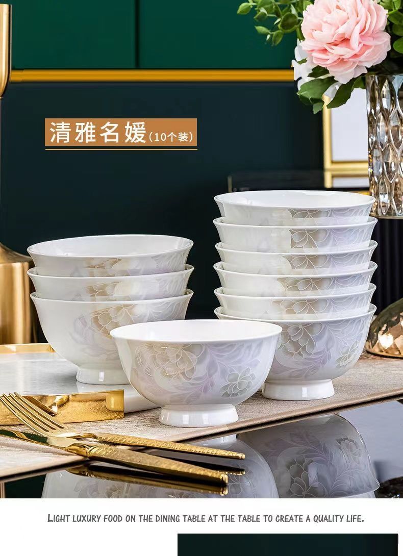 厂家直销景德镇陶瓷碗家用吃饭碗4.5英寸时光漫步新款骨瓷餐具套