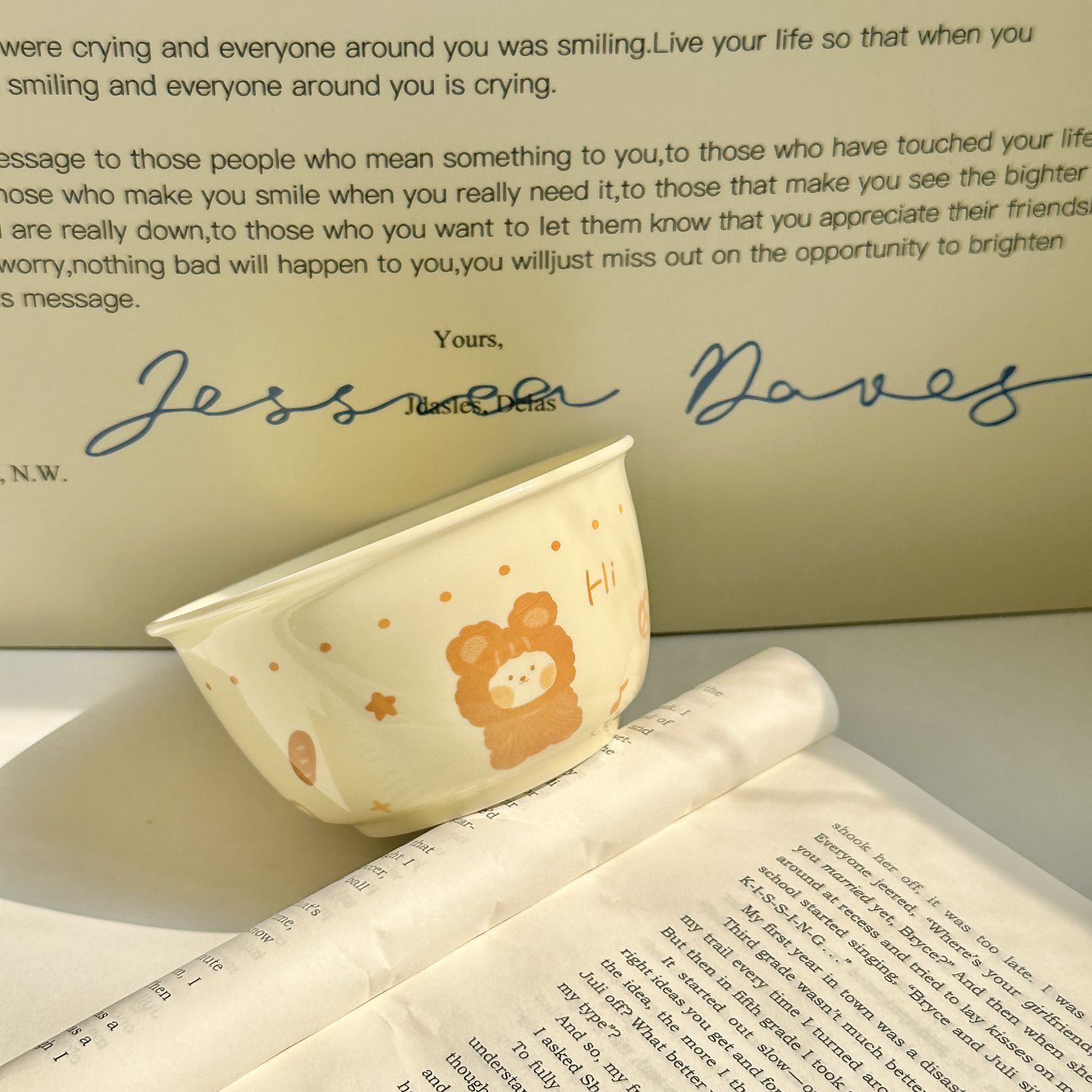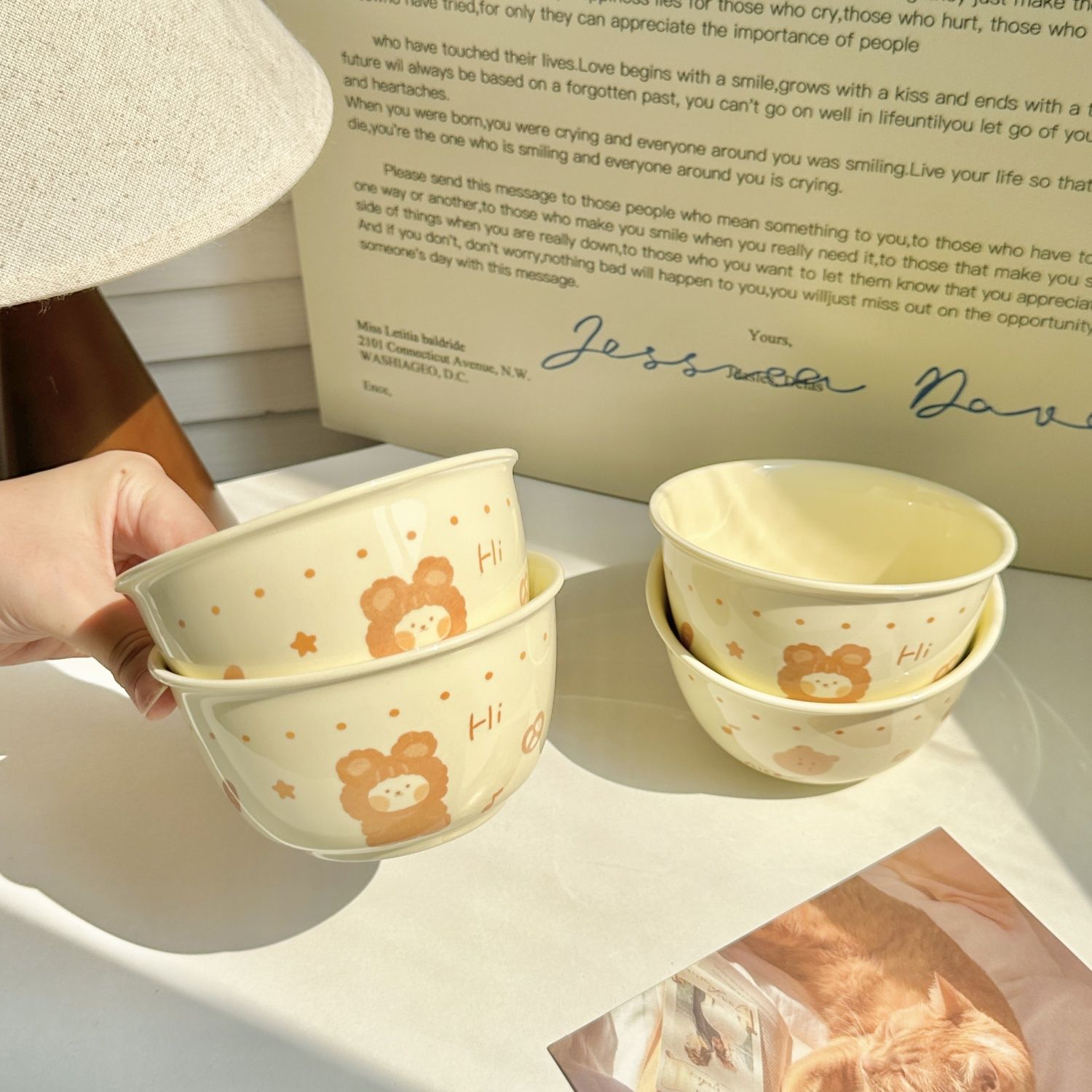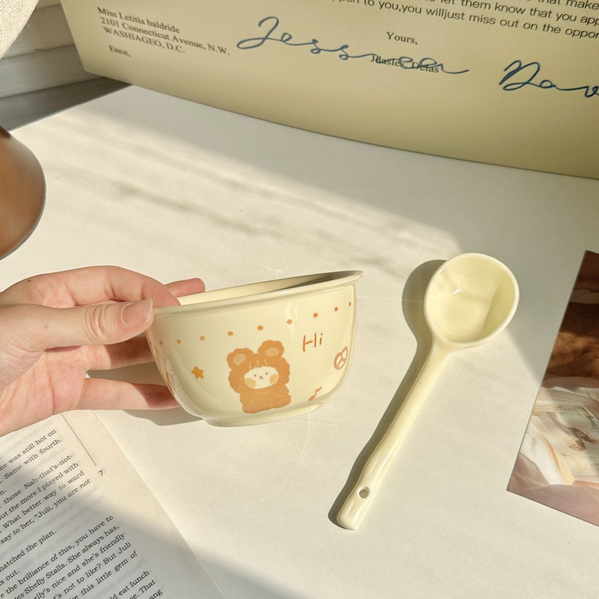 ins可爱卡通奶油饭碗高颜值少女餐具陶瓷加厚甜品下彩家用套装