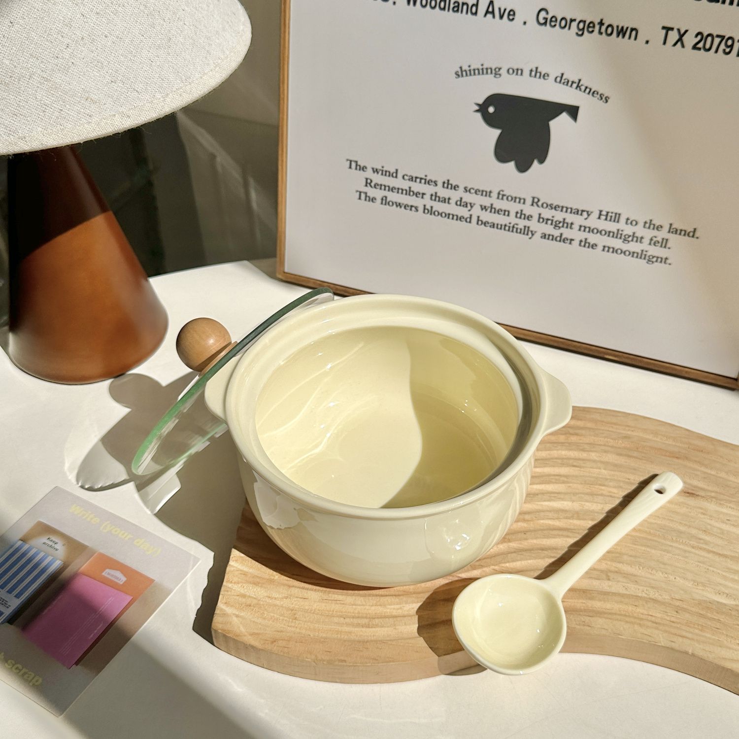 新款ins陶瓷泡面碗带盖高颜值餐具学生宿舍防烫小众用方便面碗