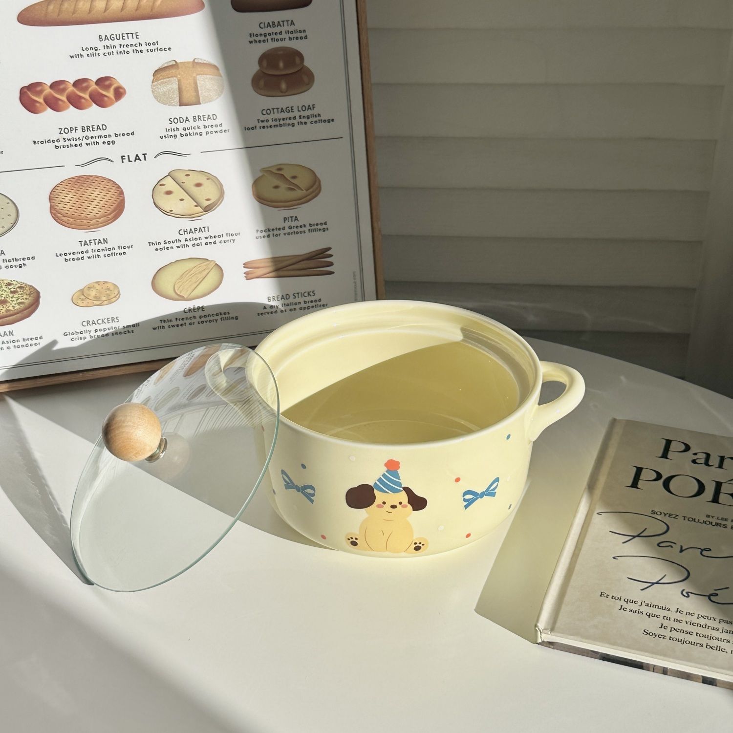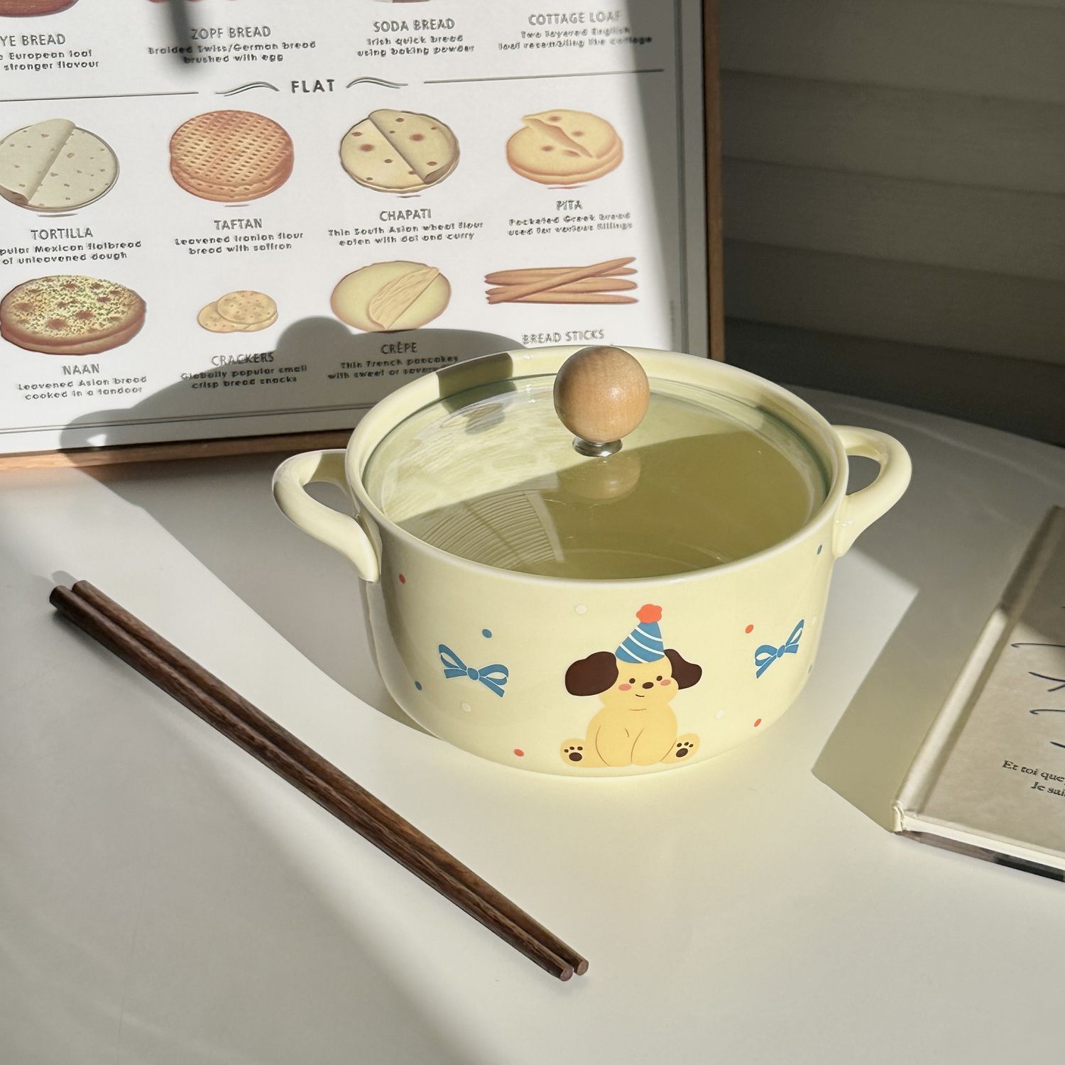 新款ins风奶油小狗陶瓷泡面碗带盖学生宿舍用方便面碗大容量汤碗