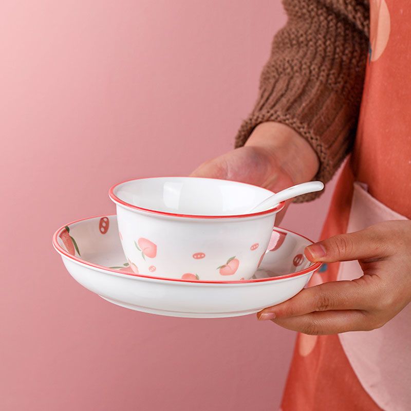 新款碗家用陶瓷米饭碗套装网红大号饭碗可爱日式水蜜桃小汤碗甩卖