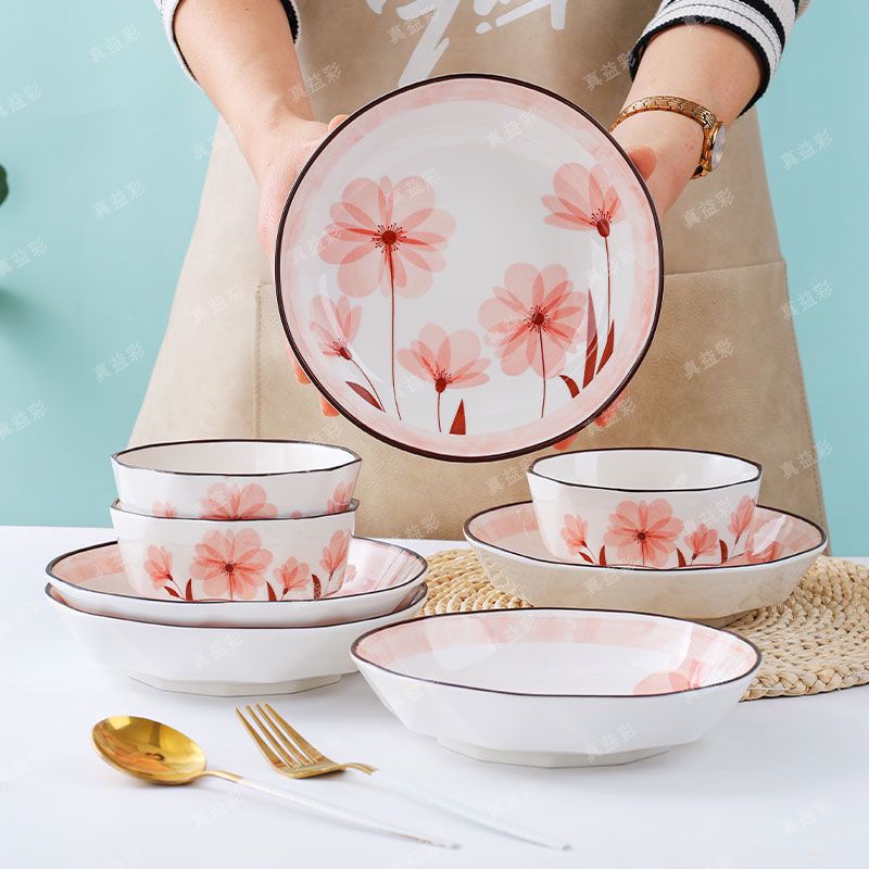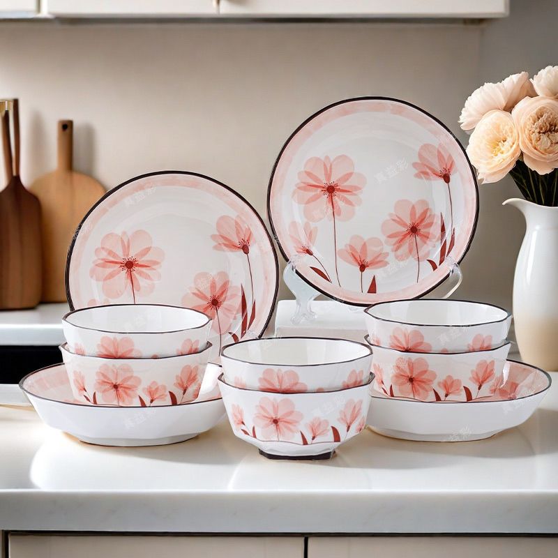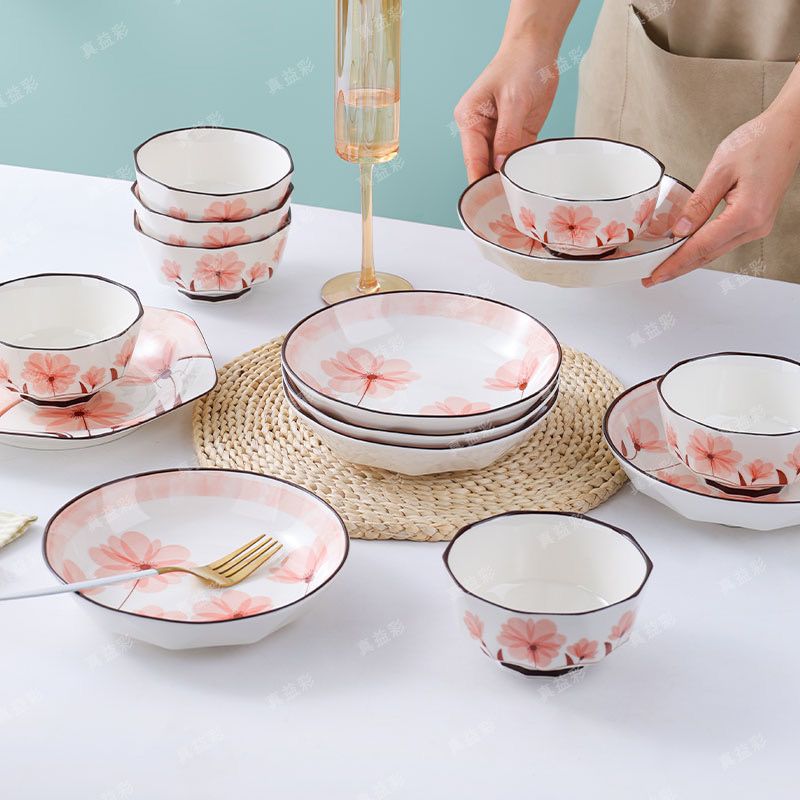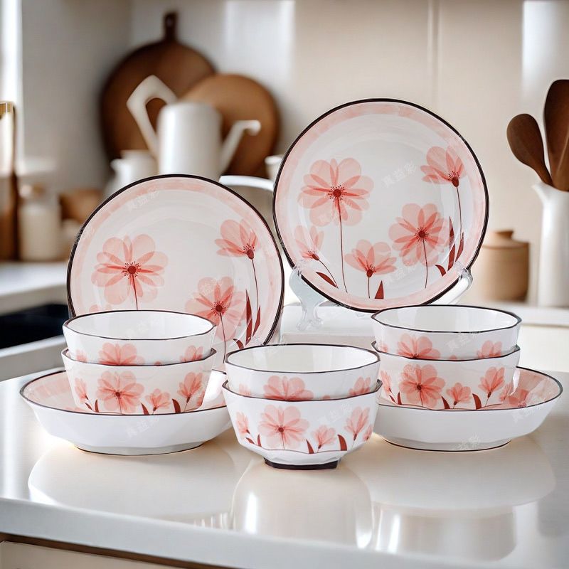 时光花语陶瓷家用新款餐具饭碗套装北欧风高温釉下彩