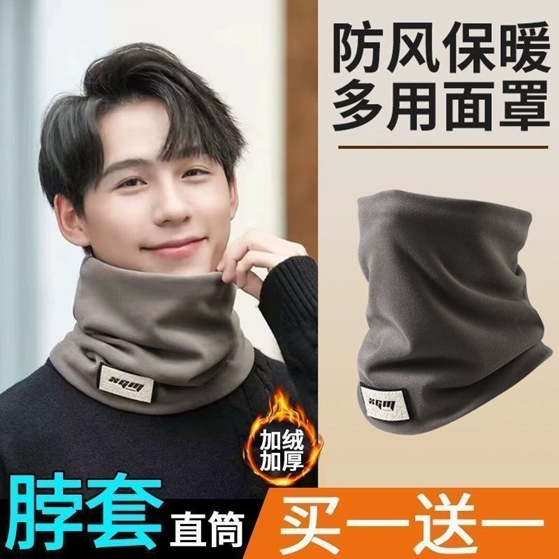 韩版直筒保暖脖套男围脖护颈秋冬季骑行防风面罩百搭纯色围巾
