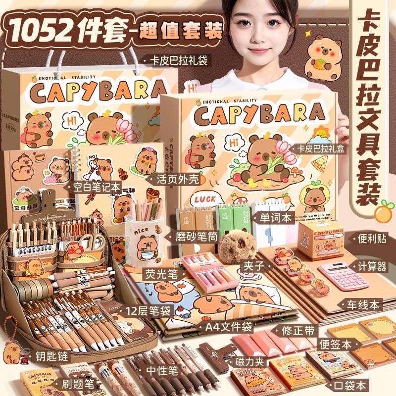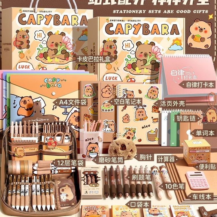 卡皮巴拉文具套装大礼包礼盒礼物儿童女孩生日礼物学习用品高颜值