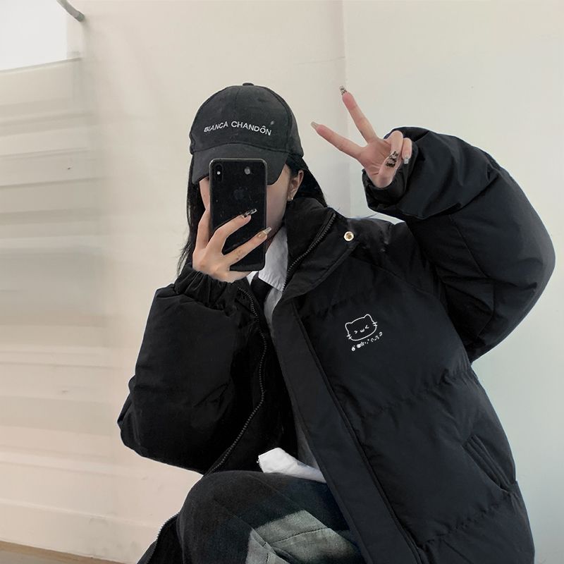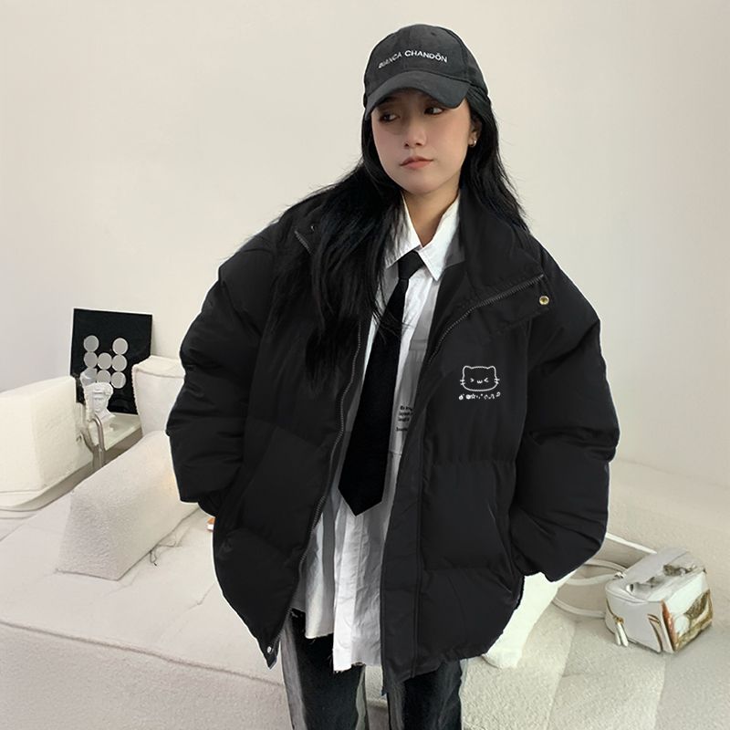 黑色羽绒棉服女冬季新款韩版棉袄立领宽松加厚外套男女棉衣女潮流