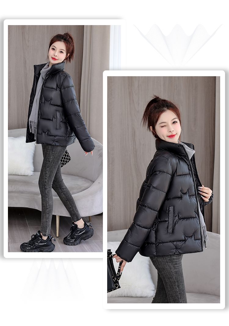 冬季新款亮面韩版免洗羽绒棉服短款时尚棉衣洋气宽松立领棉袄外套