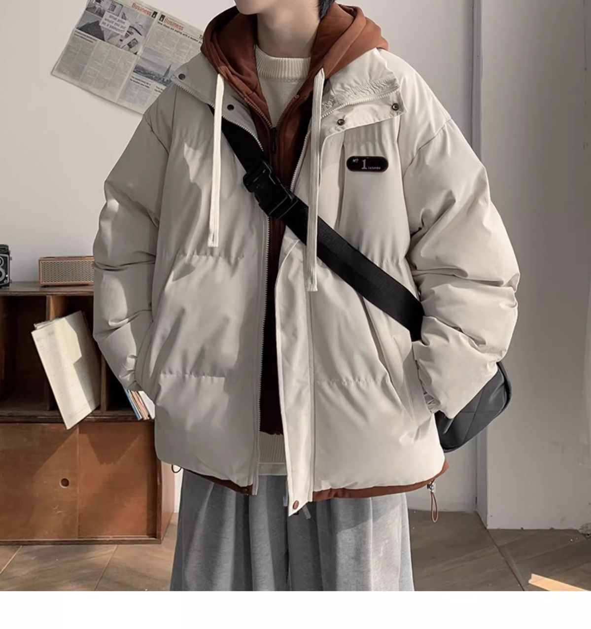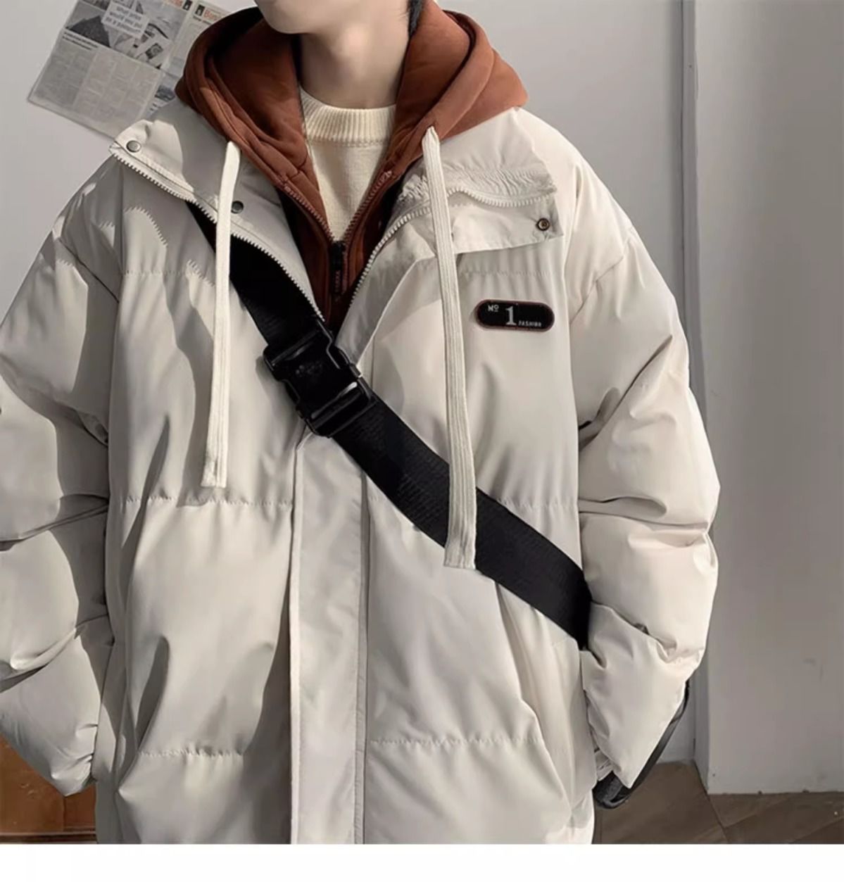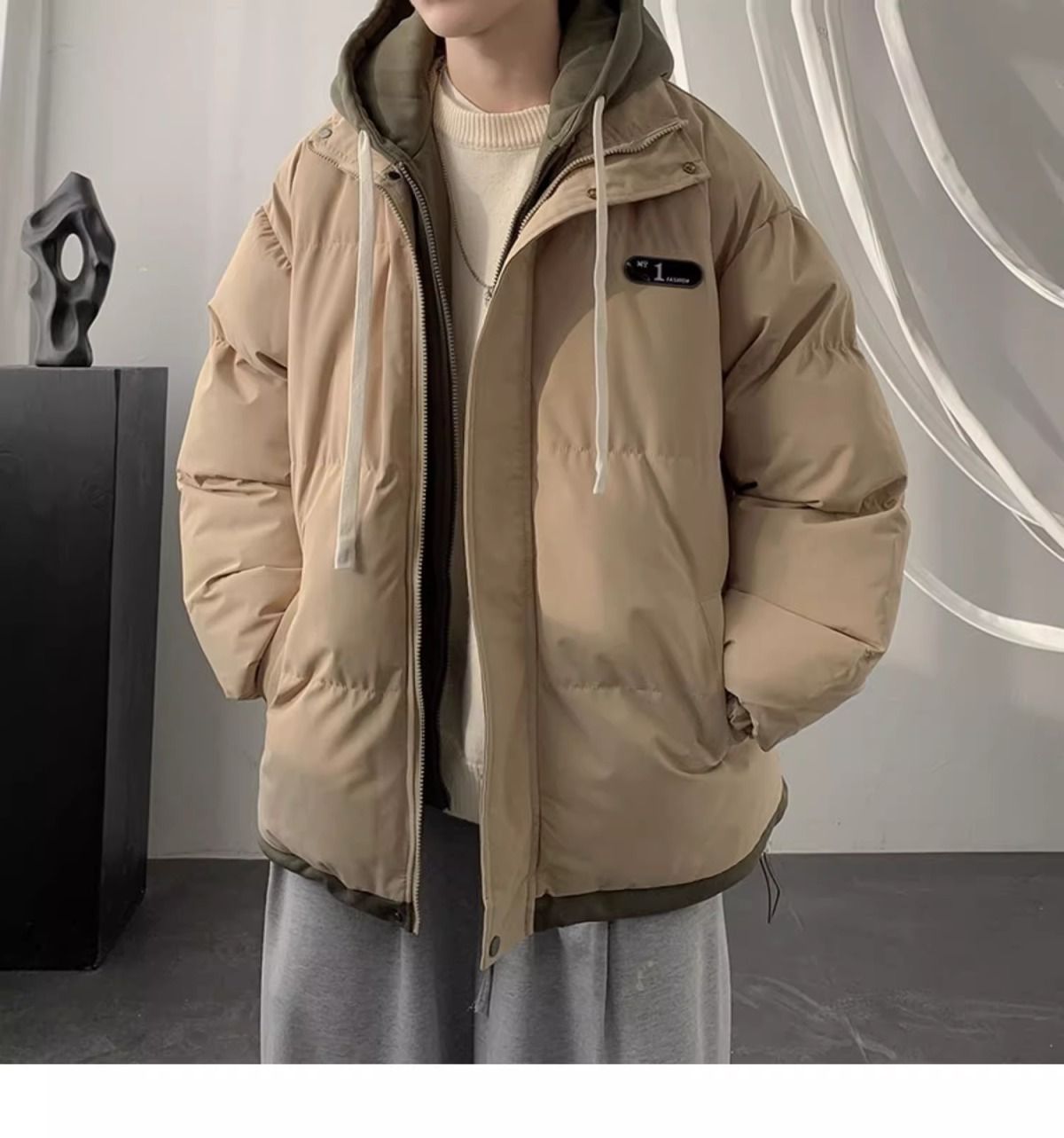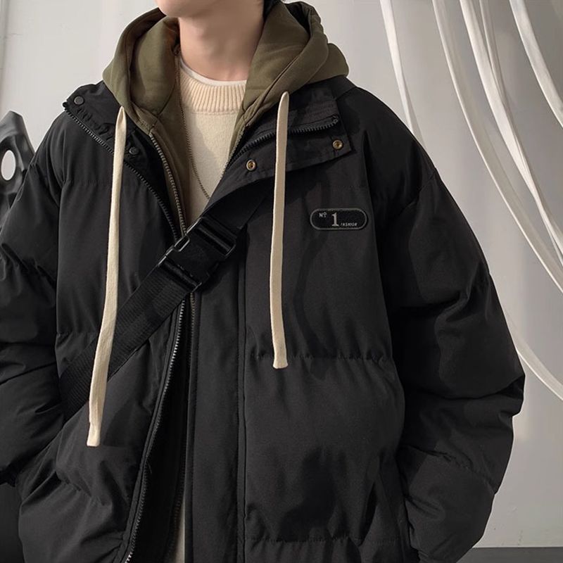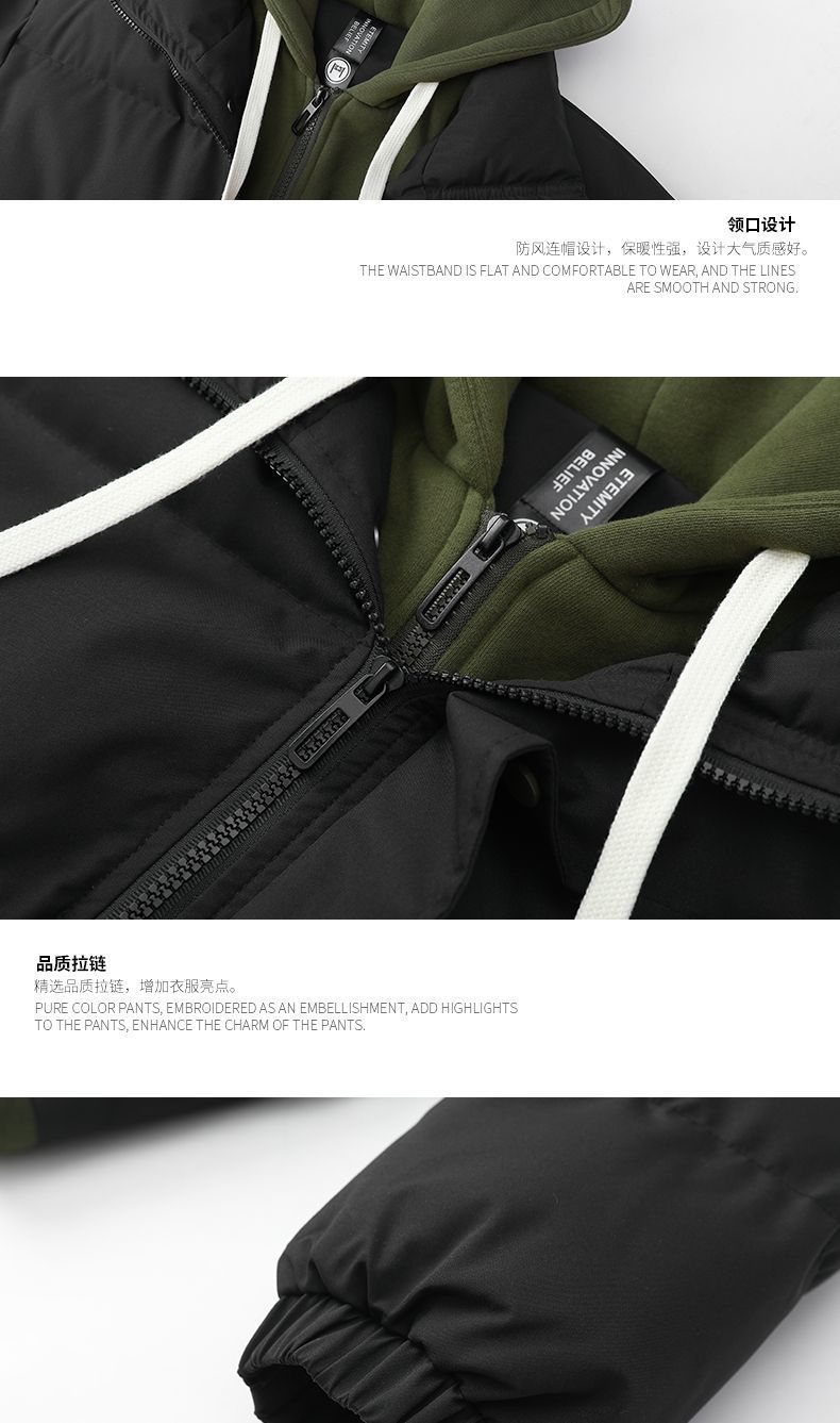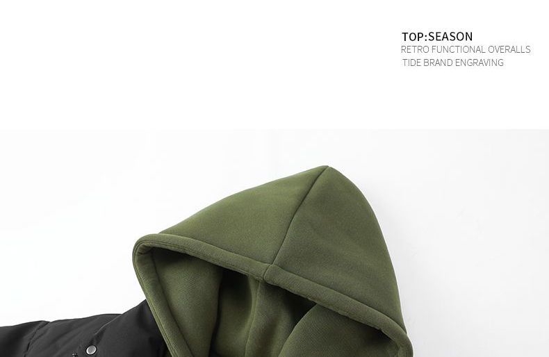 美式假两件连帽棉服外套男冬新款hiphop高街工装运动风情侣面包服