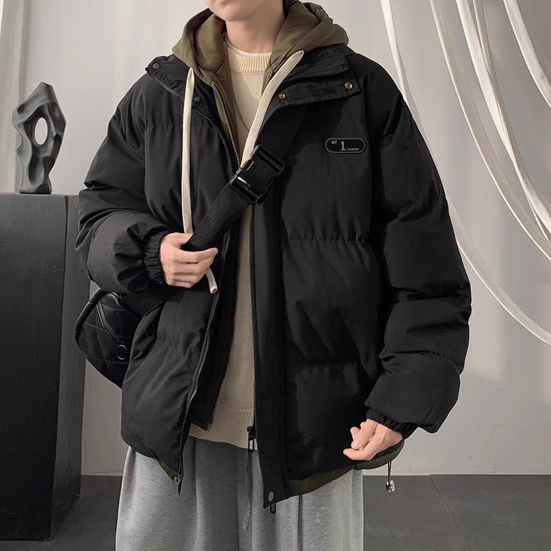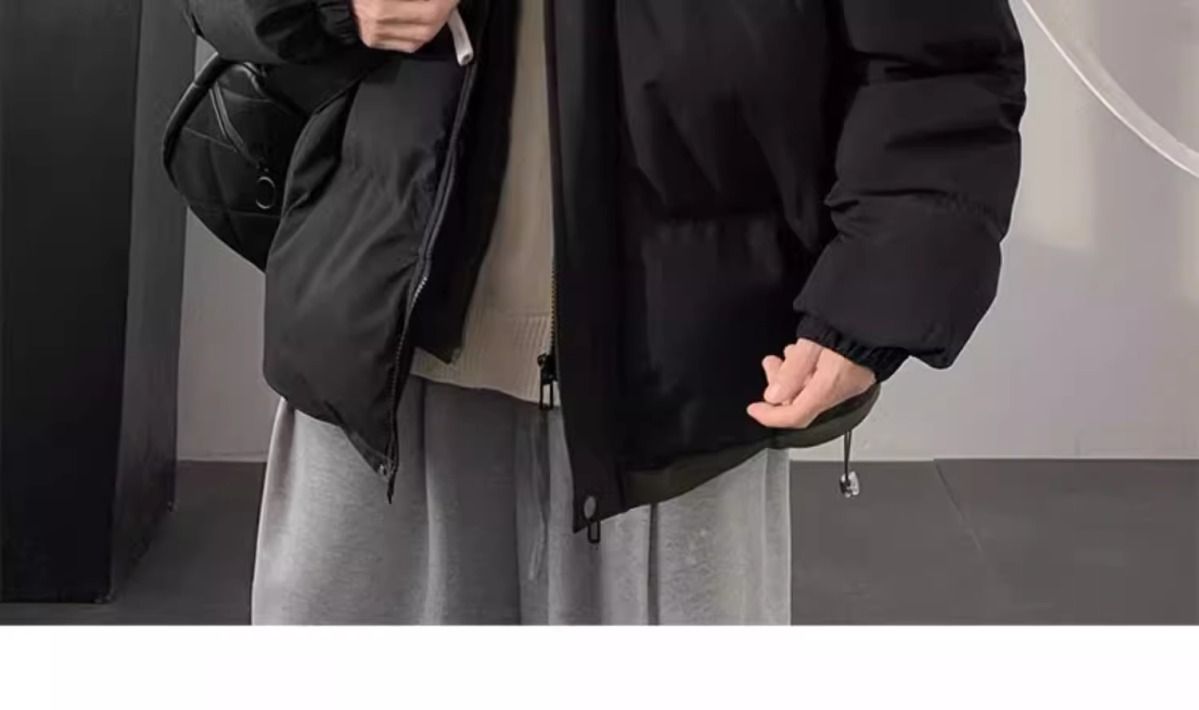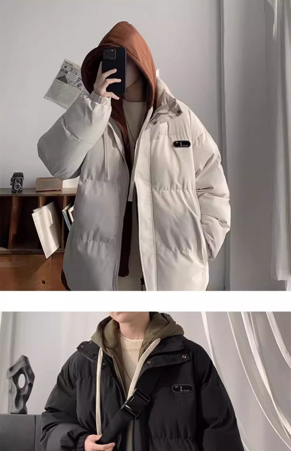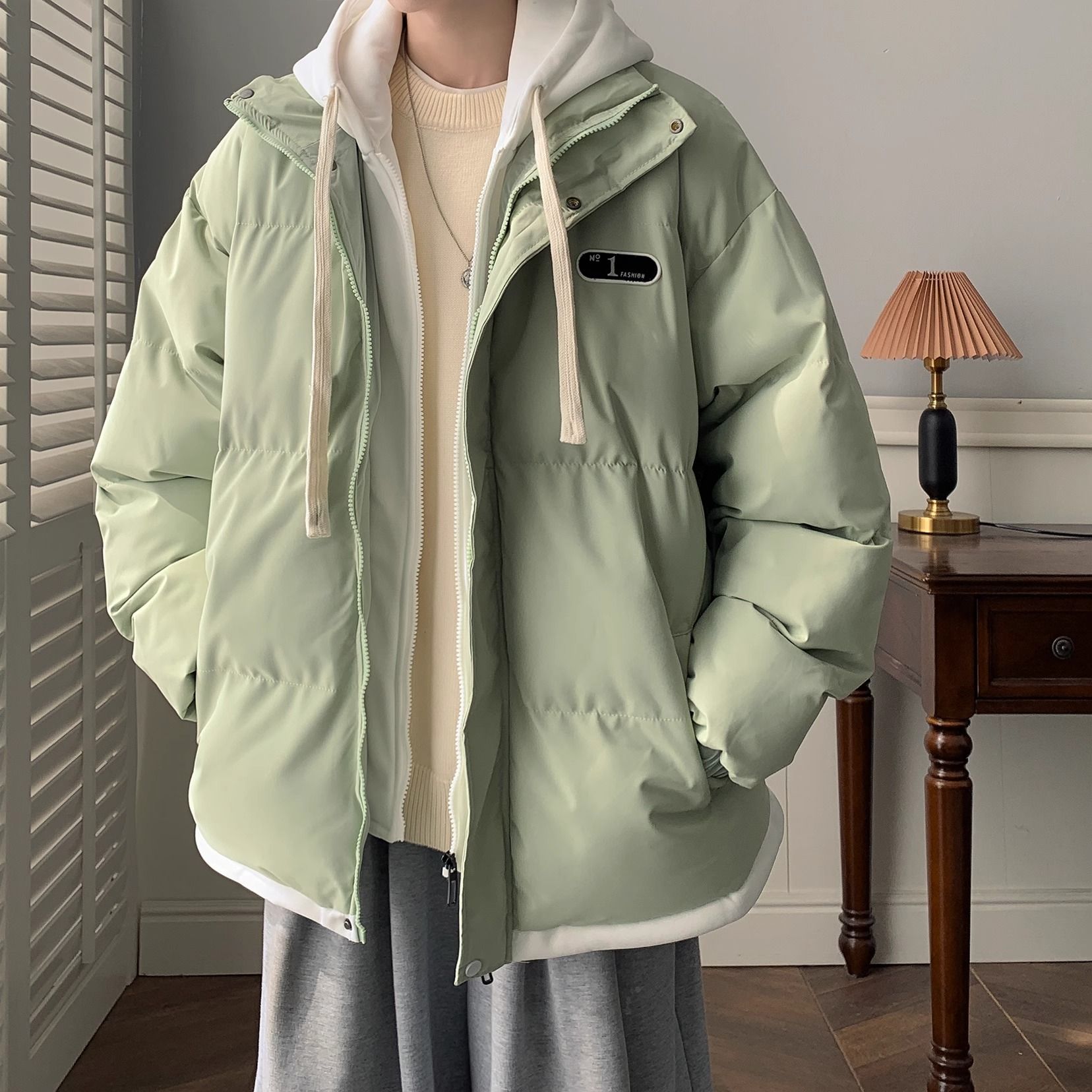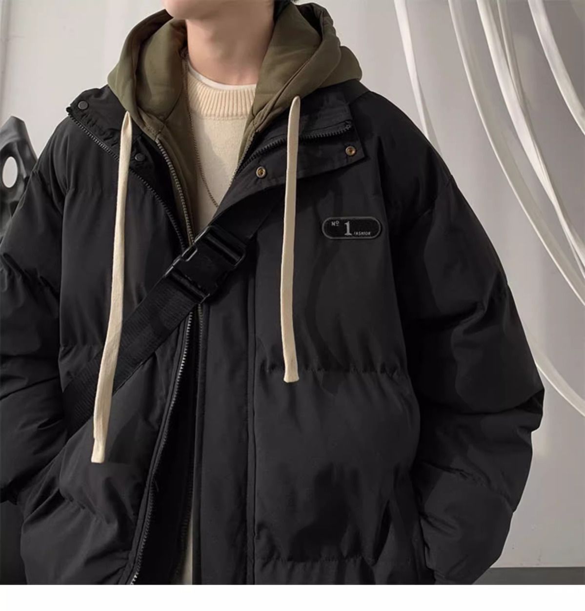 美式假两件连帽棉服外套男冬新款hiphop高街工装运动风情侣面包服