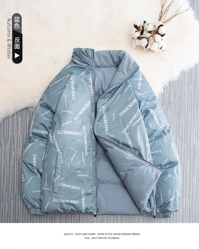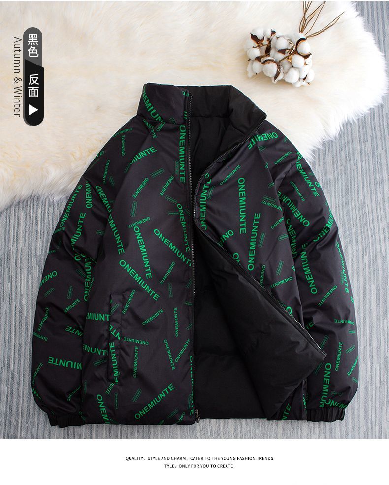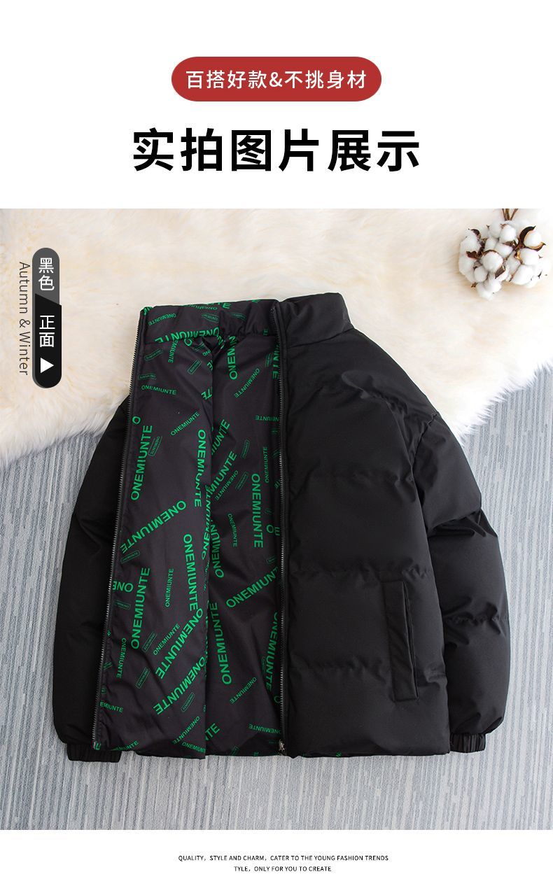 秋冬新款加绒加厚两面穿羽绒棉服保暖潮流宽松外套男冬季时尚百搭