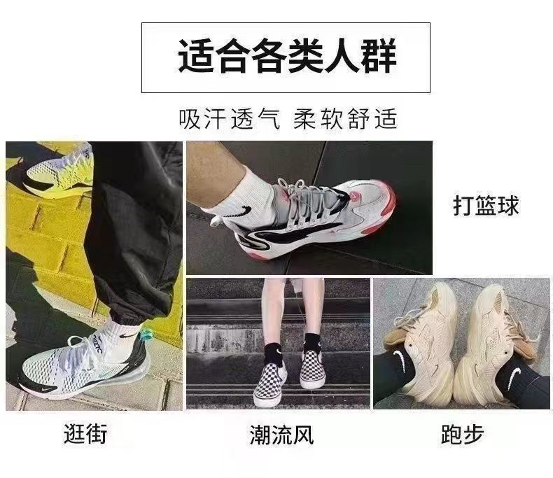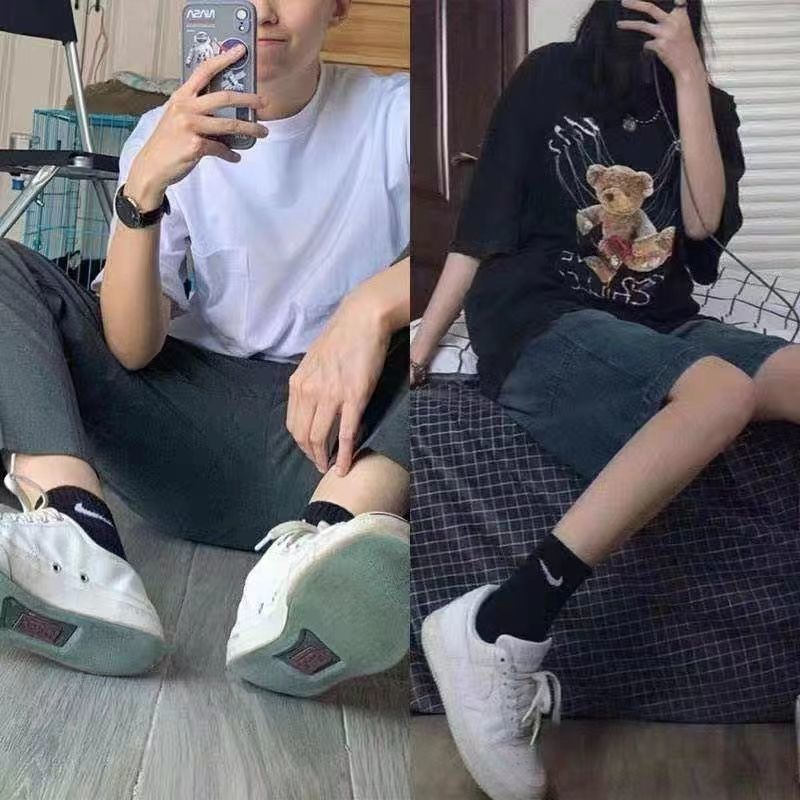 男女袜子运动ins春夏季中长学生潮百搭防臭半袖纯棉T恤上衣