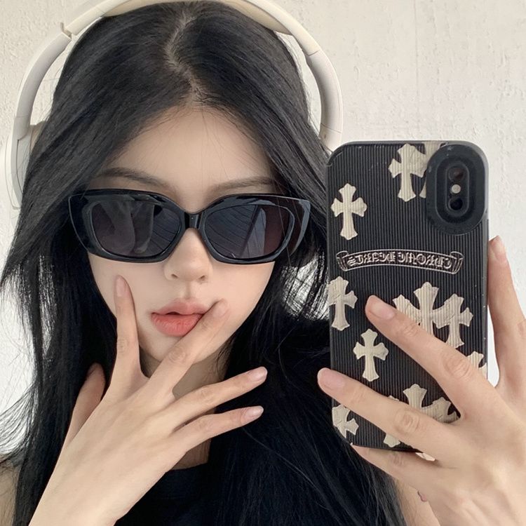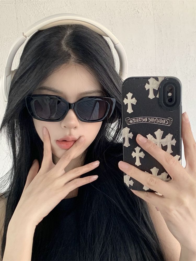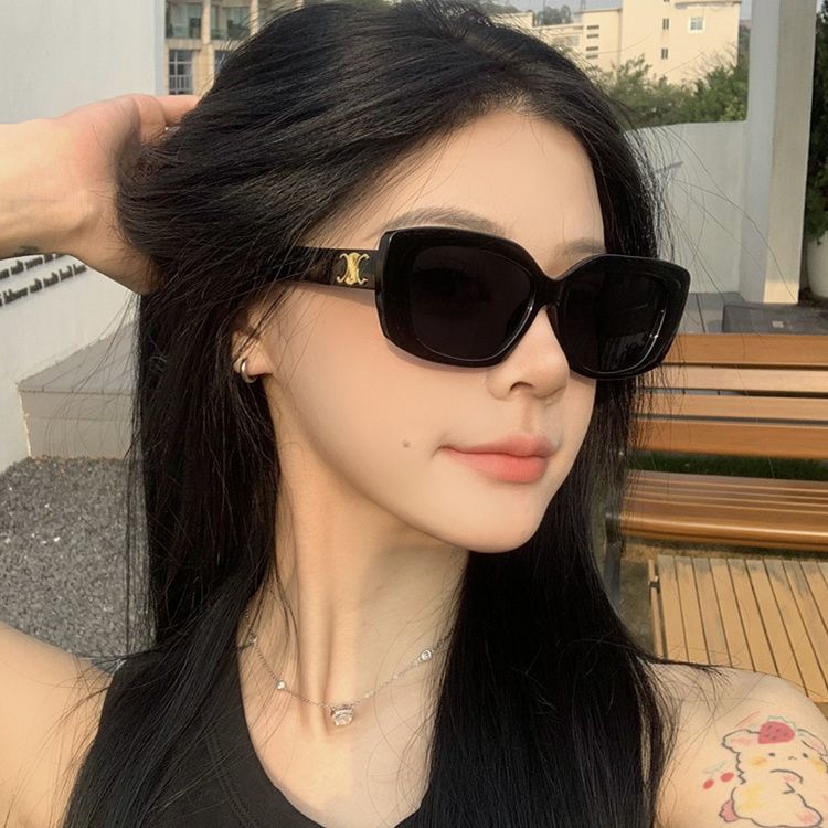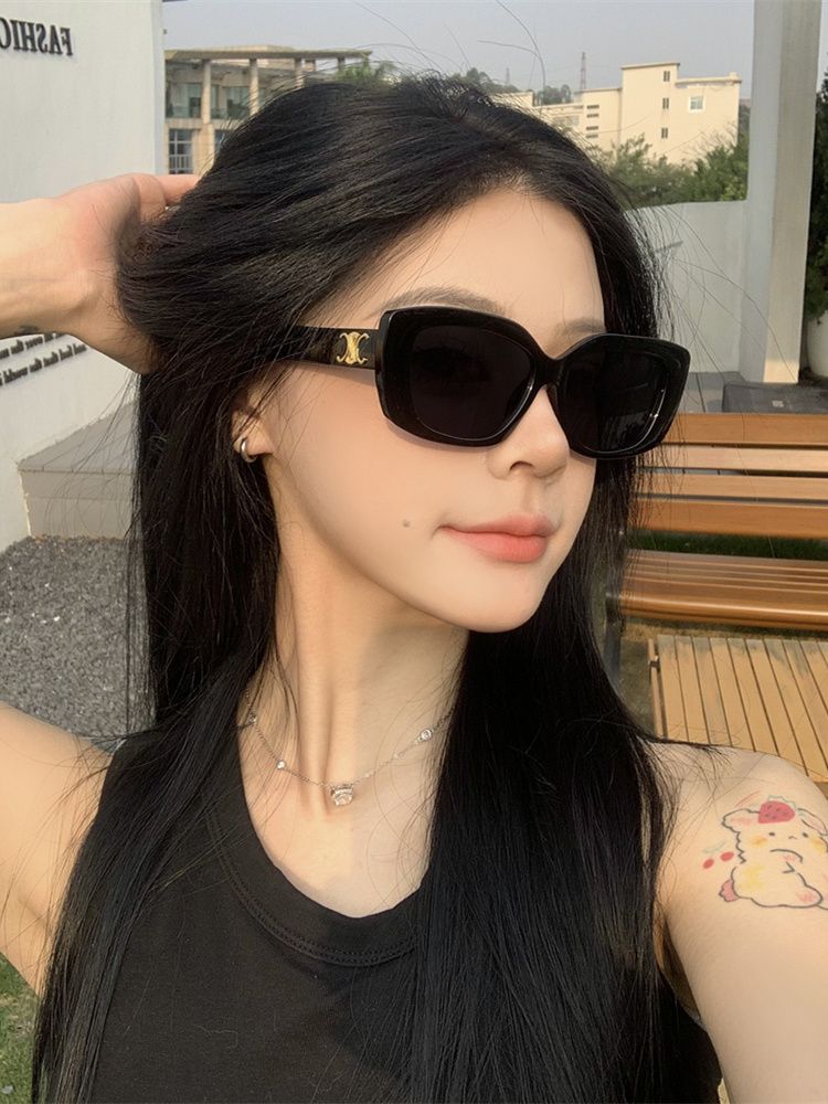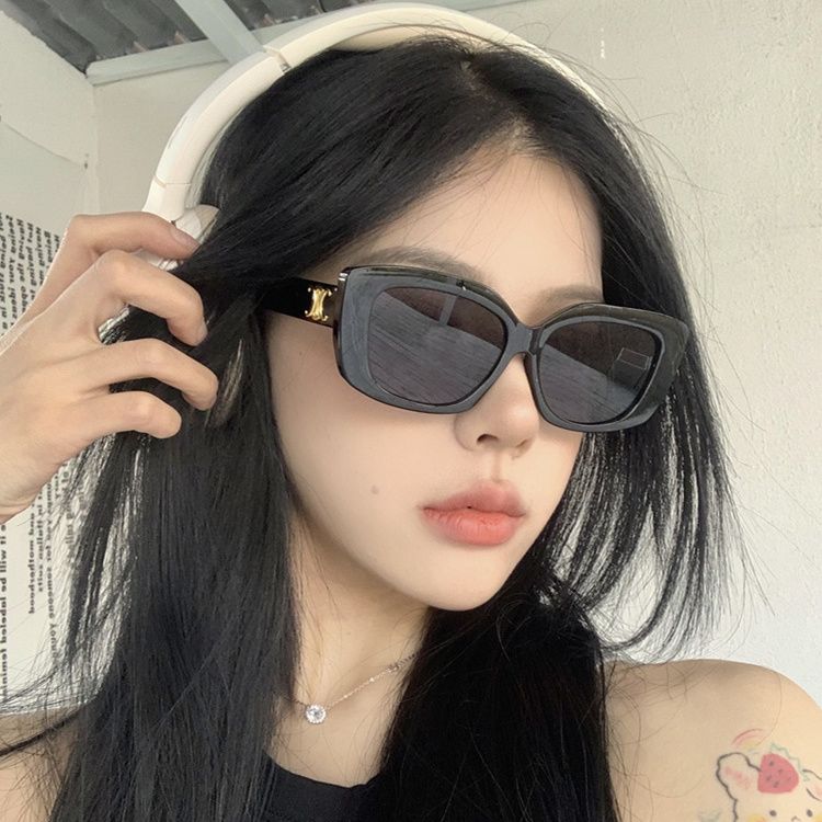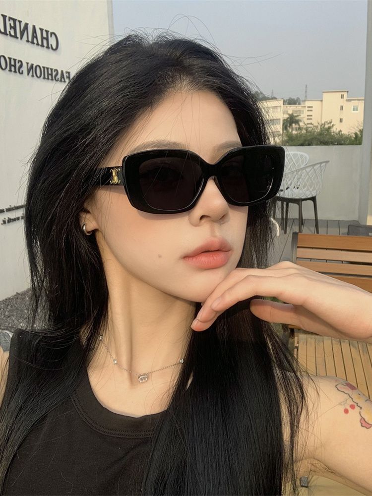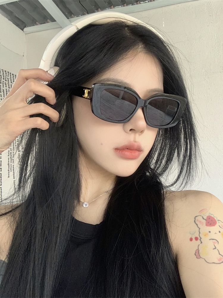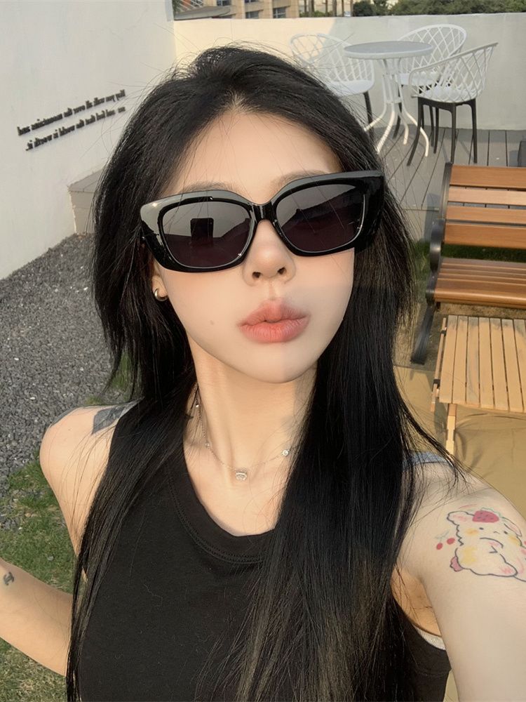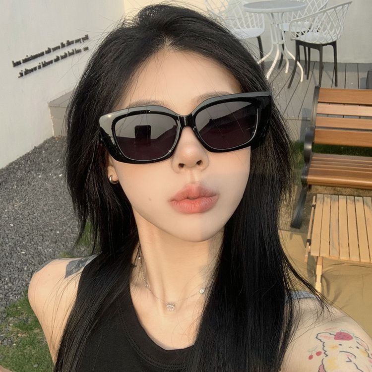 欧美复古黑色猫眼墨镜女高级感ins方圆脸显瘦网红韩版防晒太阳镜