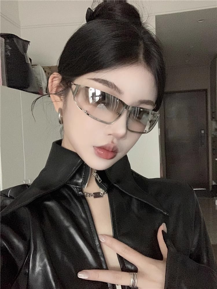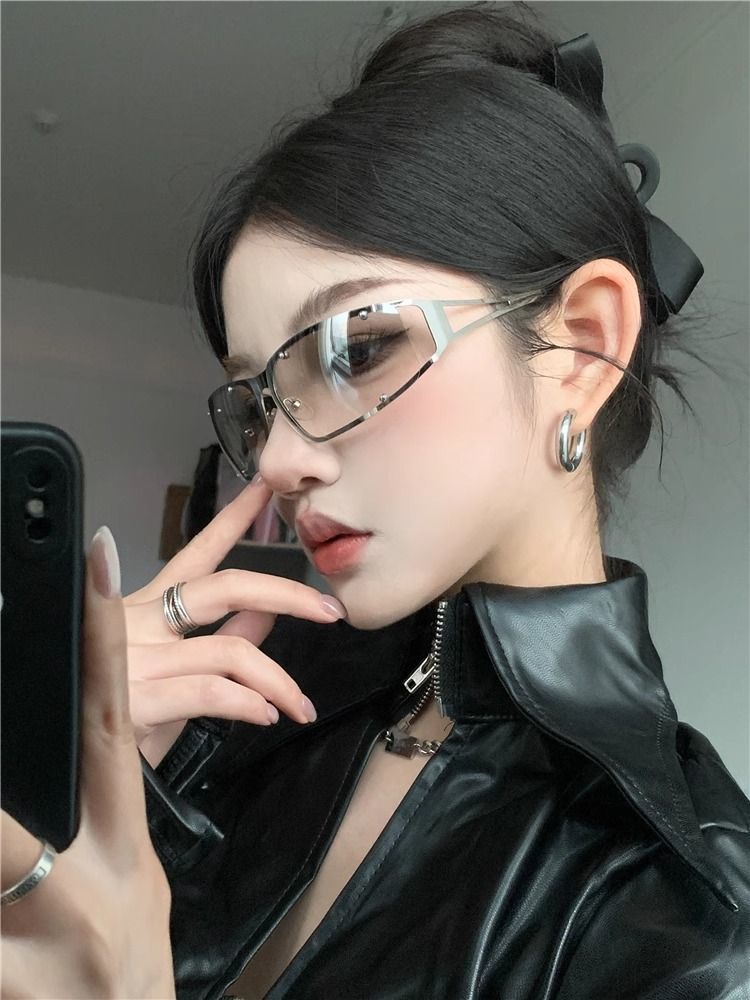 欧美风Y2K金属墨镜女千禧风甜酷辣妹拍照网红太阳眼镜未来科技感