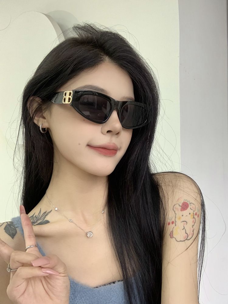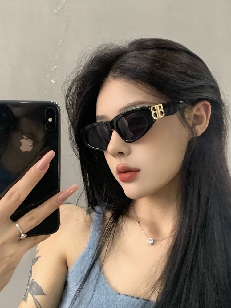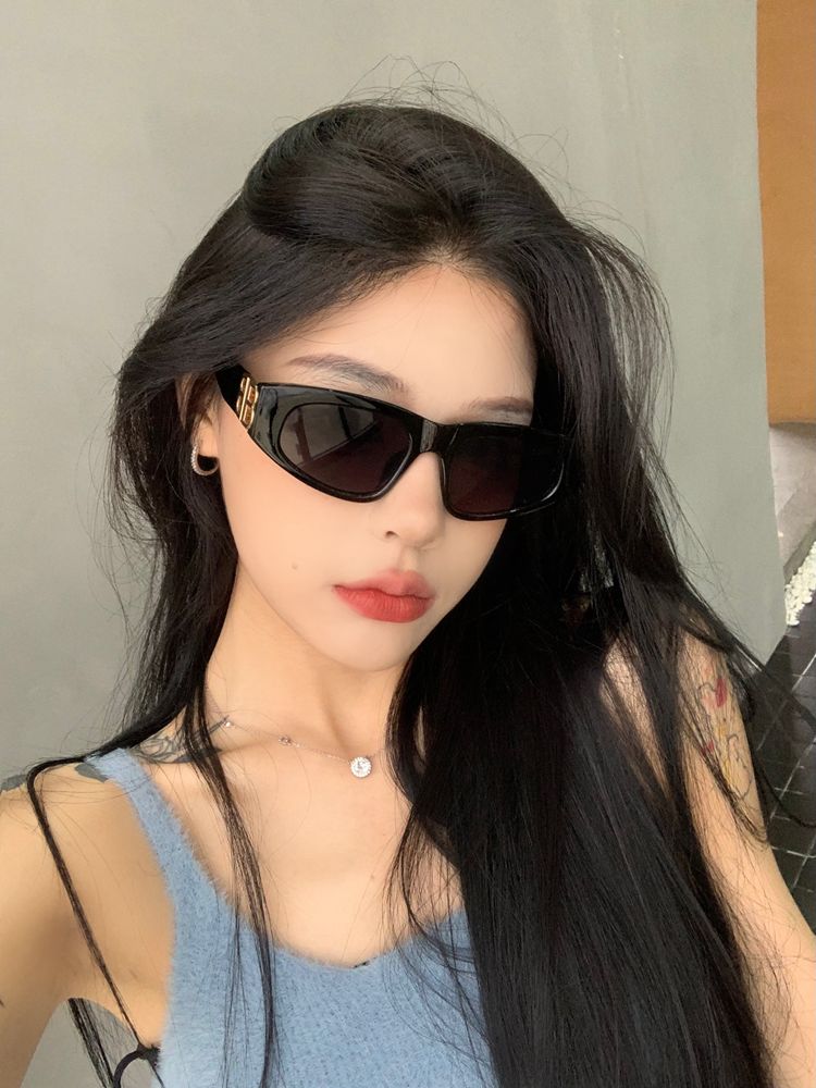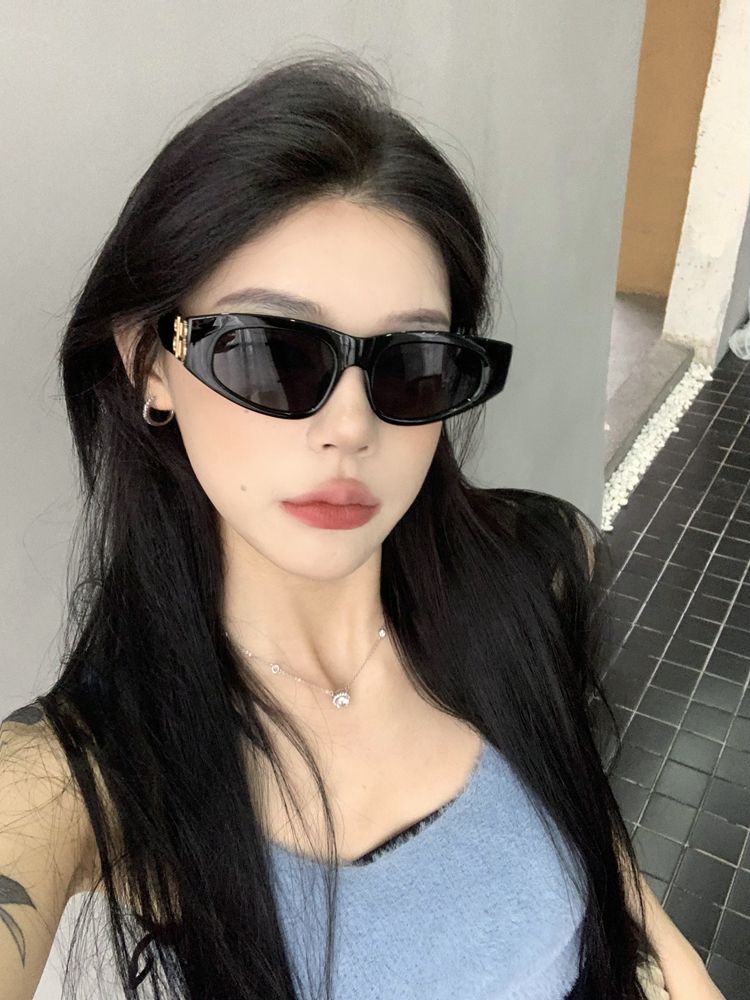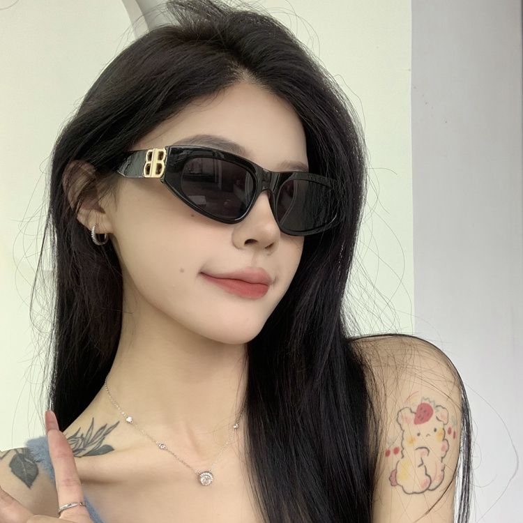 2024新款网红猫眼墨镜欧美方圆脸双B复古高级感时尚街拍太阳眼镜