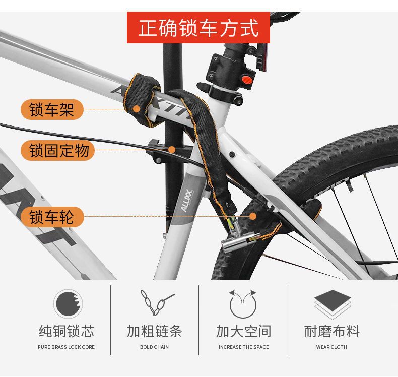 自行车锁链条锁防盗山地车锁单车锁电动车锁电瓶车摩托车链子锁车