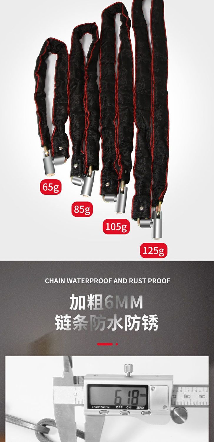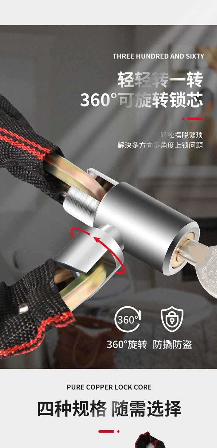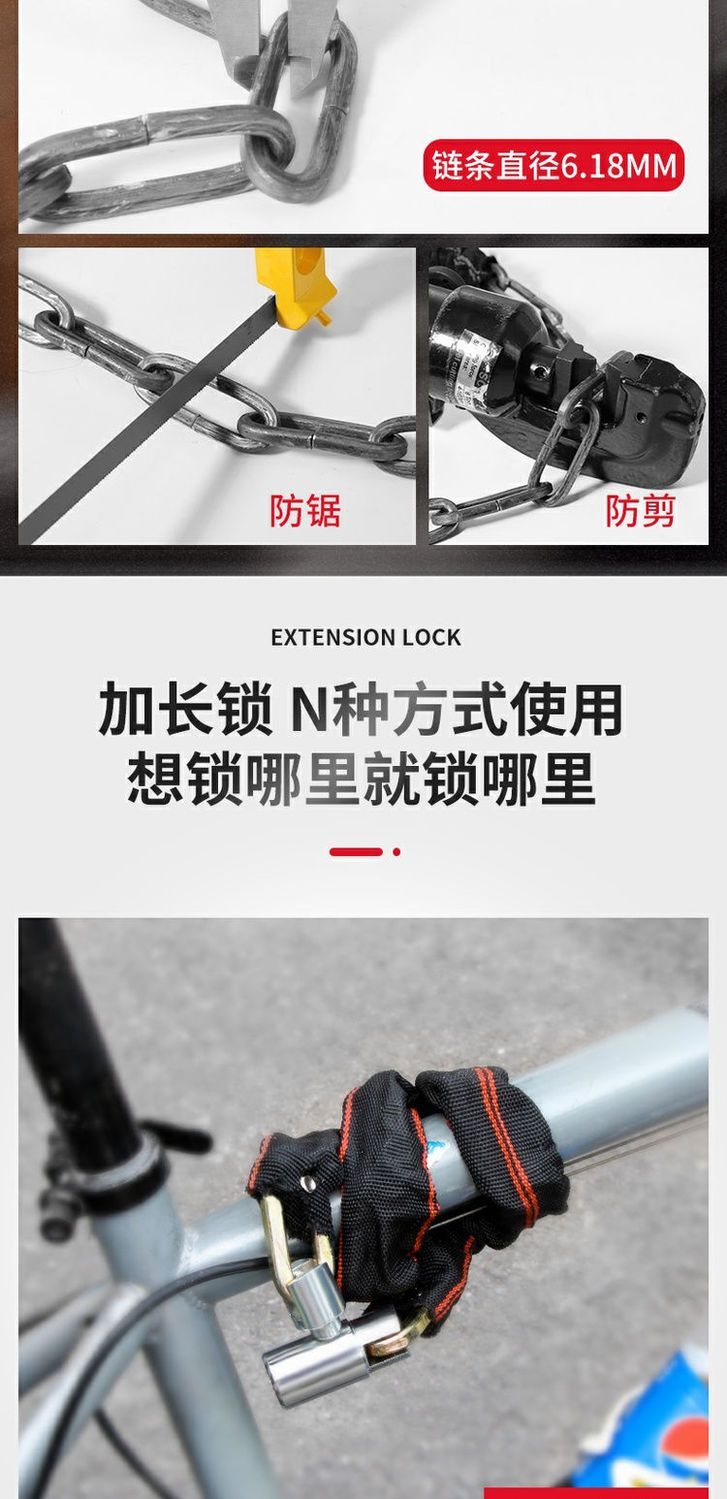 自行车锁防盗链条锁电动车锁山地单车锁便携式加粗加长链条锁锁门