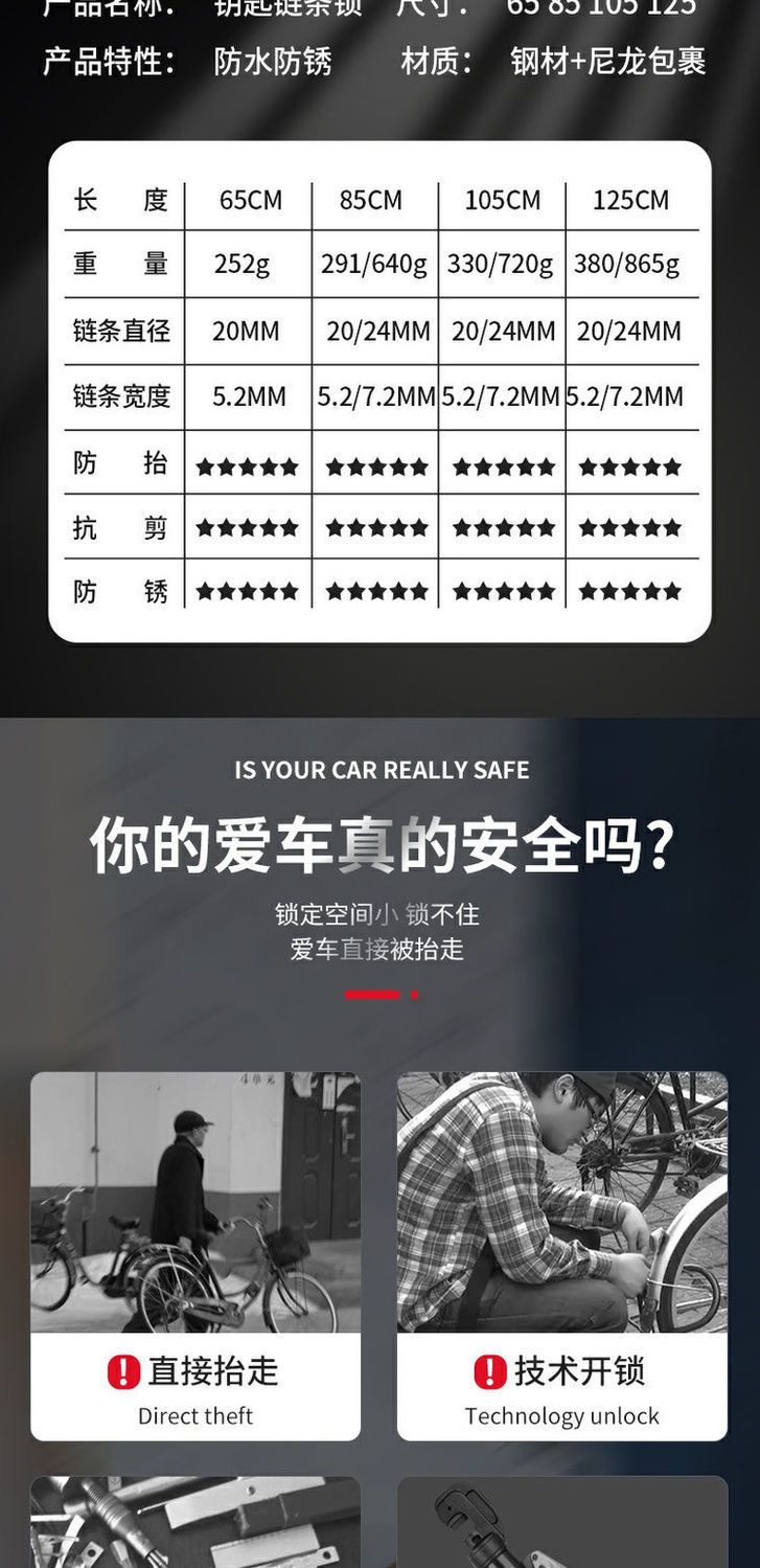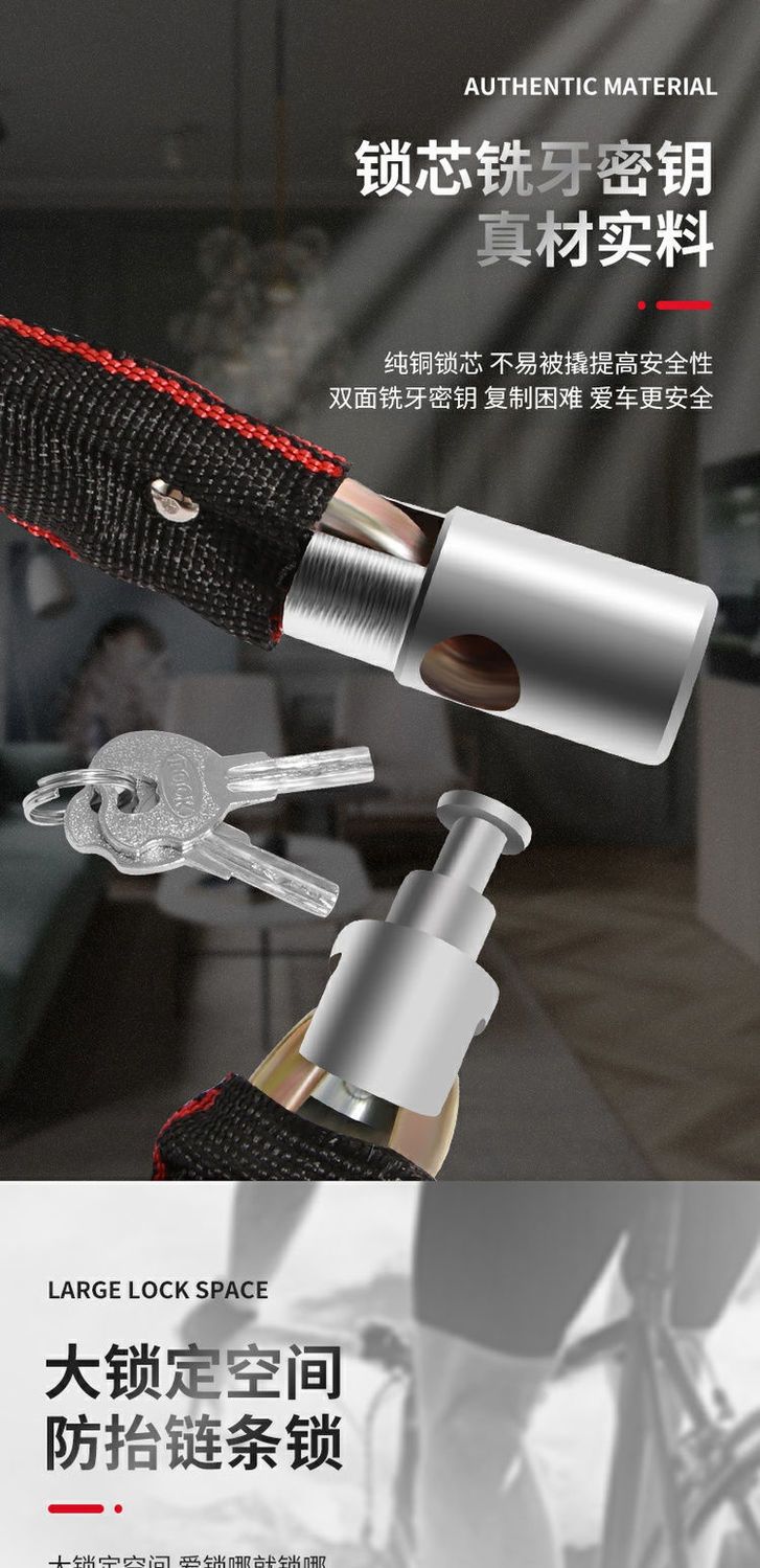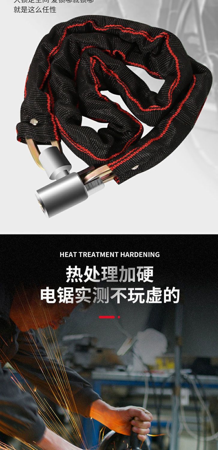自行车锁防盗链条锁电动车锁山地单车锁便携式加粗加长链条锁锁门